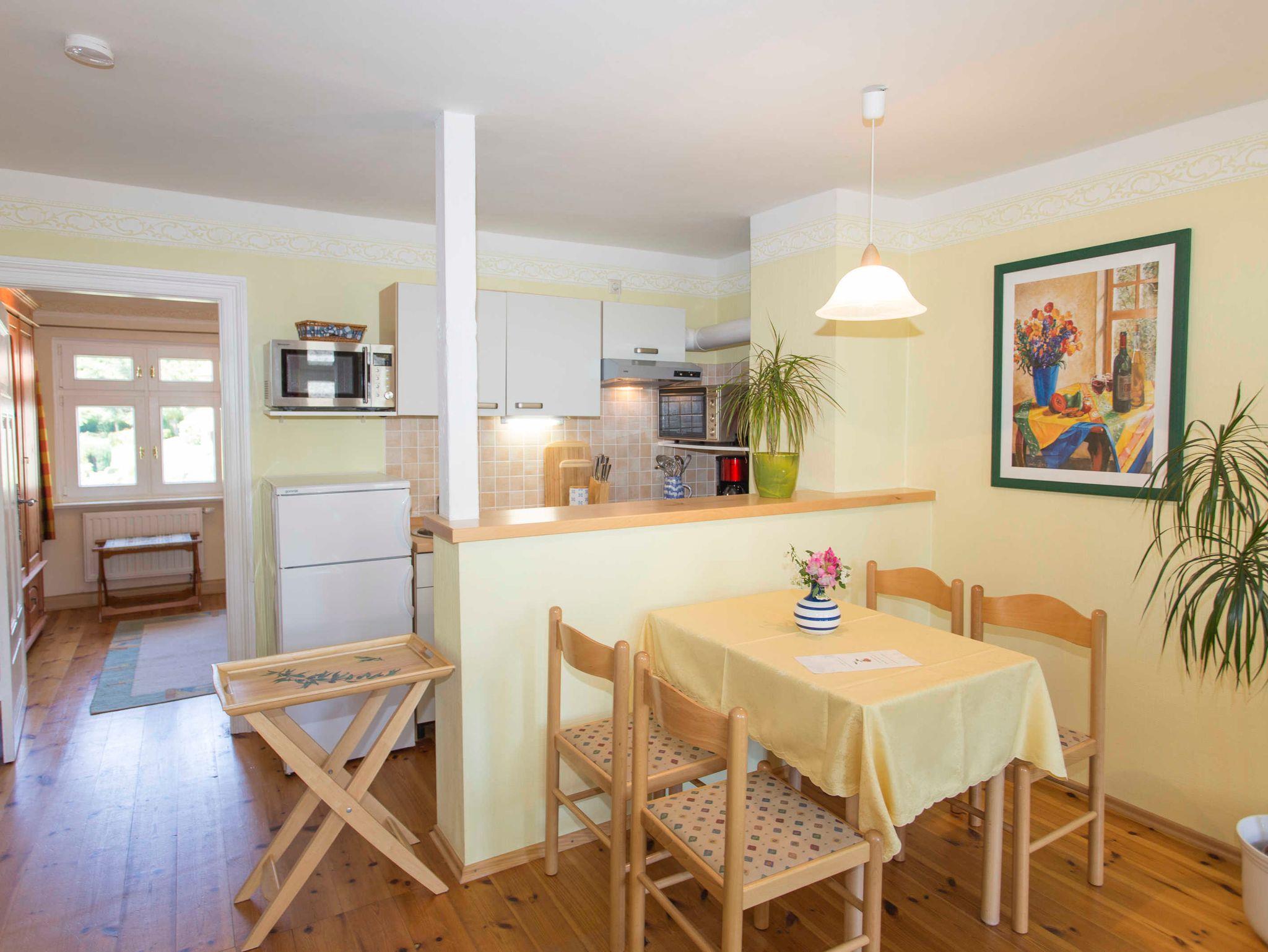 Die Ferienwohnung Ostseewelle ist eine Nichtraucherwohnung, verfügt über einen separaten Eingang, einen Flur, großes Wohnzimmer mit SAT-TV (Flachbild), Radio und mit einer modernen, abgetrennten Küchenzeile, sowie Essecke.