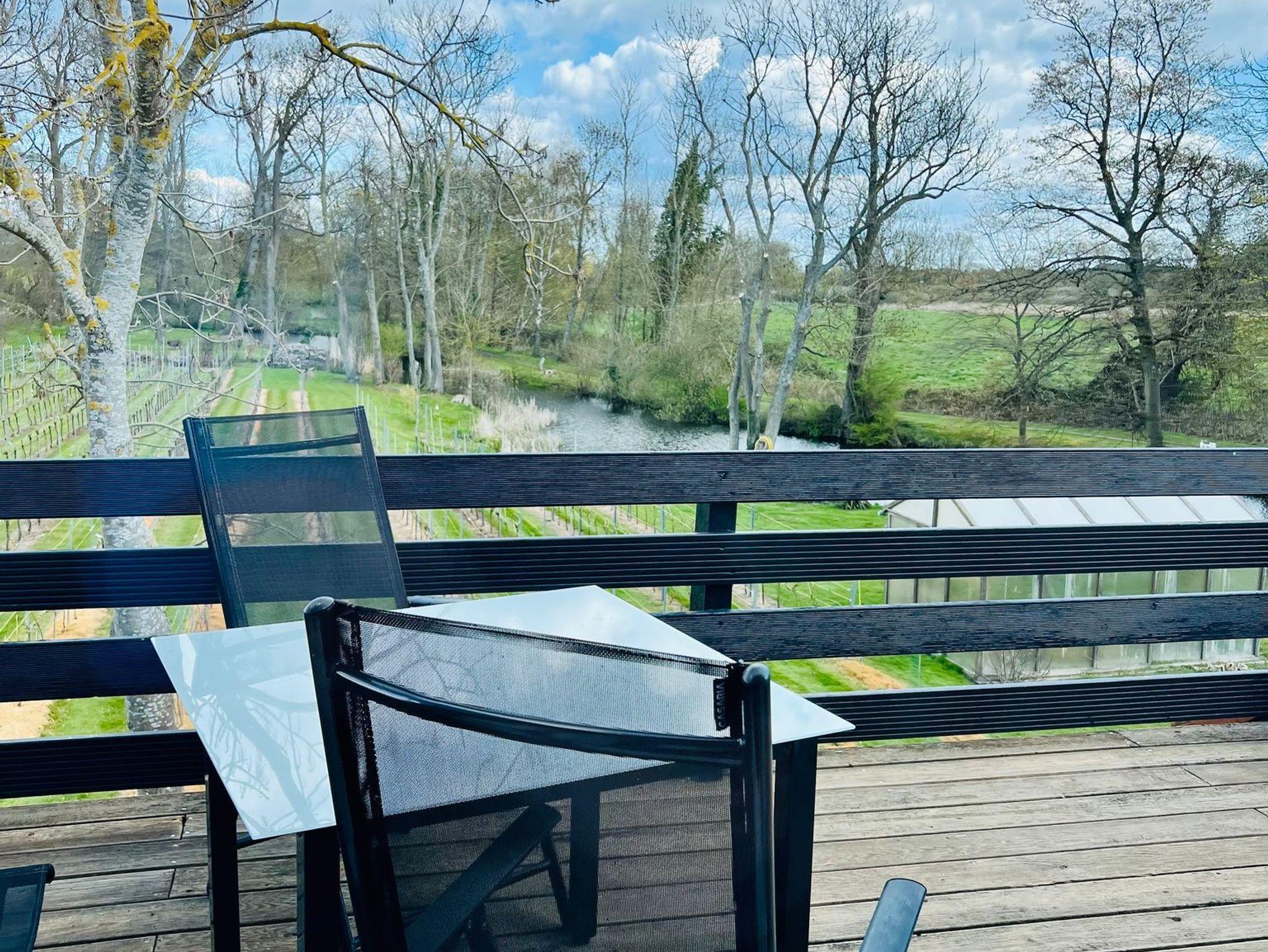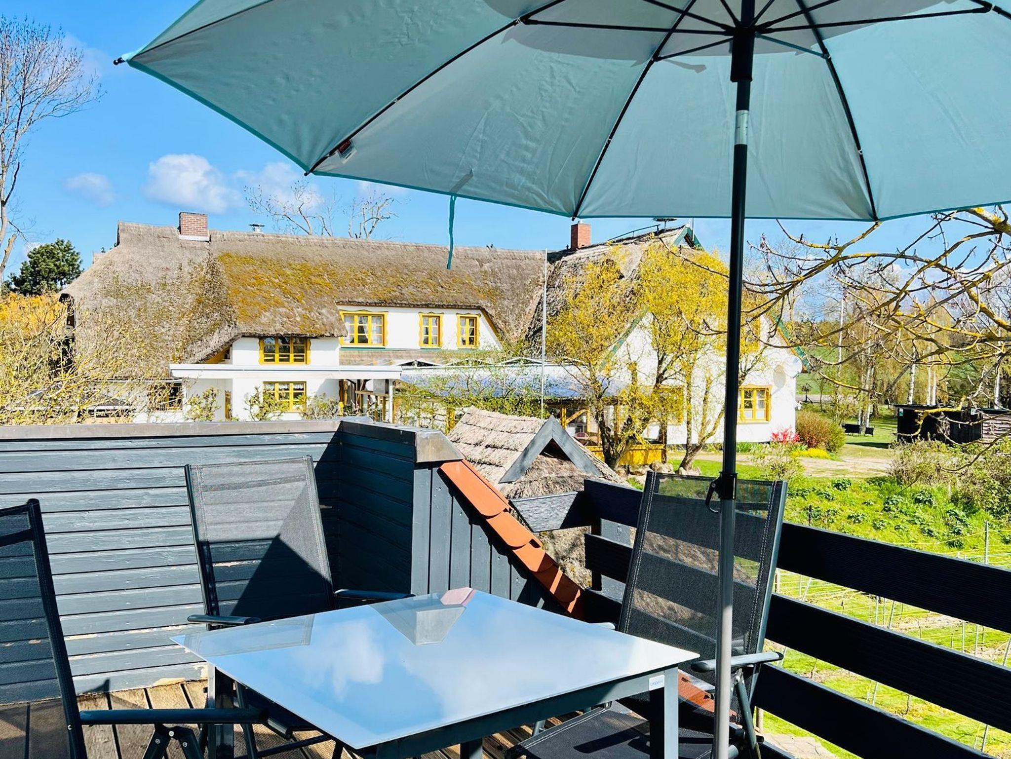 Gemütliche Ferienwohnung Weinterrassen in Middelhagen mit Terrasse und Blick auf das Weingut.
