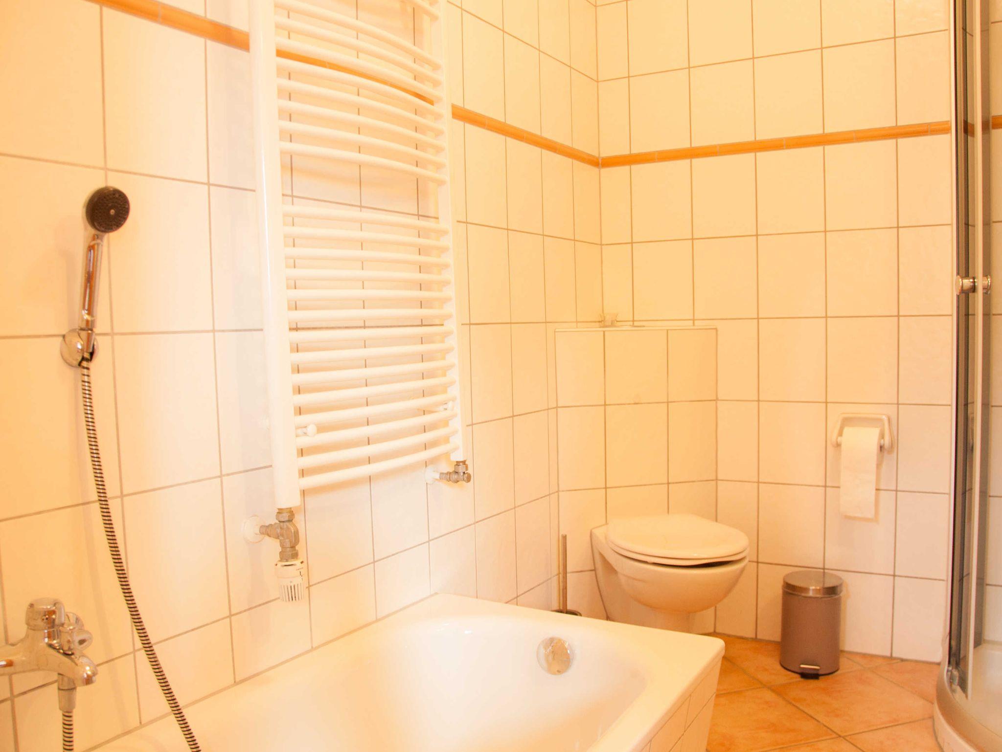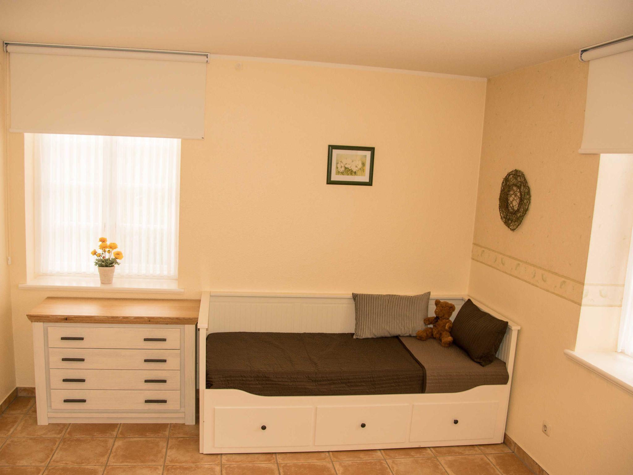 Diese wunderschöne im modernen Landhausstil eingerichtete Erdgeschosswohnung (ca. 55 qm) mit separatem Eingang verfügt über ein großzügiges Schlafzimmer mit Boxspringbett (180x 200 cm) und einem Extrabett, das auf 160 x 200 cm ausgezogen werden kann sowie Verdunkelungsmöglichkeiten.