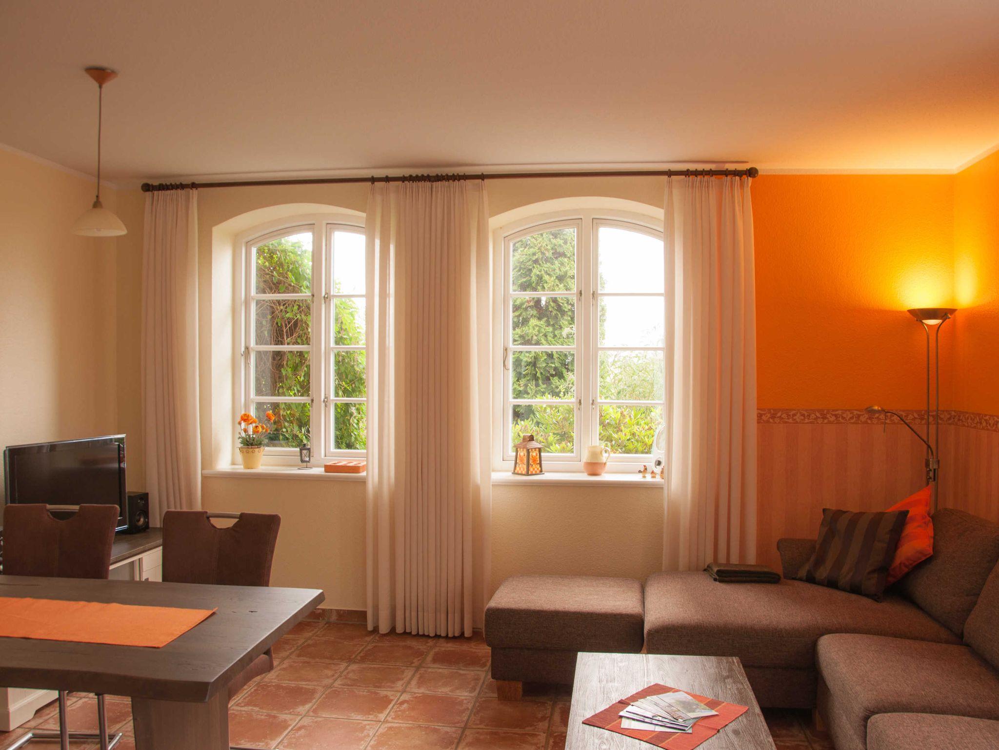 Alle Wohnungen und Appartements verfügen über im Jahr 2015 komplett erneuerte Küchenzeilen mit hochwertigen Einbaugeräten von Miele. Das durchdachte Farbkonzept mit warmen Farben und aufeinander abgestimmten Möbeln verleiht den Wohnungen ihren besonderen Charme. Die geschmackvolle Möblierung im modernen Landhausstil bietet Ihnen allen Komfort, den Sie sich im Urlaub wünschen. Alle Wohnungen sind mit Fußbodenheizung ausgestattet, damit es auch in der kälteren Jahreszeit schön kuschelig ist, zudem sorgen in einigen Wohnungen Kamine für eine romantische Stimmung, wenn draußen der Wind pfeift. Die Erdgeschosswohnungen verfügen über Sonnenterrassen mit direktem Zugang zum Garten und den Gästen aus den anderen Wohnungen stehen im Garten Sitzmöglichkeiten zur Verfügung.