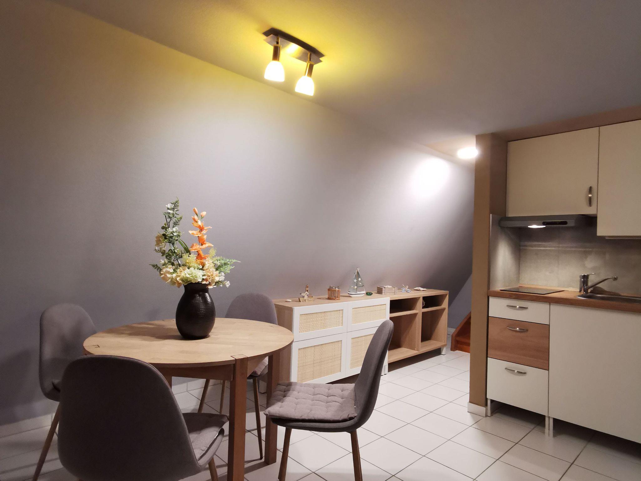 Im Erdgeschoss befindet sich der gemühlich eingerichtet Wohn- und essbereich, ausgestattet mit einen Küche (Gefrierfach,Mikrowelle sowie Wasserkocher,Kaffeemaschine und Toaster.