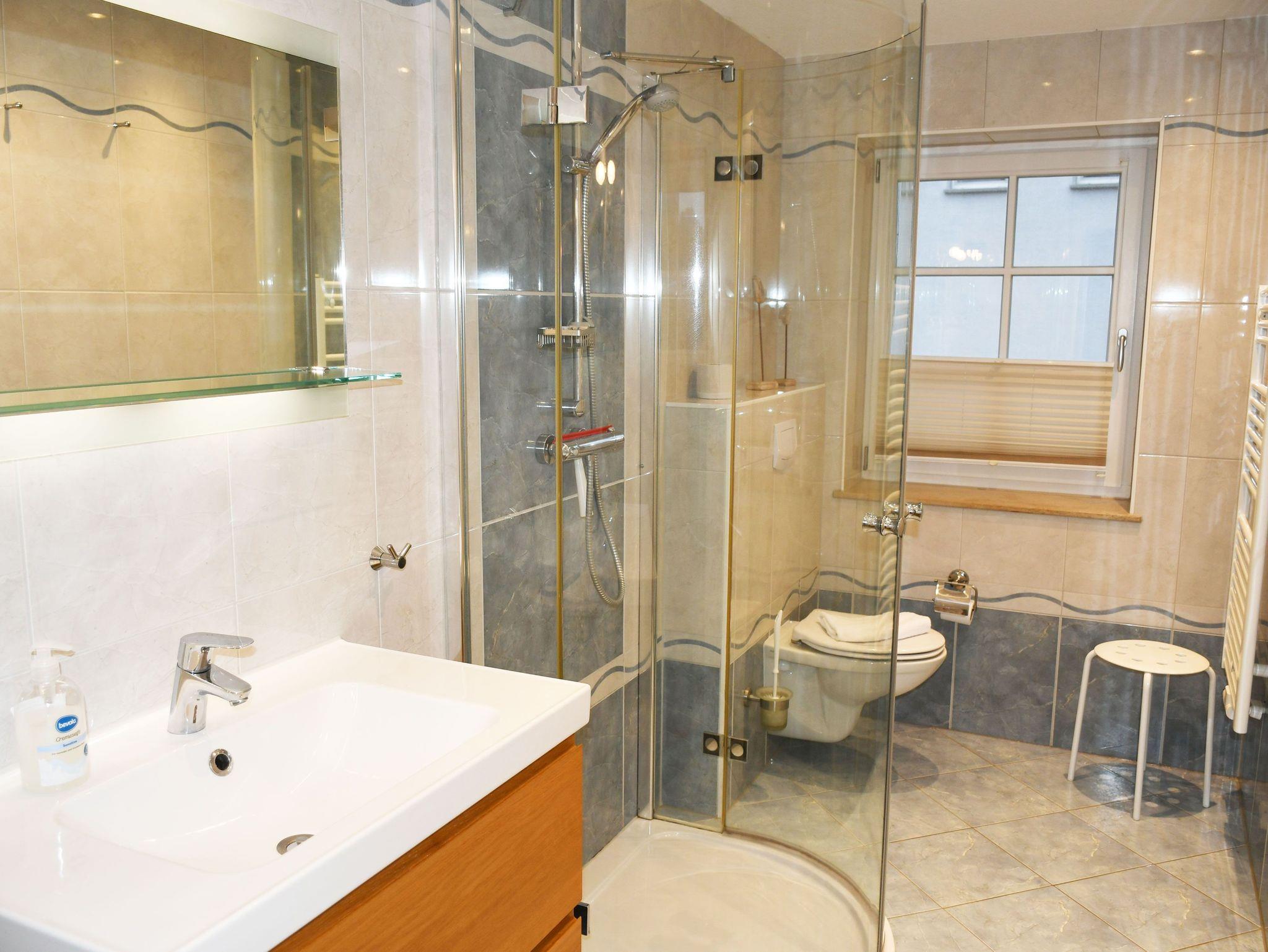 - Bad mit Dusche, Waschbecken, WC und Tageslicht