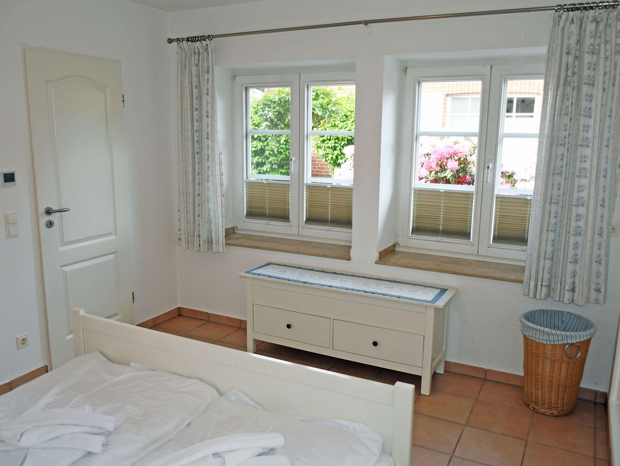 - Schlafzimmer mit bequemen Doppelbett, Nachttischen und Leselampen, Kleiderschrank