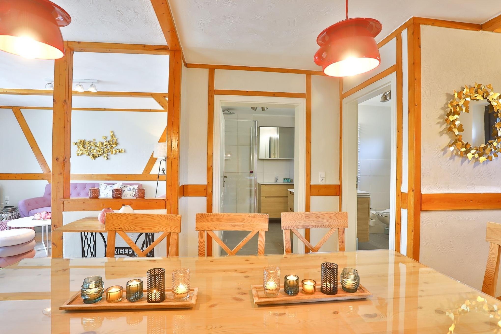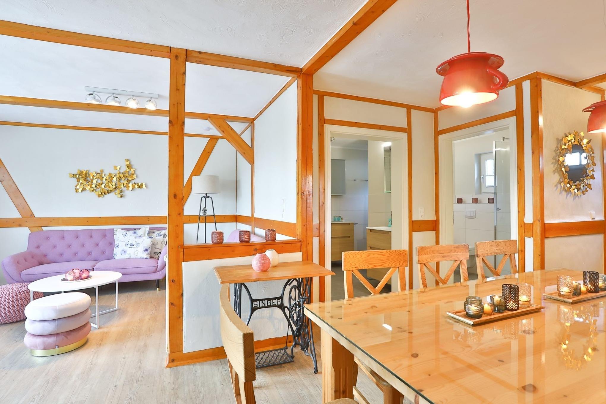 Das Landhaus "Am Weingarten" verfügt über insgesamt 4 Ferienwohnungen und erhielt Anfang 2021 eine kleine Renovierung mit neuen Bädern, Küchen, Lampen und teilweise Möbeln, wie Sofas etc. . Sie möchten mit mehreren Familien gemeinsam reisen? Schauen Sie sich gerne auch die Ferienwohnungen "Weinterrassen", "Am Gutshof" und "Zur Rebe" an.