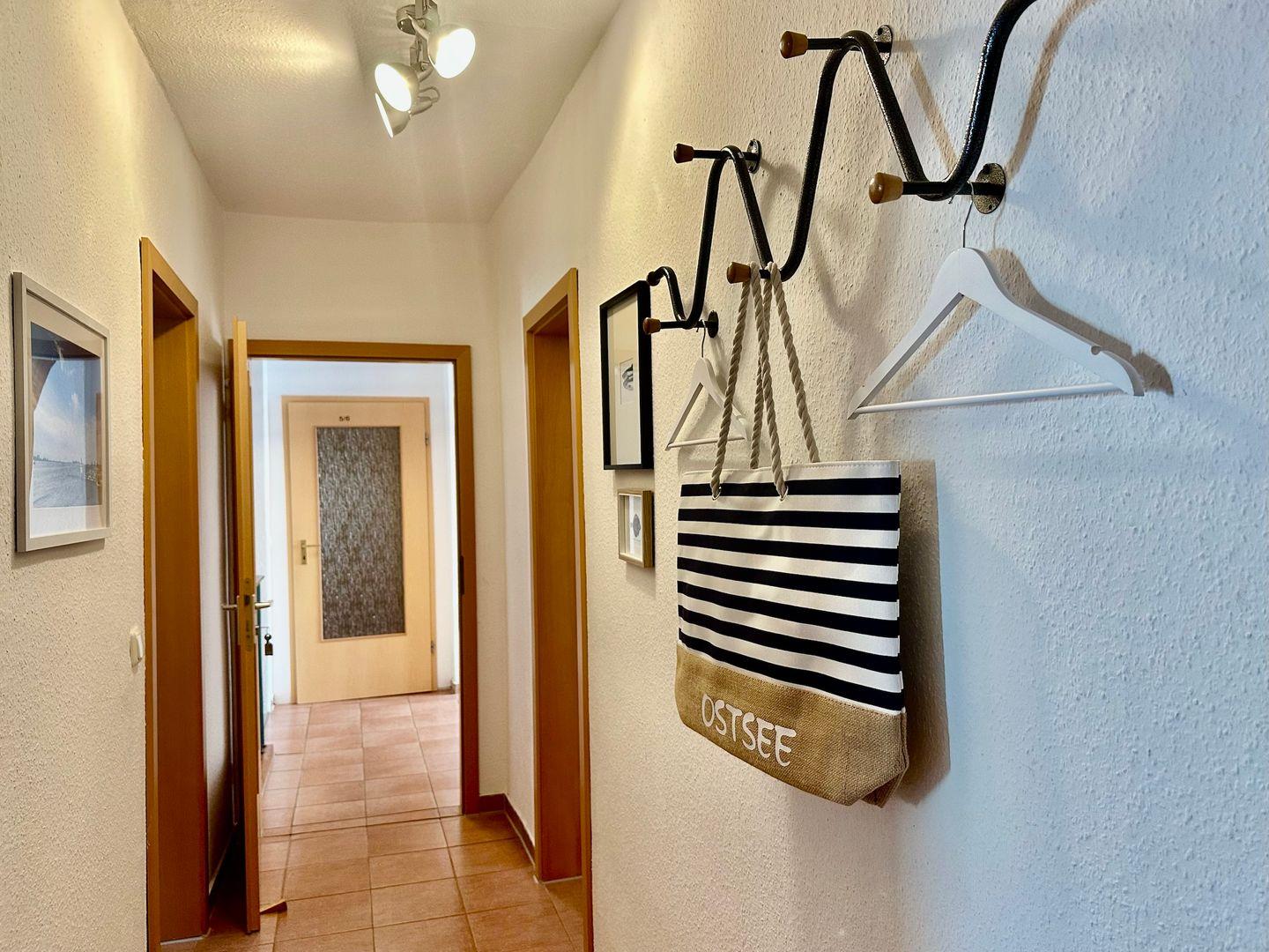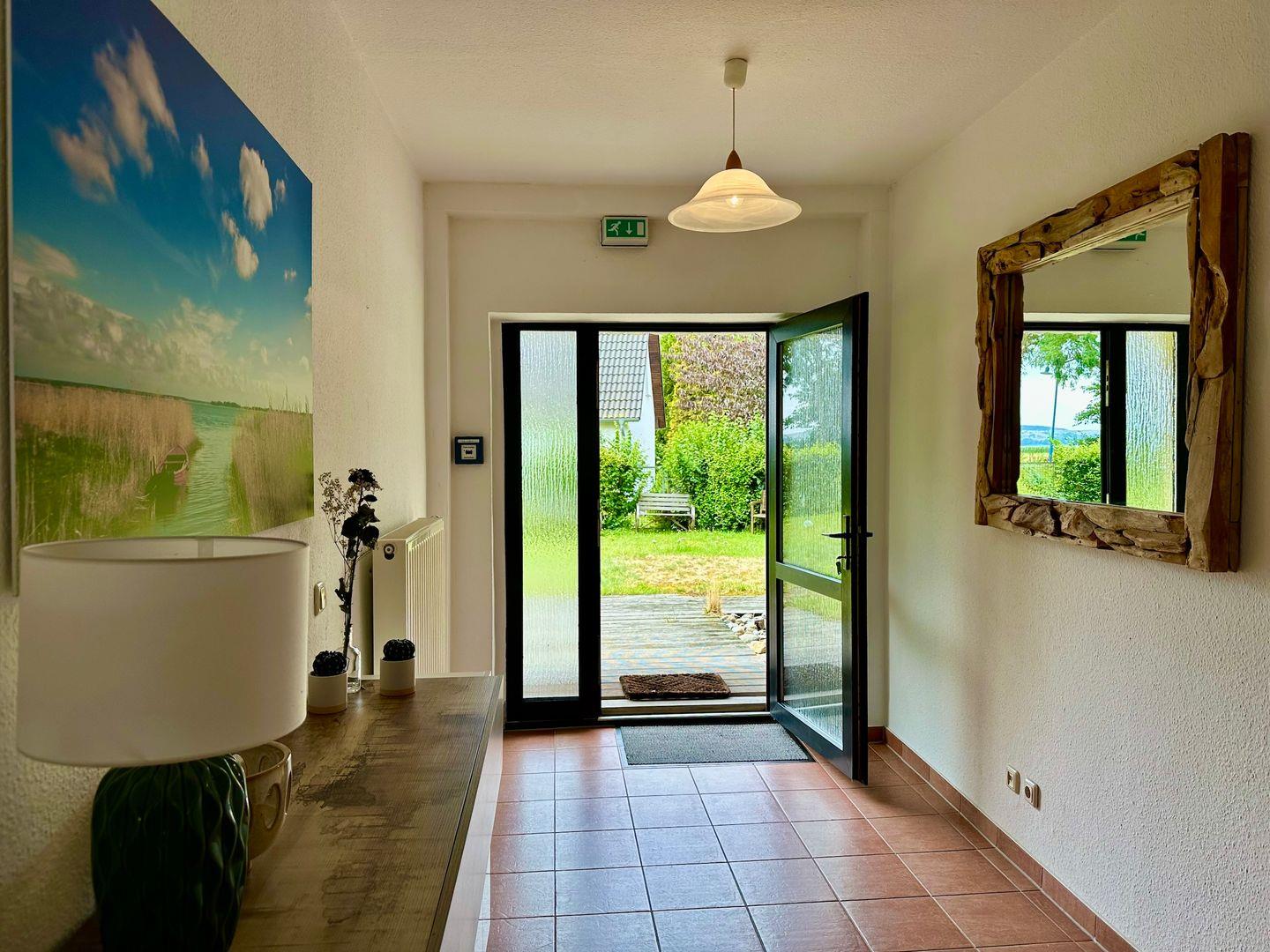 Die Wohnung befindet sich im Obergeschoss mit Blick ins Grüne und Zugang zum Gartenbereich. Sie liegt ruhig, aber strandnah – perfekt für Ausflüge mit der Familie. Kostenlose Parkplätze sind vorhanden.