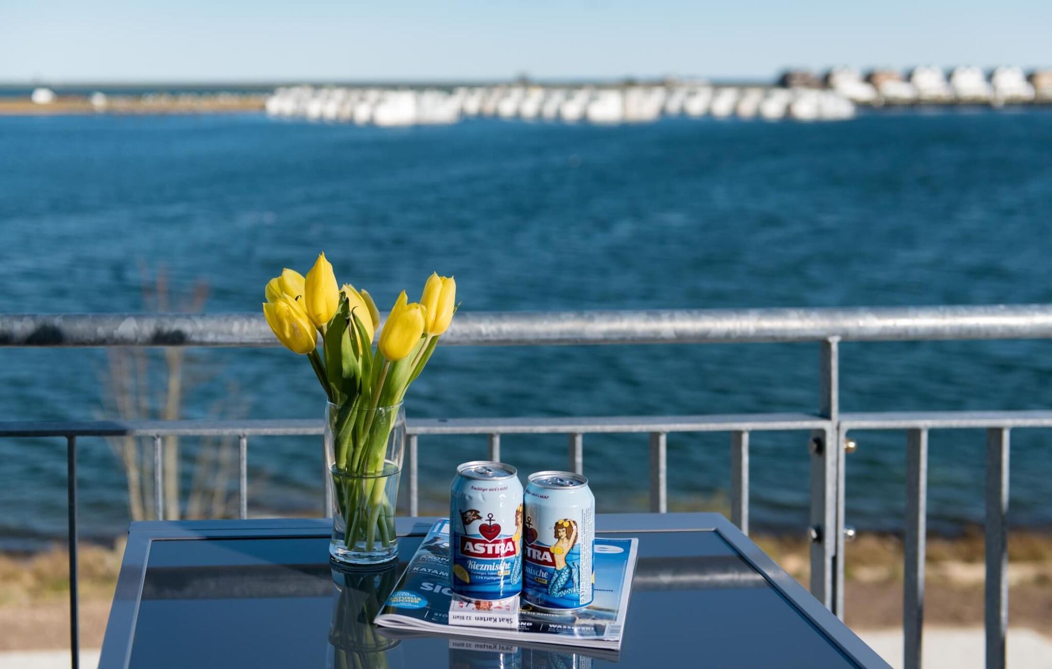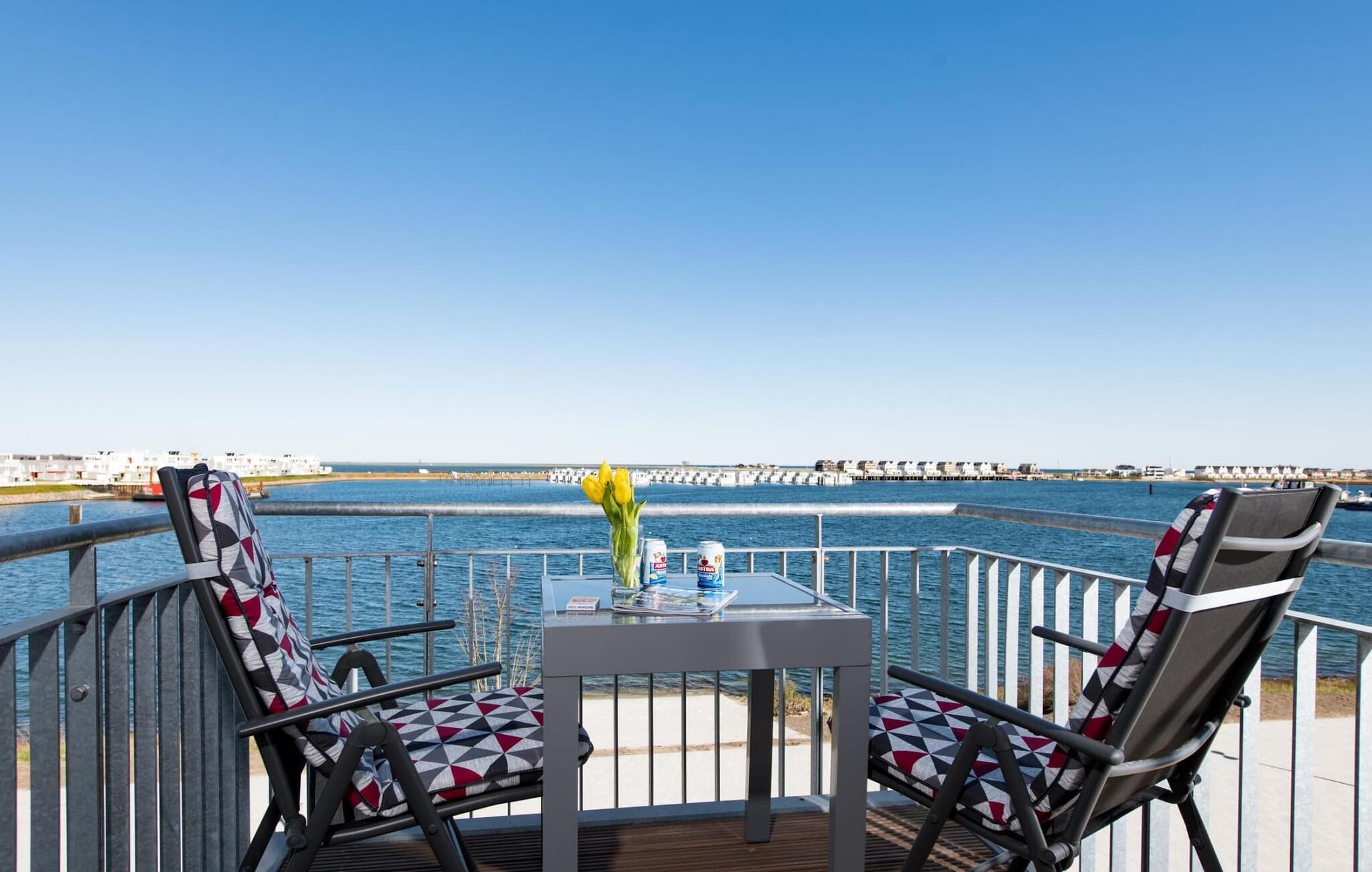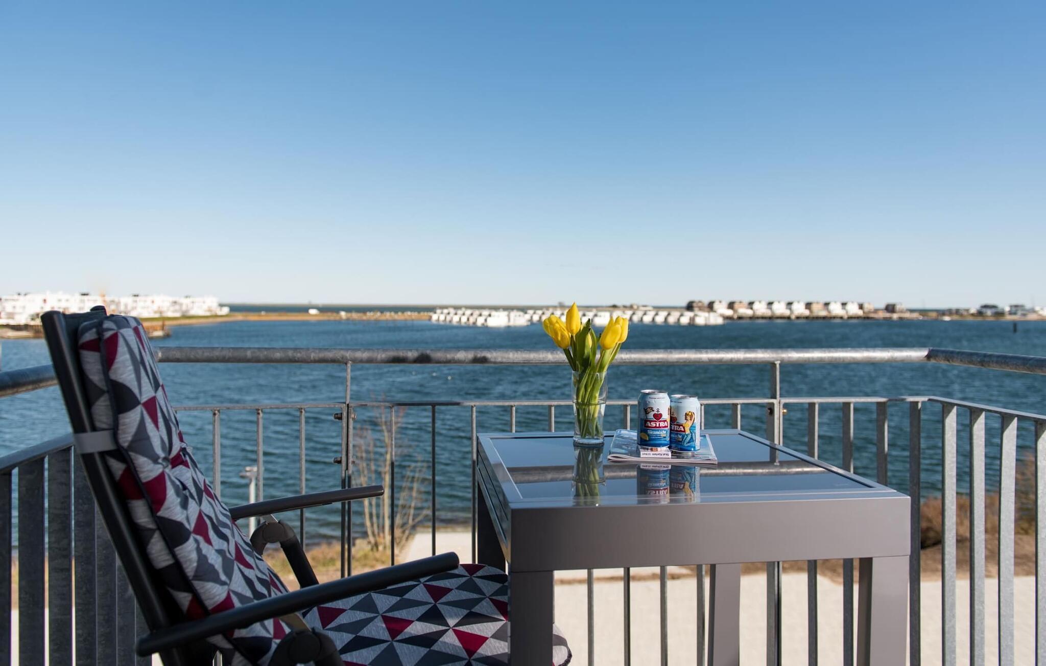 Helle Ferienwohnung mit Balkon und Hafenblick