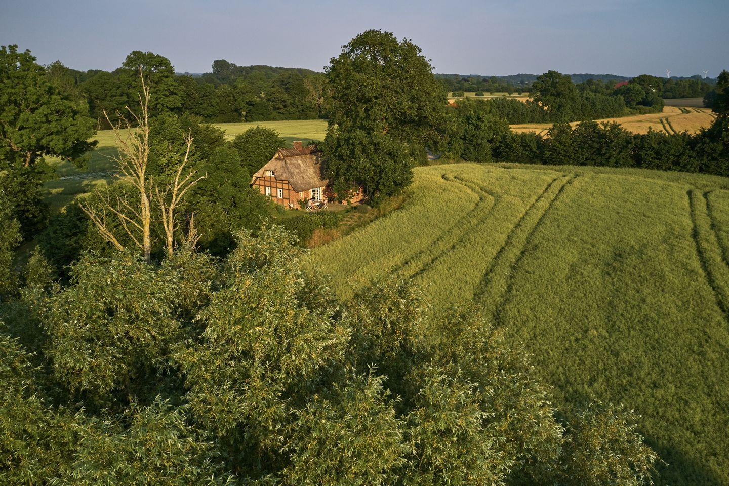 Frau Schröders liegt in absoluter Alleinlage, umgeben von Wiesen, Feldern und Wäldern, mitten in der Natur - wer nach Erholung, Inspiration oder Kreativität sucht, der wird es hier ungestört finden. Allenfalls ein paar Rehe oder Enten schauen ab und zu vorbei, um mal ‚Hallo' zu sagen.