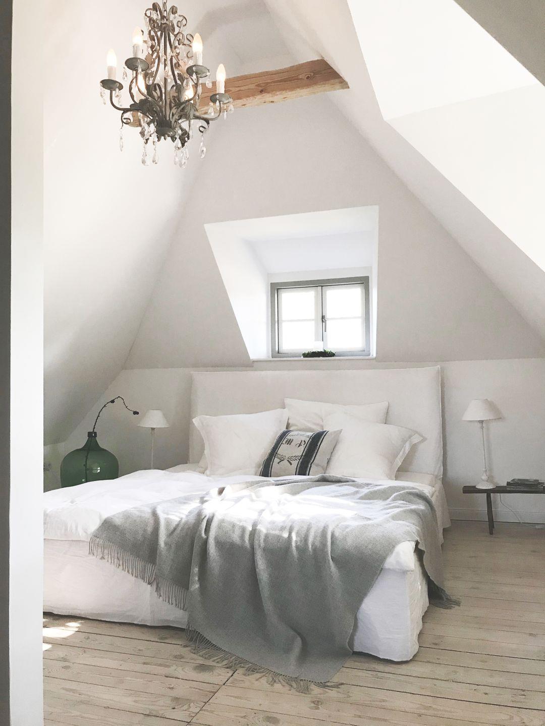 Über die historische Holztreppe gelangt man in das Obergeschoss. Auch hier findet sich der romantische Charme des Hauses wieder. Das große, offene Schlafzimmer mit einem komfortablen Doppelbett und einer gemütlichen Leseecke bietet Raum für Träumereien und Rückzug unter dem Reetdach der Kate. Einbauschränke, die sich hinter antiken Fensterläden verstecken, bieten ausreichend Platz für Kleider und Koffer.