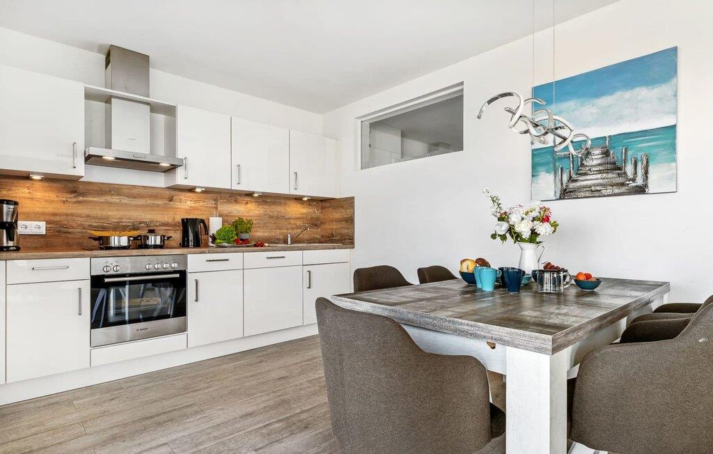 Im Urlaub ist Zeit für kreatives Kochen, die rundum ausgestattete Wohnküche lässt hierbei keine Wünsche offen. Frühstücken bei Morgensonne auf der OstterrasseUrlaubsfeeling pur.
