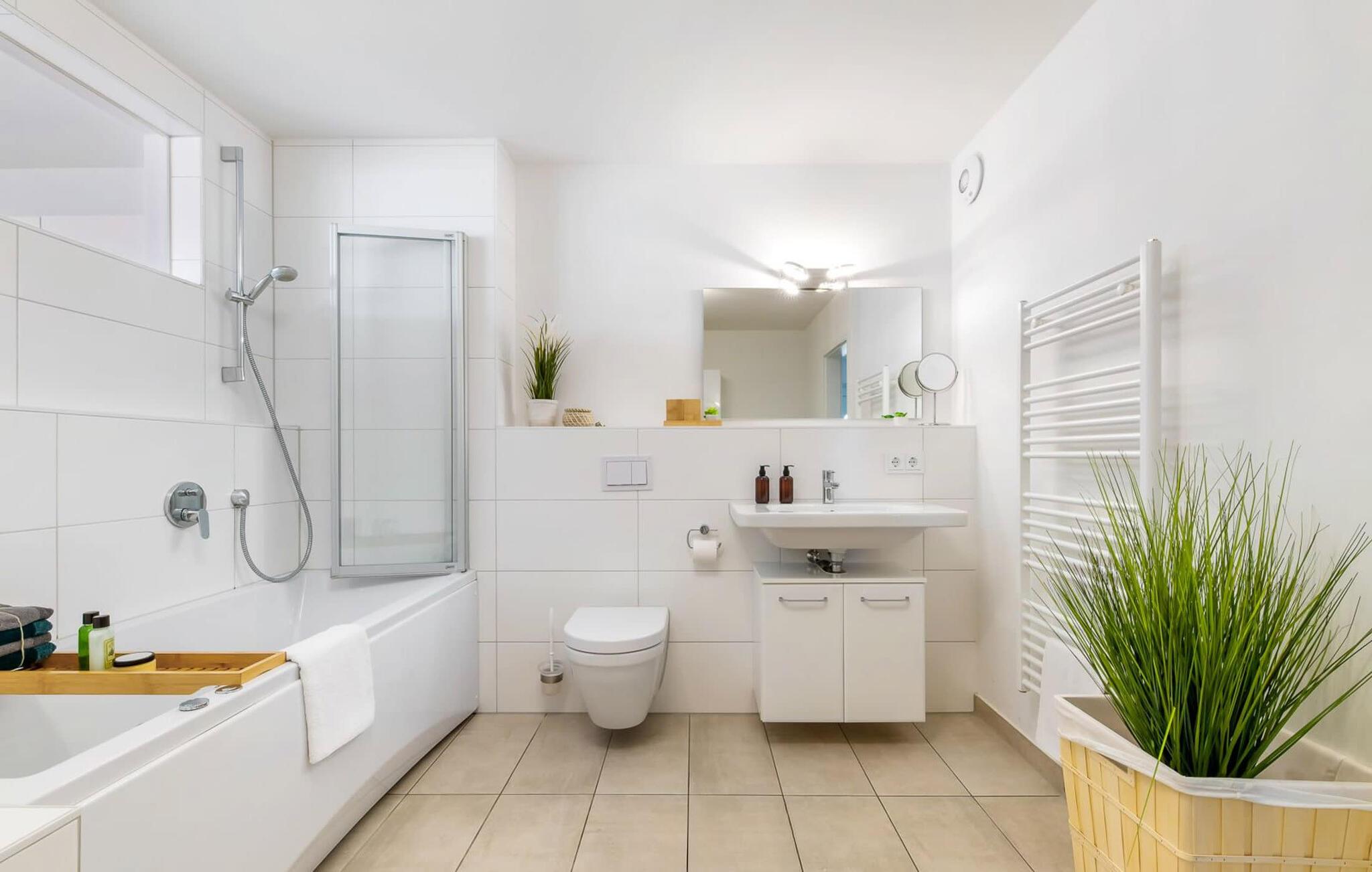 Badezimmer (nr. 1) - WC. Warmes und kaltes Wasser. Dusche und Badewanne