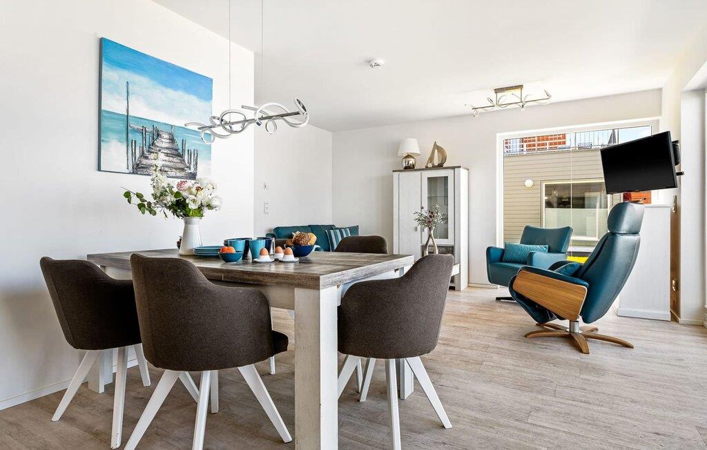 Komfortable Ferienwohnung im OstseeResort Olpenitz mit Meerblick, Wellnessbereich und zwei Terrassen für erholsame Urlaubstage.