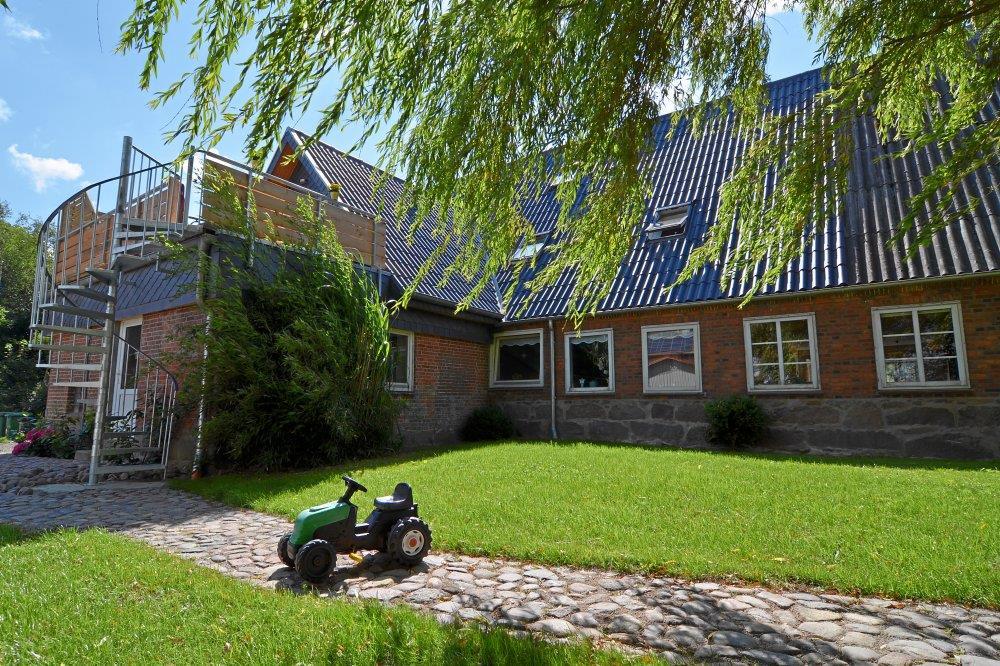 Komfortable Ferienwohnung im historischen Bauernhaus mit großem Garten und Spielplatz in Munkbrarup, ideal für Familien und Naturfreunde.
