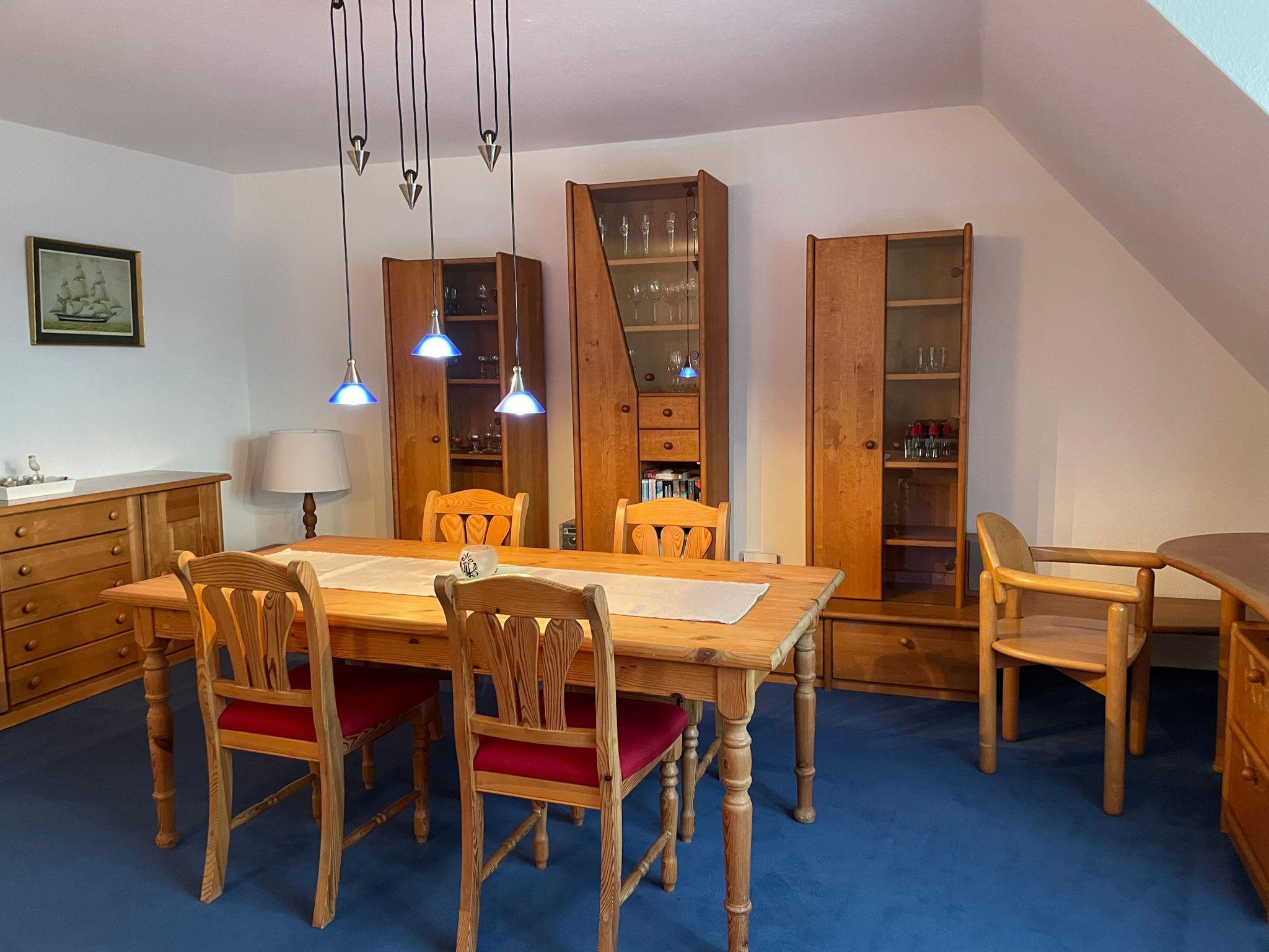 Großzügige Ferienwohnung (115 m²) auf dem Lande, nur 1,5km von der Ostsee entfernt. Die Wohnung liegt im 1. Stock und besteht aus einem Schlafzimmer mit Doppelbett (2,00 x 2,00m) und einem Schlafzimmer mit zwei großen Einzelbetten (1,40 x 2,00m), einem großen Wohnzimmer mit gemütlicher Sitzgruppe und einem Esstisch, einer kleinen Küche mit voller Ausstattung und einem Bad mit Duschwanne. Ein Waschtrockner steht kostenlos zur Verfügung.