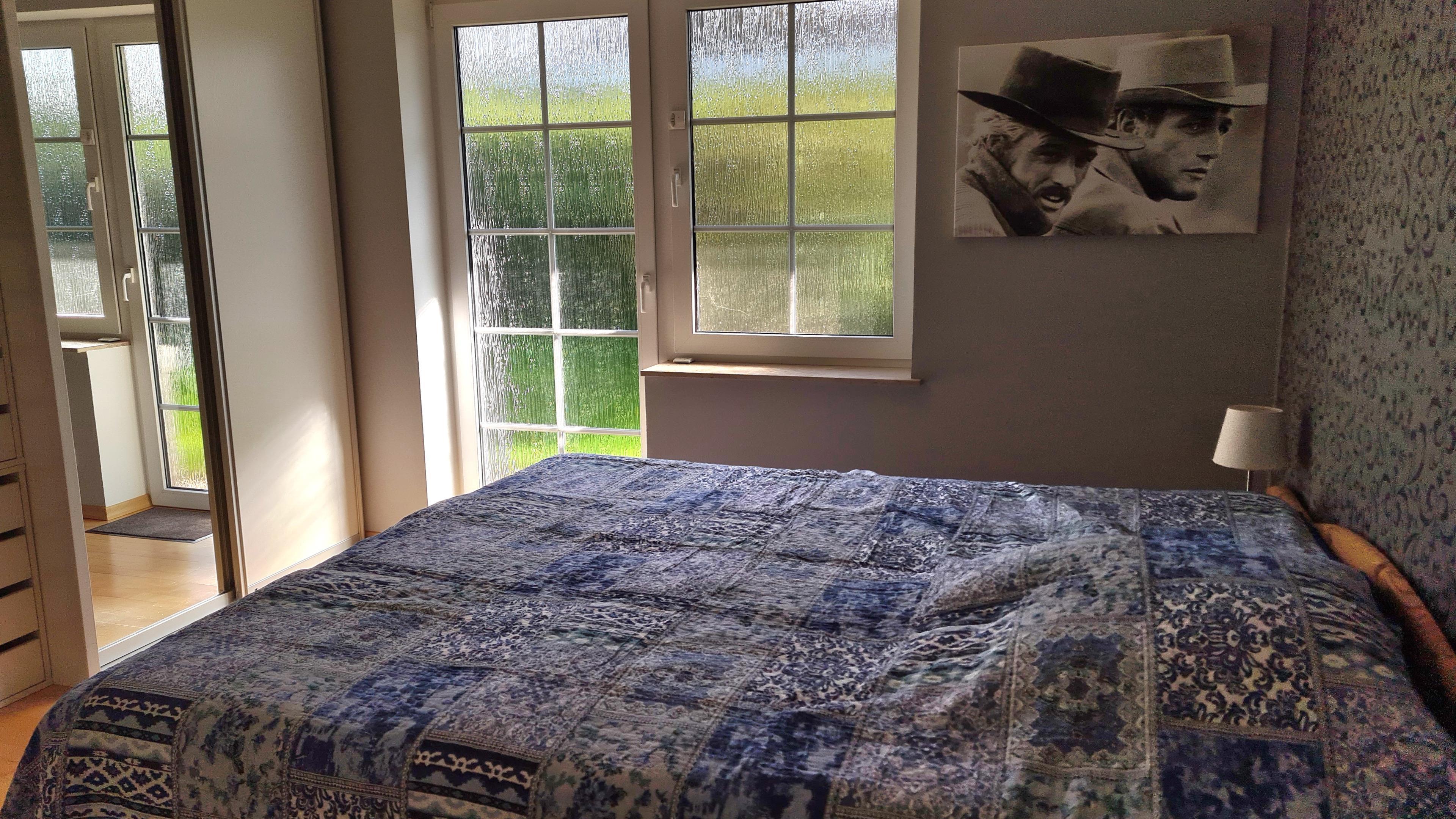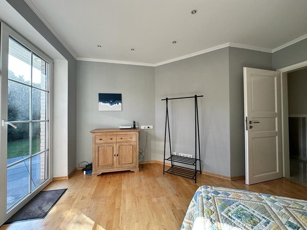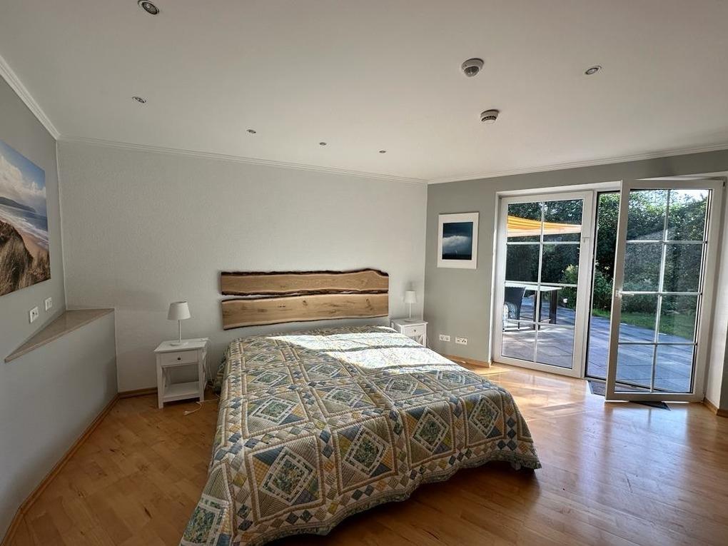 Vor den Garagen, von denen die rechte inkl. eines Abstellraumes (zum Garten hin) mitvermietet ist, befinden sich zwei bis drei PKW Stellplätze. In der rechen Garage ist ein Starkstromanschluß (ohne Wallbox) für das Aufladen eines Elektroautos (wird über den Gesamtstromverbrauch des Aufenthalts abgerechnet).