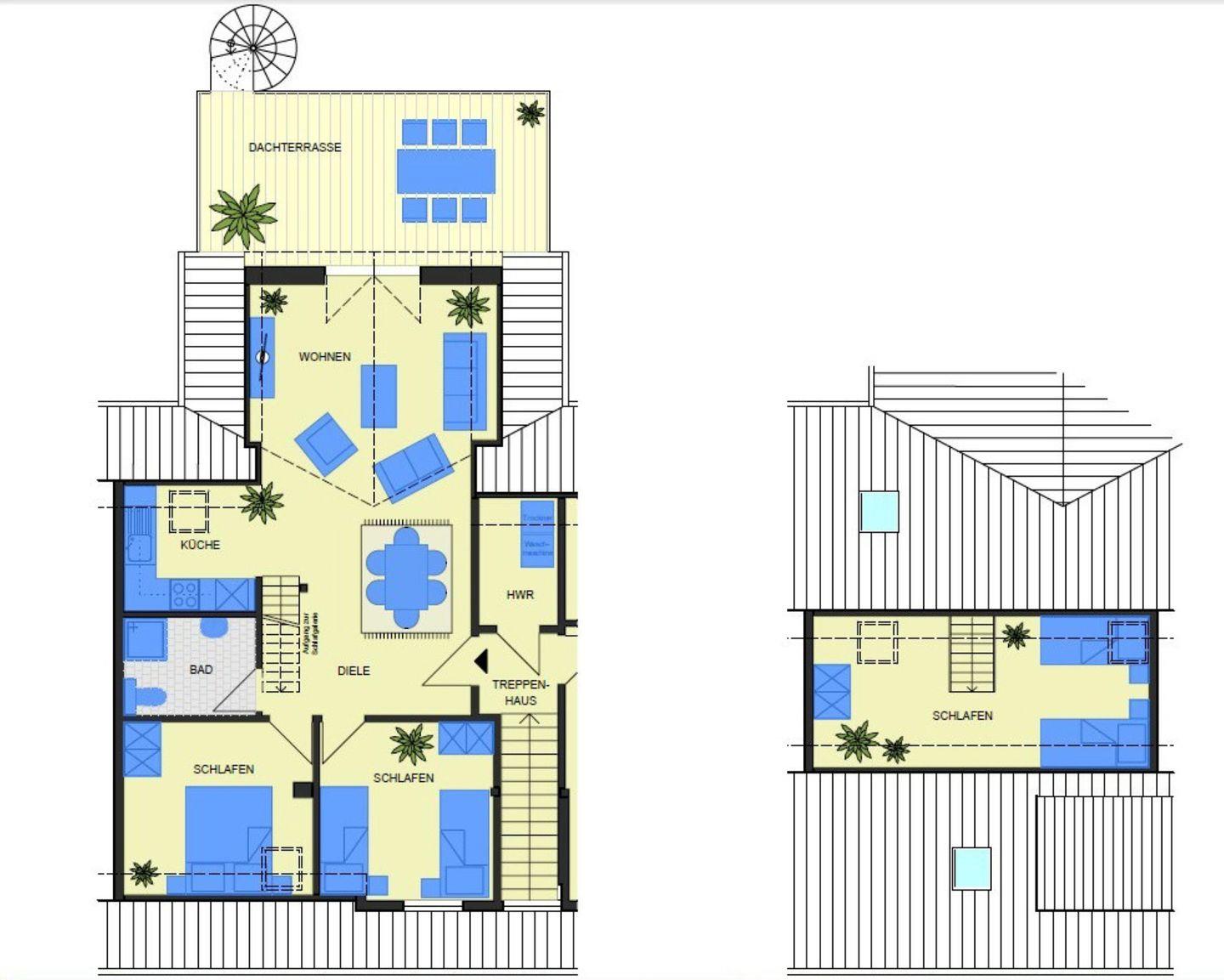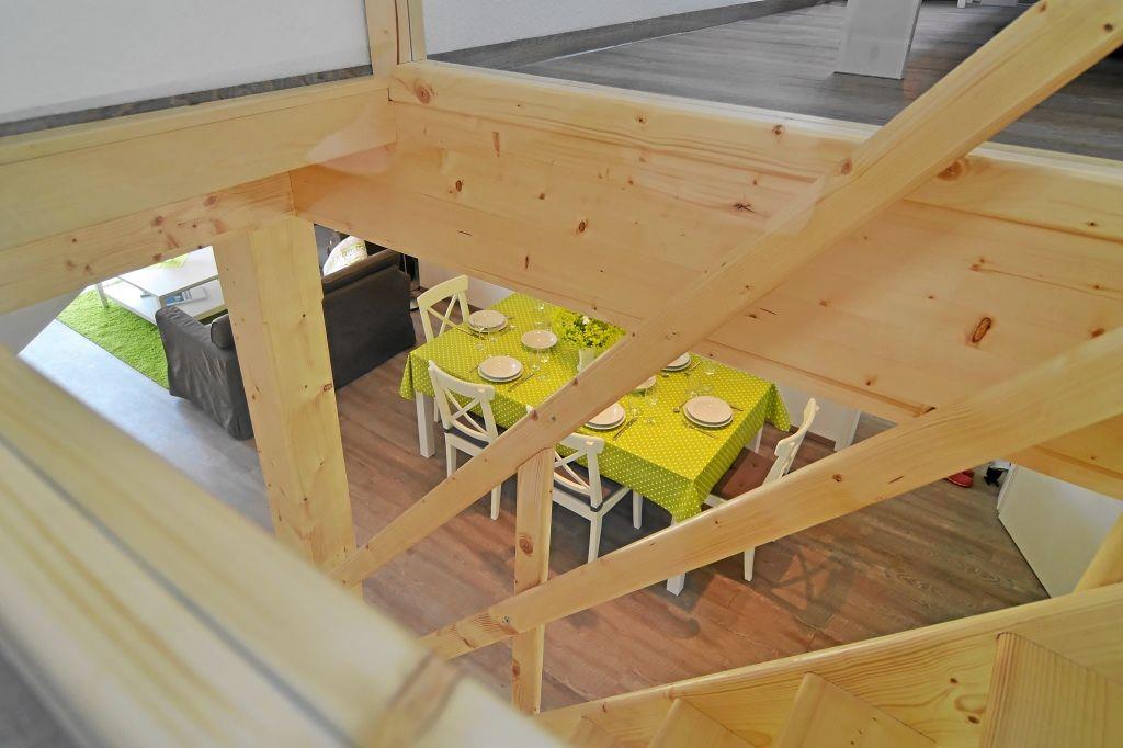 Ein echtes Highlight ist der gemütliche Spitzboden, der über eine Treppe direkt aus dem Wohnbereich erreichbar ist. Dort befinden sich zwei weitere Schlafplätze – von unseren kleinen Gästen liebevoll „Piratenschiff“ genannt.