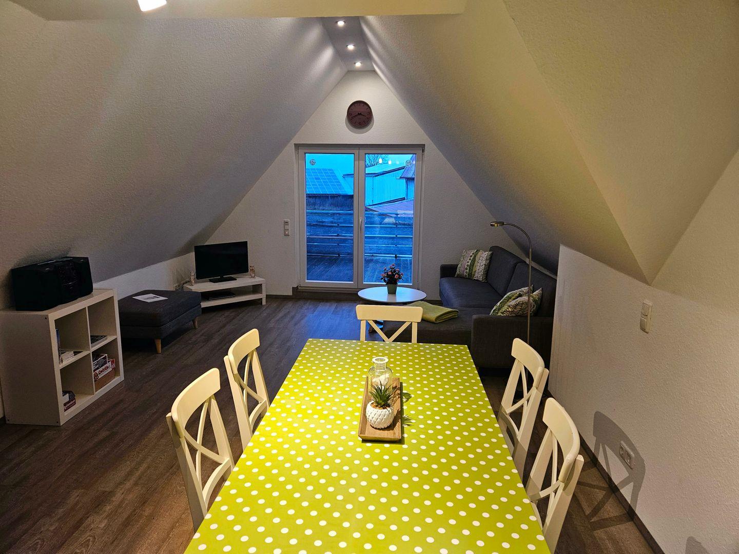 Die Ferienwohnung "EulenNest" auf dem Bauernhof bietet stilvollen Komfort und eine sonnige Dachterrasse für bis zu 6 Personen.