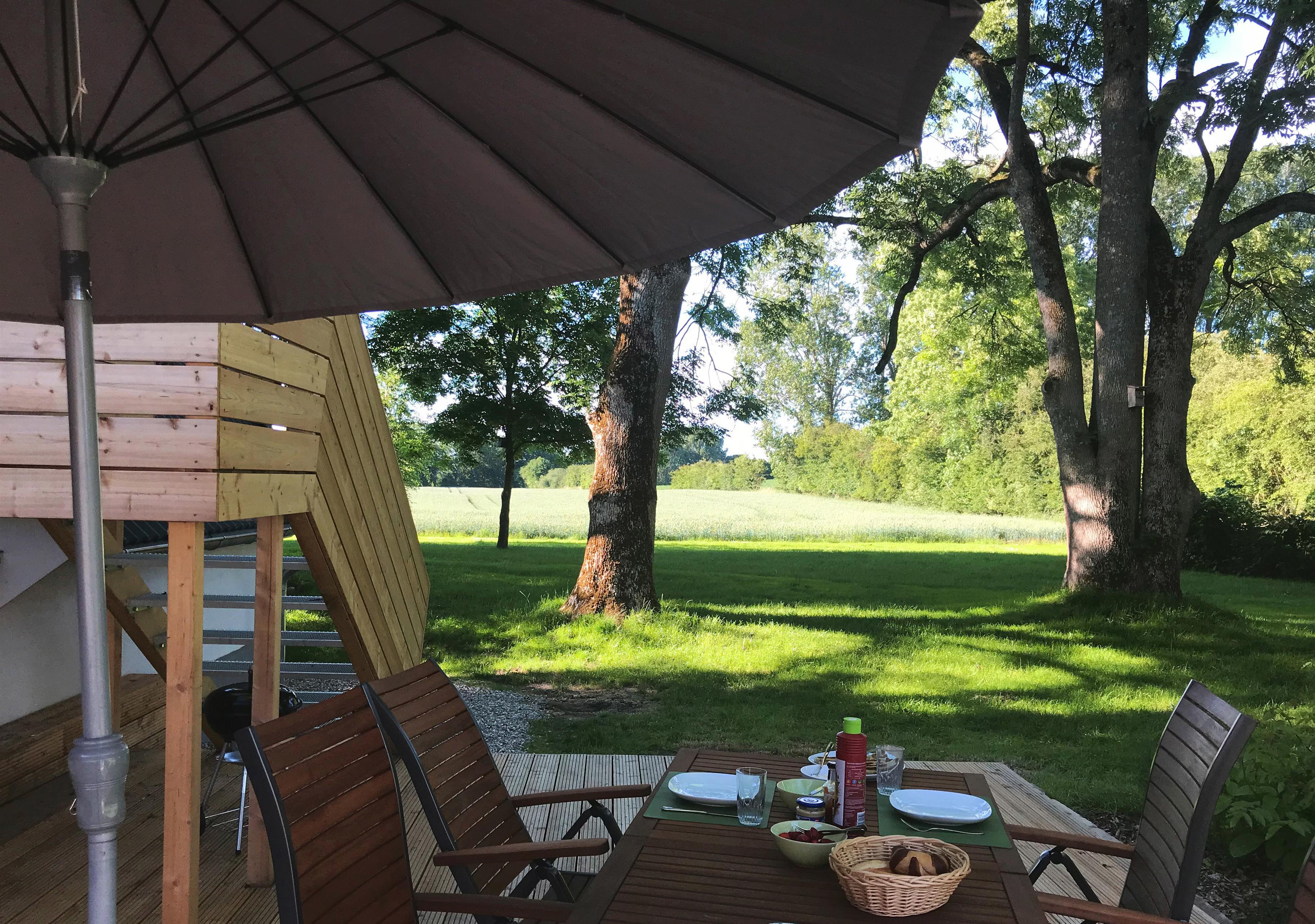 Moderne, skandinavisch gestaltete Ferienwohnung mit großer Terrasse und Gartenblick in ruhiger Lage bei Nübel.