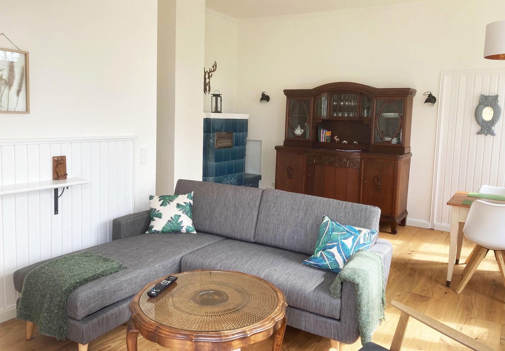 Stilvolle Ferienwohnung "Parkwohnung" nahe Schlei & Langsee – ideal für Familienurlaub mit Hund, mit großer Terrasse, Kachelofen, 2 Bädern, Spiel- & Arbeitsbereich sowie Garten- und Fahrradnutzung.