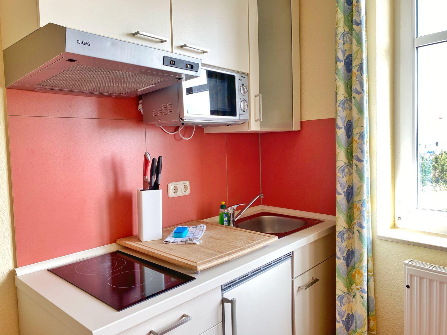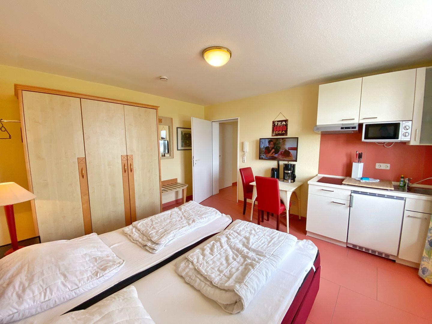 Das 1-Raum-Appartement Nr. 307 befindet sich im 1.OG des Hauses und ist ausgestattet für 2 Personen.