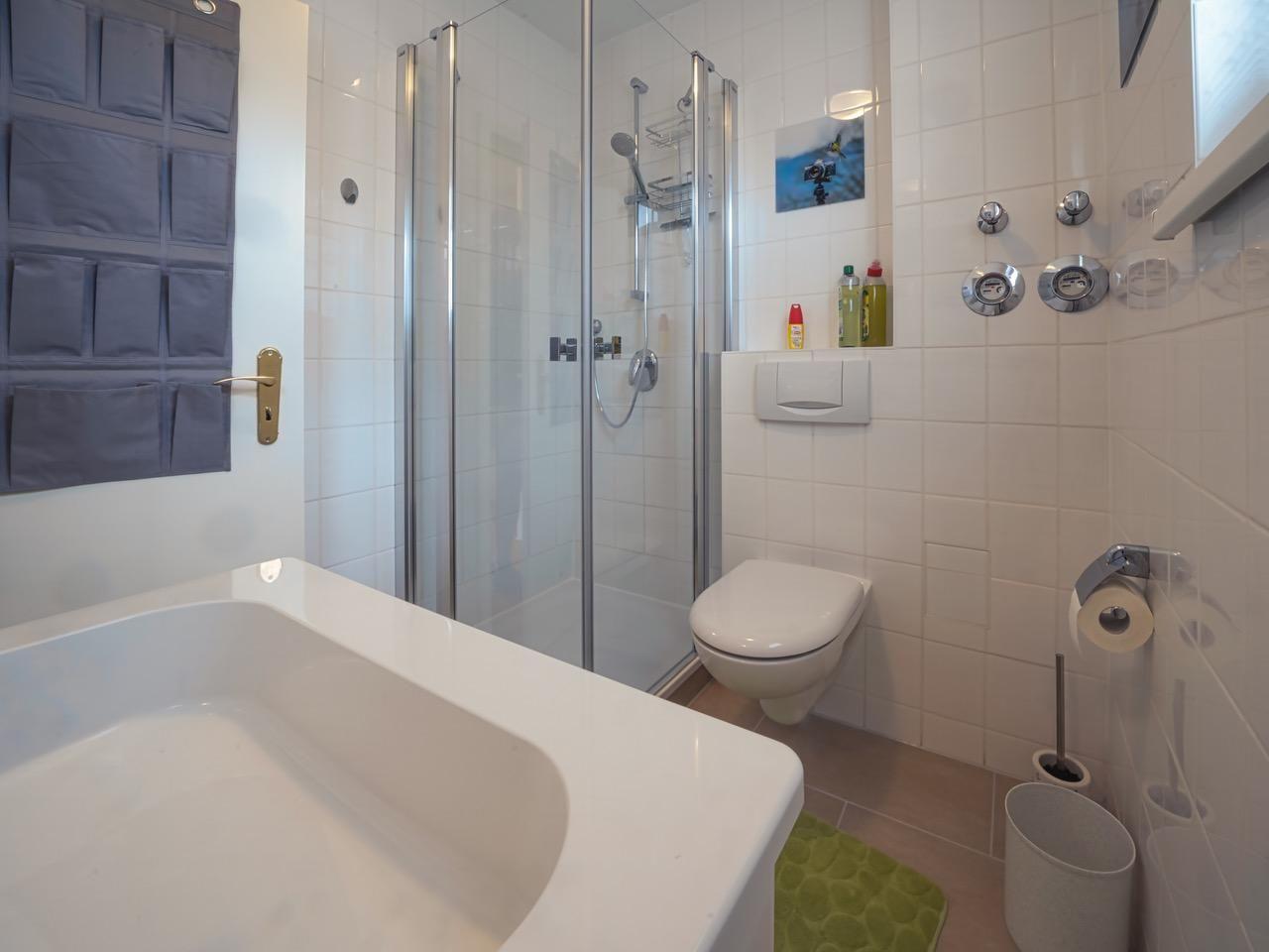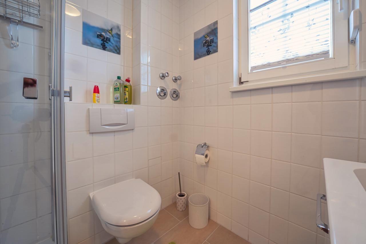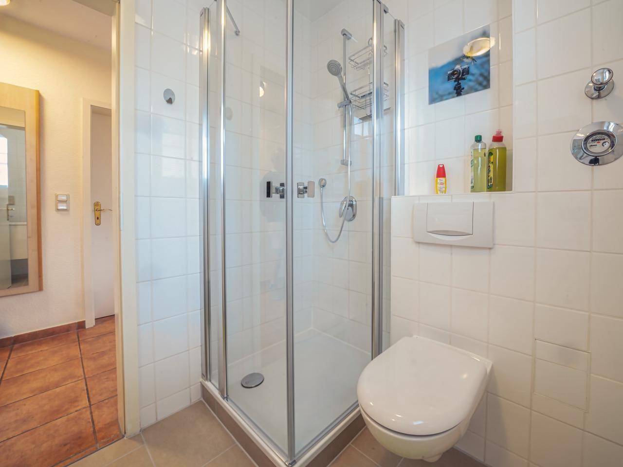Das Tageslichtbad mit Dusche und WC ist hell und modern.