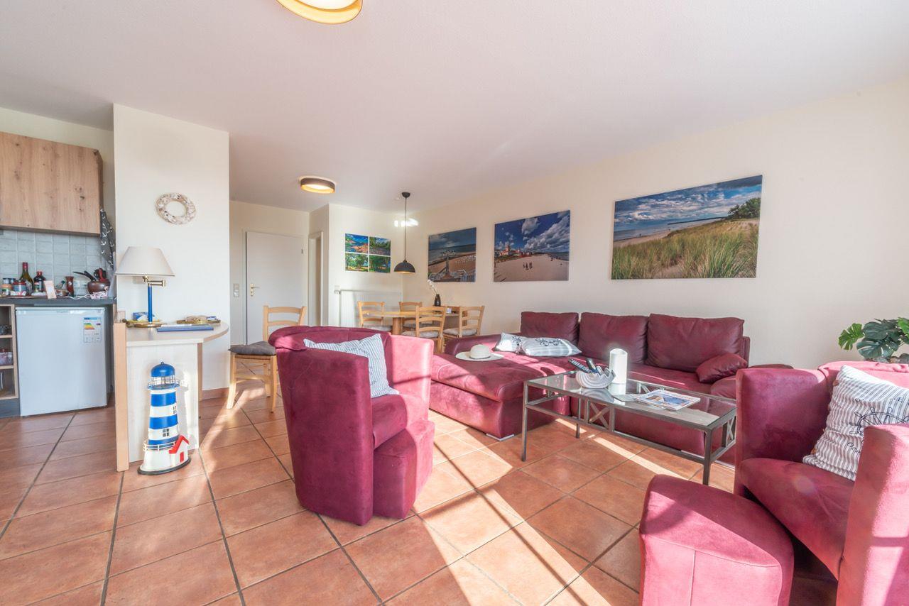 Das Ferienappartement Nr. 51 mit eigenem Eingang hat eine Größe von ca. 65 qm und liegt im Erdgeschoss eines schönen Ferienhauses. Die 2-Zimmer-Wohnung bietet bequem Platz für 4 Personen.