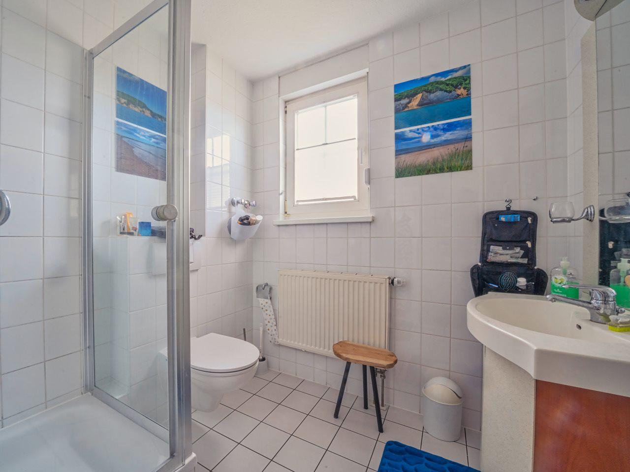 Das Tageslichtbad mit Dusche und WC ist hell und modern.