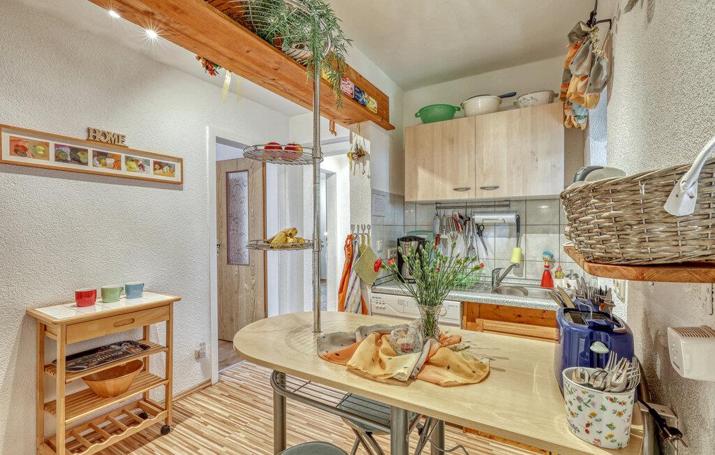 Die Wohnung verfügt über einen Wohnraum (Eckcouch mit Schlaffunktion - Aufbettung, Flachbild-TV), einen Schlafraum (Doppelbett), eine Küche (Essplatz, E-Herd mit Backofen, Spülmaschine, Kühlschrank mit TK-Teil, Mikrowelle, div. Küchenutensilien), ein Bad mit DU/WC sowie Haartrockner und Zentralheizung. Außerdem sind W-LAN, diverse Sitzecken im Freien, Kinderbett und Hochstuhl zum Zustellen, Kinderwickeltisch, Holzkohlegrill, PKW-Stellplatz und ein abschließbarer Fahrradabstellraum vorhanden. Im Gesamtpreis enthalten sind: Bettwäsche, Handtücher, Wasser- und Energieverbrauch sowie die Endreinigung.