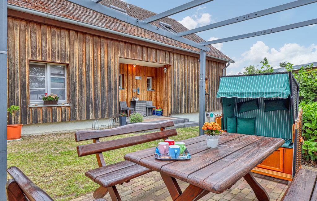 Gemütliche Ferienwohnung im Erdgeschoss nahe dem Achterwasser auf Usedom, ideal für Naturfreunde und Familien.