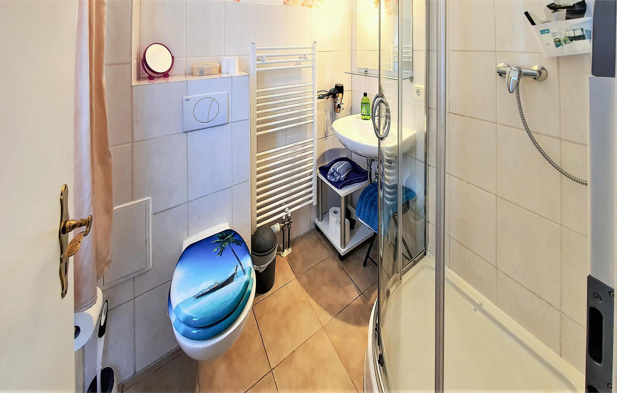 Badezimmer (nr. 1) - WC. Warmes und kaltes Wasser. Dusche