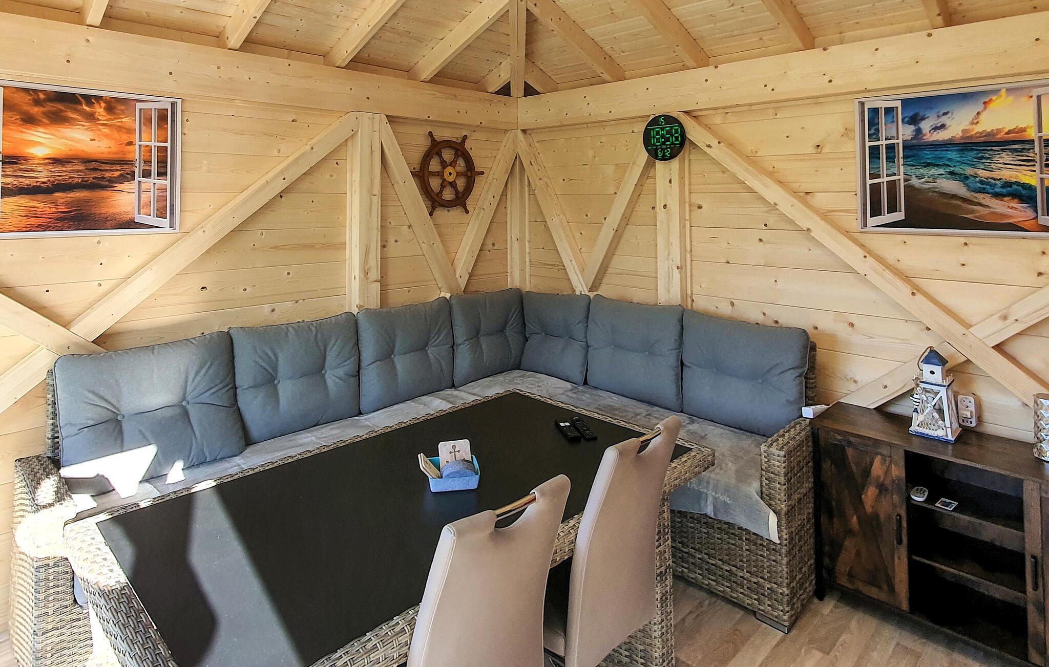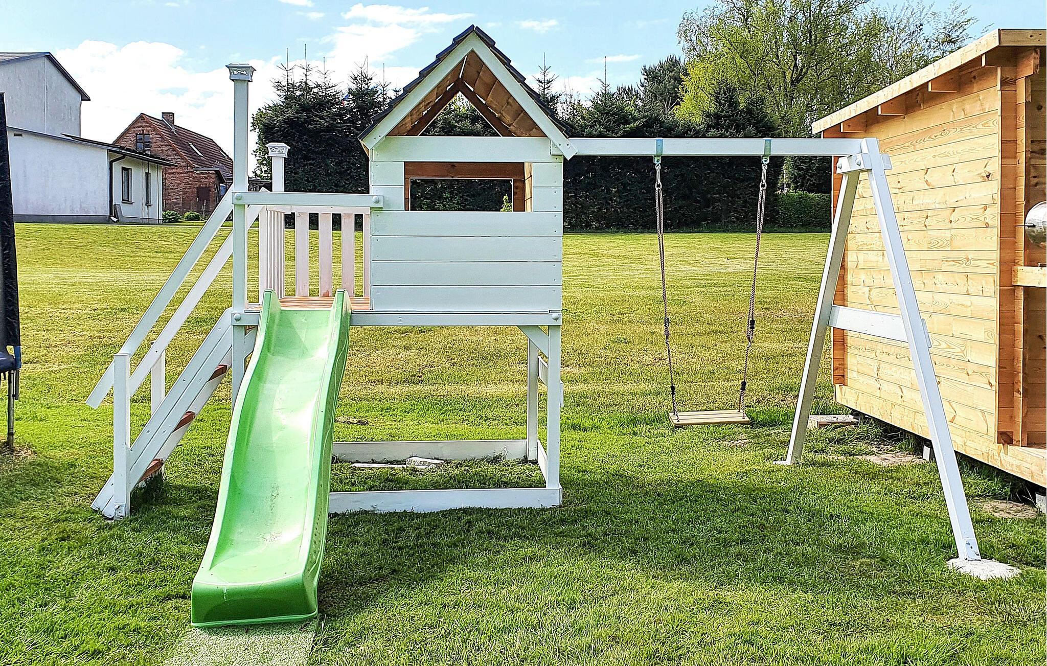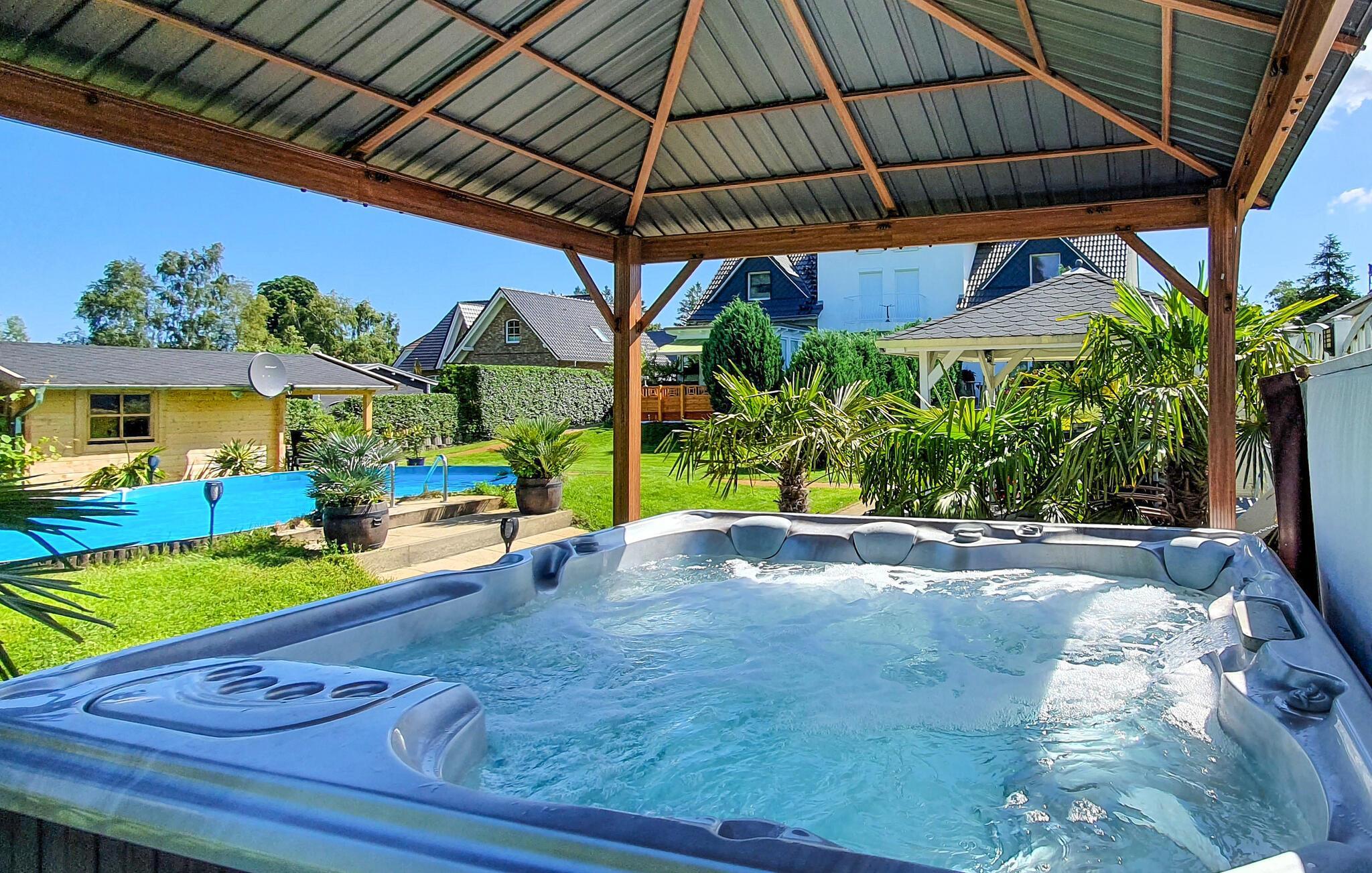 Die komfortable und moderne Ferienwohnung für 2-4 Personen wurde 2014 neu gebaut und ausgestattet. Sie befindet sich im Erdgeschoss eines Wohn-/Ferienhauses, nur ca. 500 Meter vom Achterwasser (Nepperminer See) entfernt. Das Ostseebad Bansin ist ca. 8 km entfernt. Die Ferienwohnungen verfügen jeweils über ein Wohnzimmer (Polstermöbel mit Schlaffunktion, Flachbild-TV, Radio/CD, DVD, Esstisch, teilweise Kamin), Schlafzimmer (Doppelbett, Flachbild-TV), Kochnische (Elektroherd, Kühlschrank mit Gefrierfach, Minibackofen, Mikrowelle, diverse Küchengeräte), Dusche/WC, Zentralheizung, WLAN. Bei Bedarf können ein Kinderbett und ein Hochstuhl bereitgestellt werden. In allen Zimmern gibt es einen gefliesten Boden mit Fußbodenheizung, außer im Schlafzimmer. Es gibt einen möblierten Außensitzplatz, einen Außenpool (nicht beheizt), einen Grillplatz, ein Trampolin und einen PKW-Stellplatz. Ein privater Außen-Whirlpool kann gegen Gebühr genutzt werden. Die Erdgeschosswohnungen verfügen über eine möblierte Terrasse und einen separaten, eingezäunten Bereich. Im Gesamtpreis sind enthalten: Bettwäsche, Handtücher, Wasser- und Energieverbrauch.