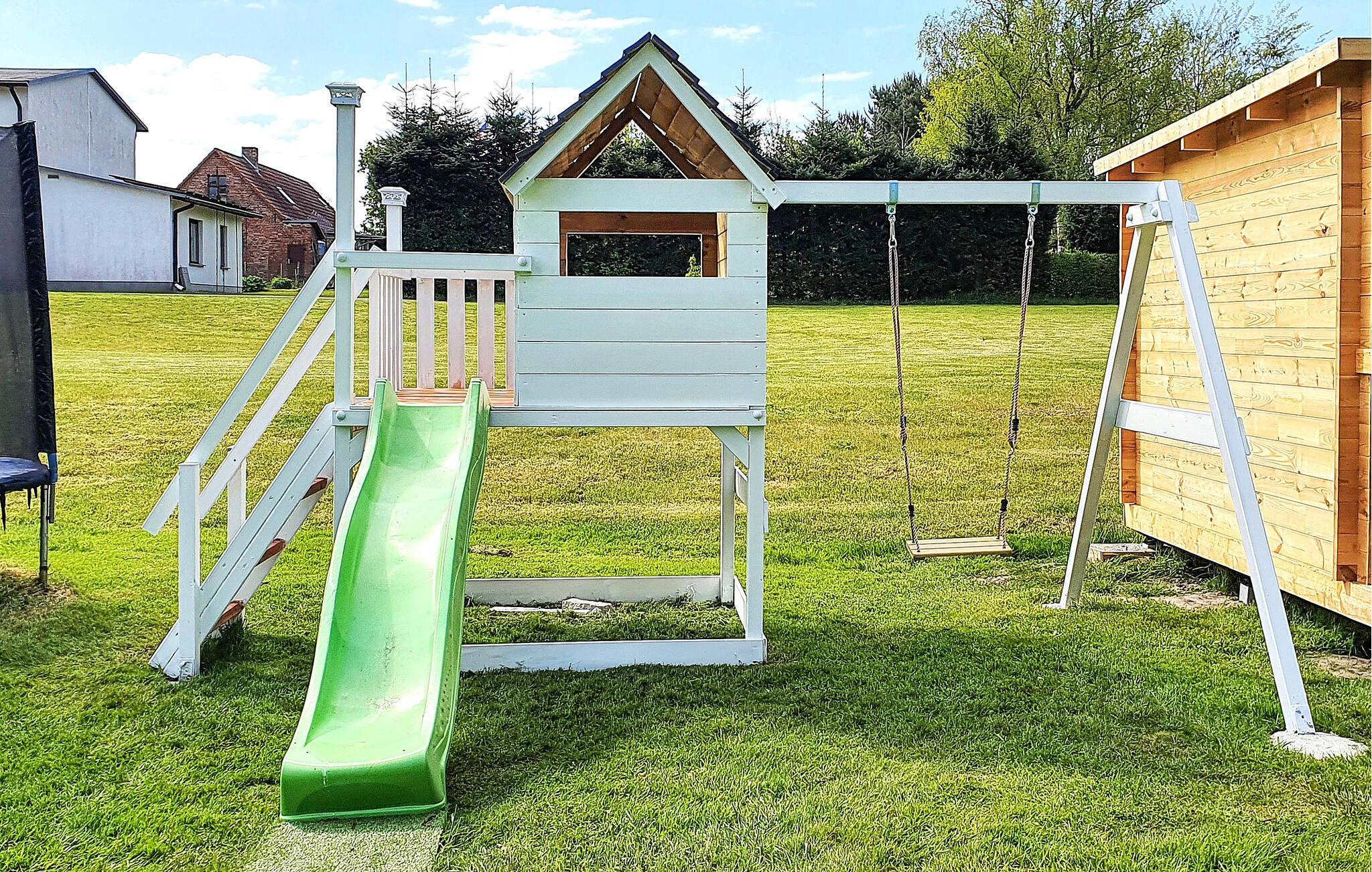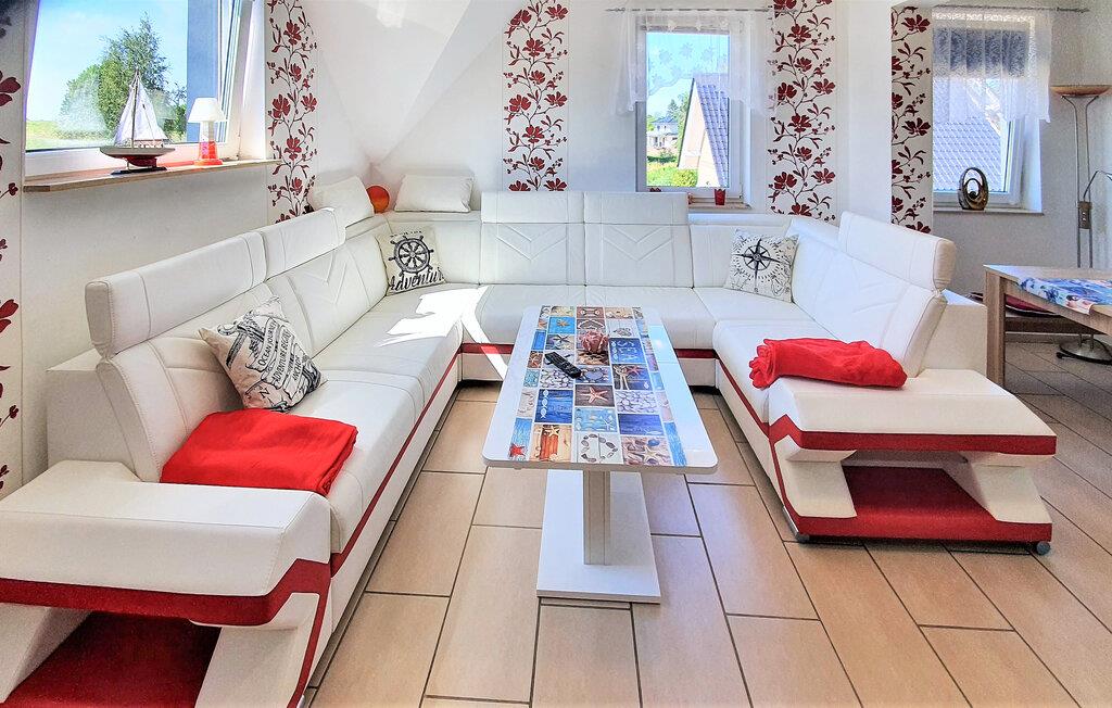 Die komfortabel und modern eingerichtete Ferienwohnung wurde 2014 neu gebaut und ausgestattet. Die Ferienwohnung für 2-5 Personen liegt im 1. Stock eines Ferienhauses, nur ca. 500 m vom Achterwasser (Nepperminer See) entfernt. Dort gibt es auch ein Kamin im Wohnzimmer. Das Ostseebad Bansin ist ca. 8 km entfernt. Die Ferienwohnung verfügt über ein Wohnzimmer (Polstermöbel mit Schlaffunktion, Flachbild-TV, Radio/CD, Esstisch, teilweise mit ein Kamin), Schlafzimmer (Doppelbett, Flachbildfernseher), Kochnische (E-Herd, Kühlschrank mit Gefrierfach, Minibackofen, diverse Küchengeräte), Dusche/WC, Zentralheizung, WLAN. Ein Kinderbett und ein Hochstuhl können zur Verfügung gestellt werden. Es gibt einen möblierten Außenbereich, einen Außenpool (nicht beheizt), einen Grillplatz, ein Trampolin und einen Parkplatz.
