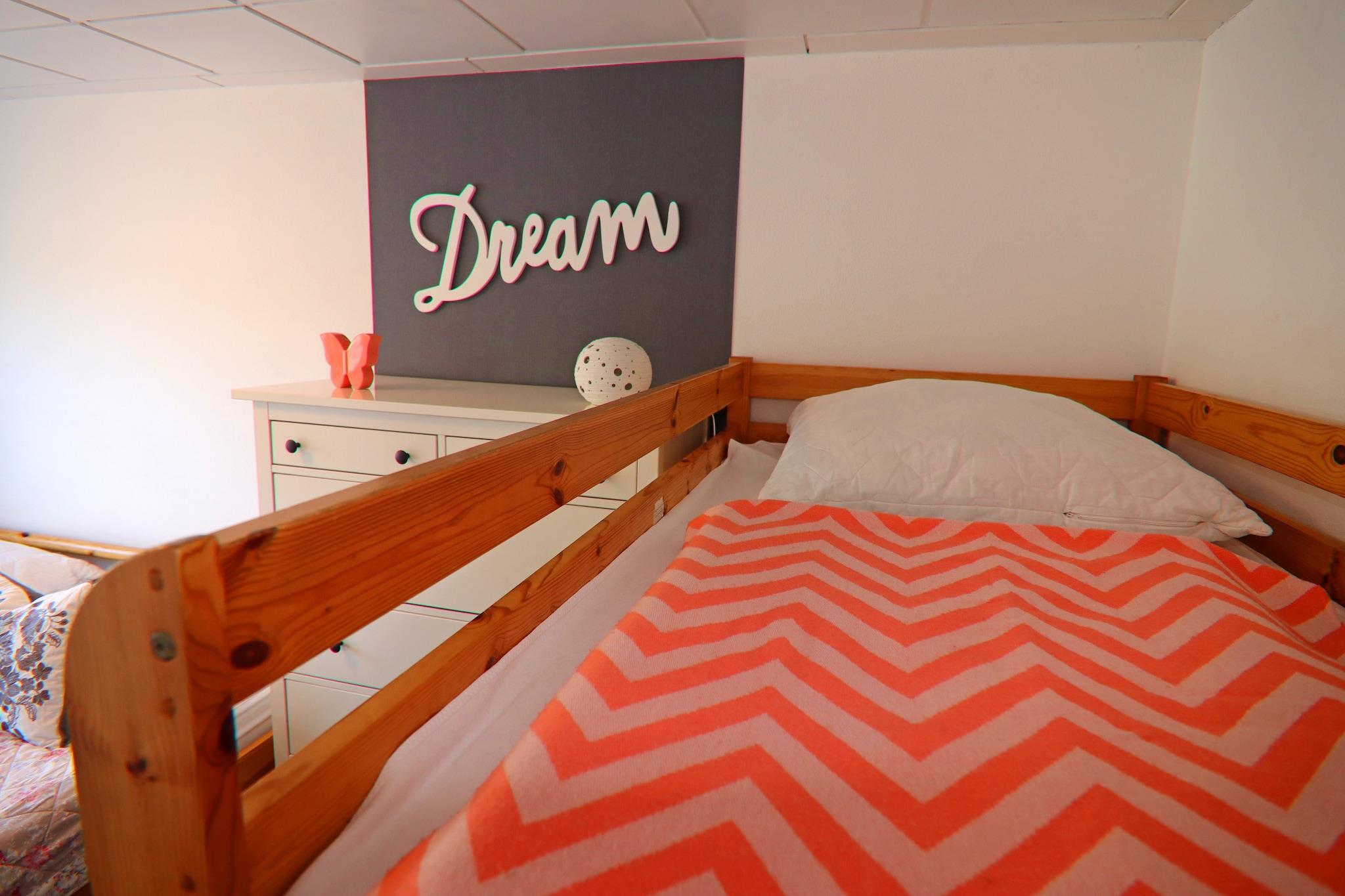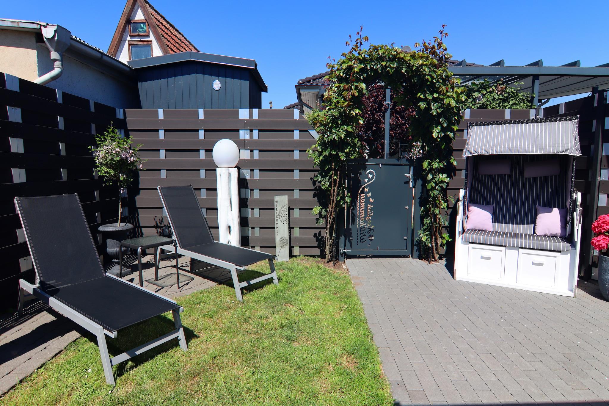Parterre: (offene Küche(Wasserkocher, Toaster, Kochherd(4 Kochplatten, Ceranfeld, elektrisch), Dunstabzugshaube, Kaffeemaschine, Backofen, Mikrowelle, Kühlschrank), Wohn-/Schlafzimmer(Schlafcouch 1 Pers., TV(Flatscreen), Kaminofen, Sitzecke, Radio), Schlafzimmer(Etagenbett, Doppelbett king size), Badezimmer(Dusche(ebenerdige Dusche), Waschbecken, Toilette), Heizung) Terrasse(alleinige Nutzung, überdacht), Garten(umzäunt), Gartenmöbel, Liegen, Grill, Parkplatz, Sonnenschirm, Spielgeräte, Schaukel