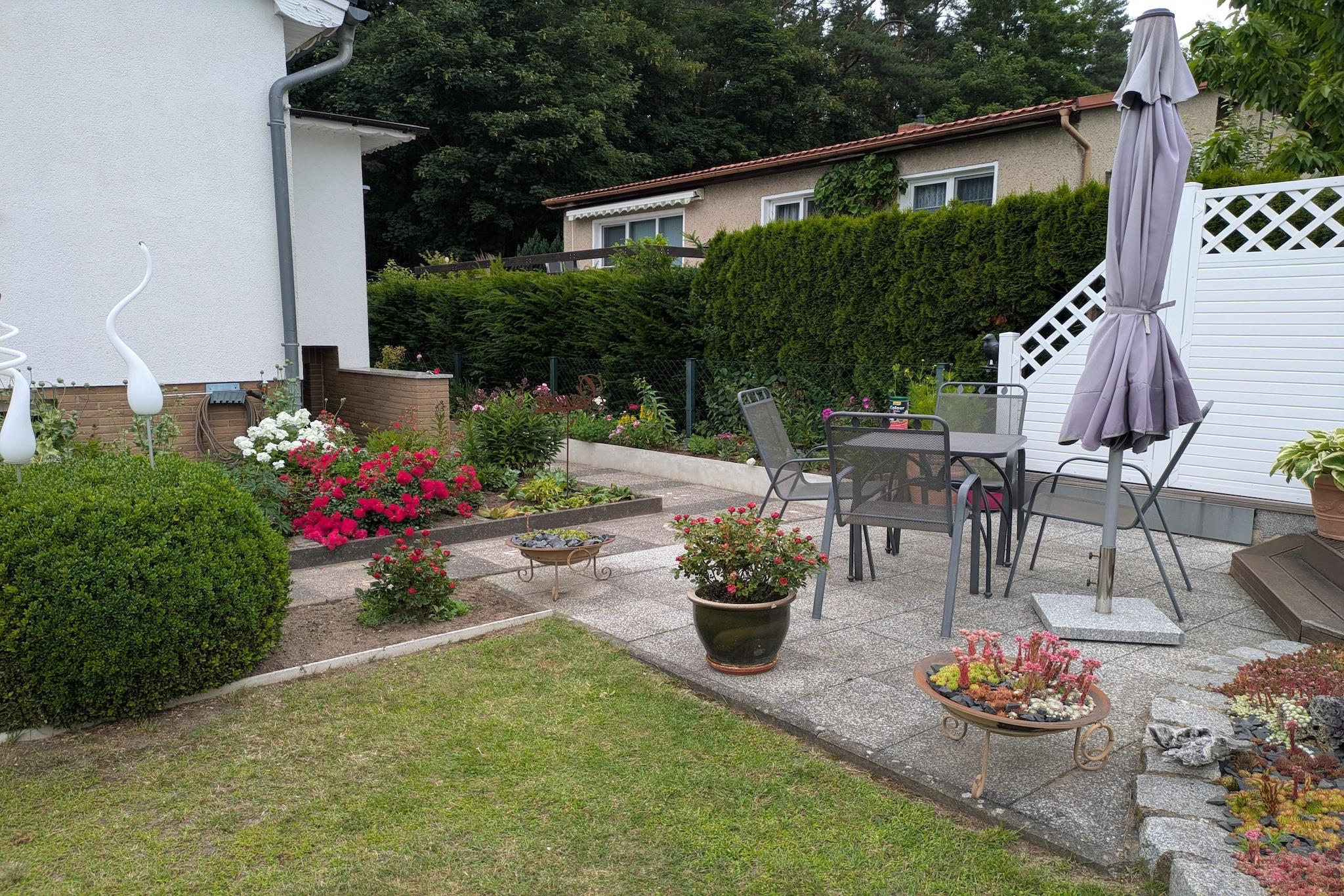 Charmanter Bungalow in Neubukow, modern renoviert, mit überdachter Terrasse und Gemeinschaftsgarten, ideal für ruhige Ostseeurlaube.
