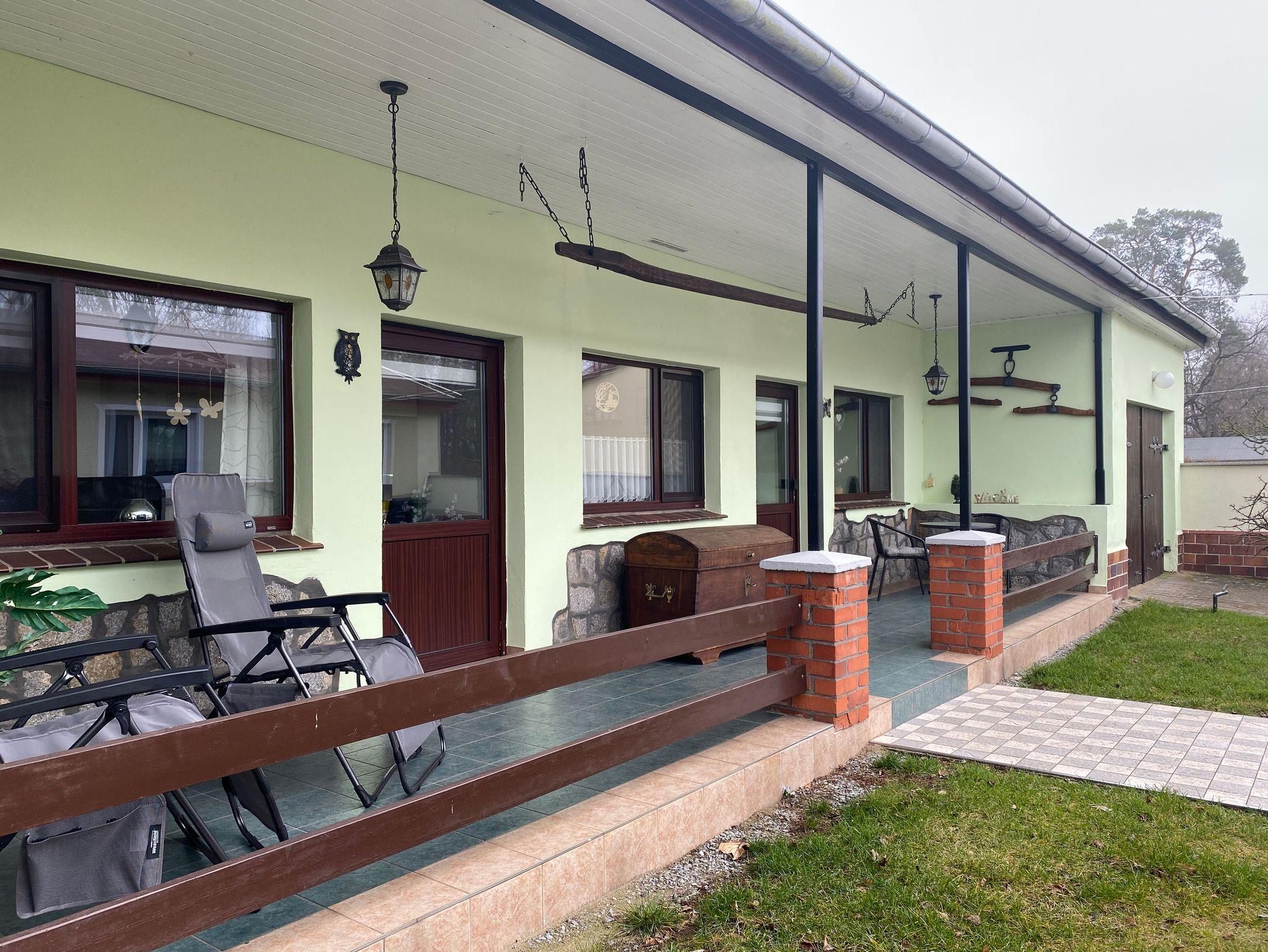 Familienfreundlicher 2-Raum-Bungalow (50m²; max. 3 Erw. + 1 Baby) mit Terrasse, Gartenhäuschen + Grillecke.
