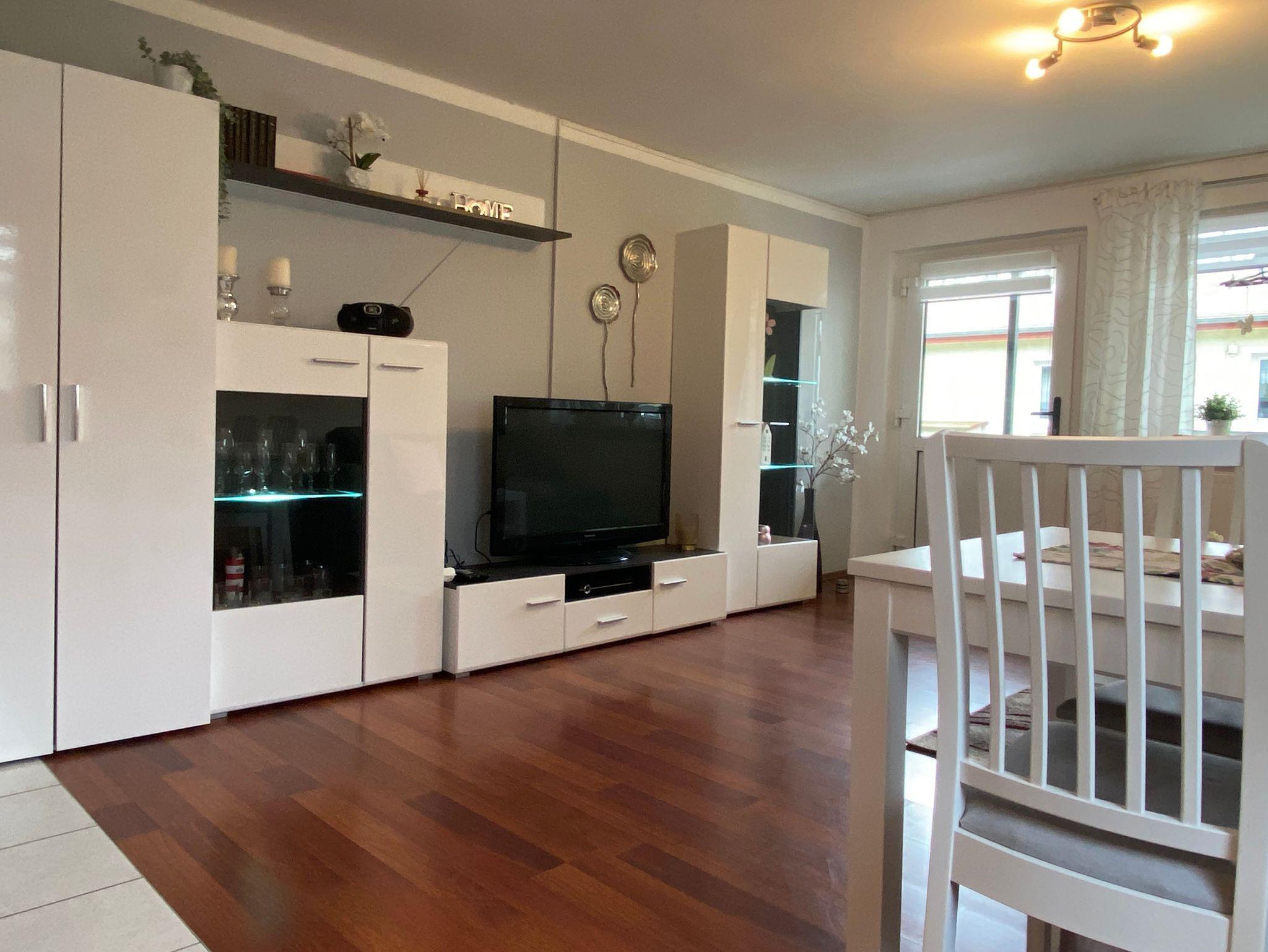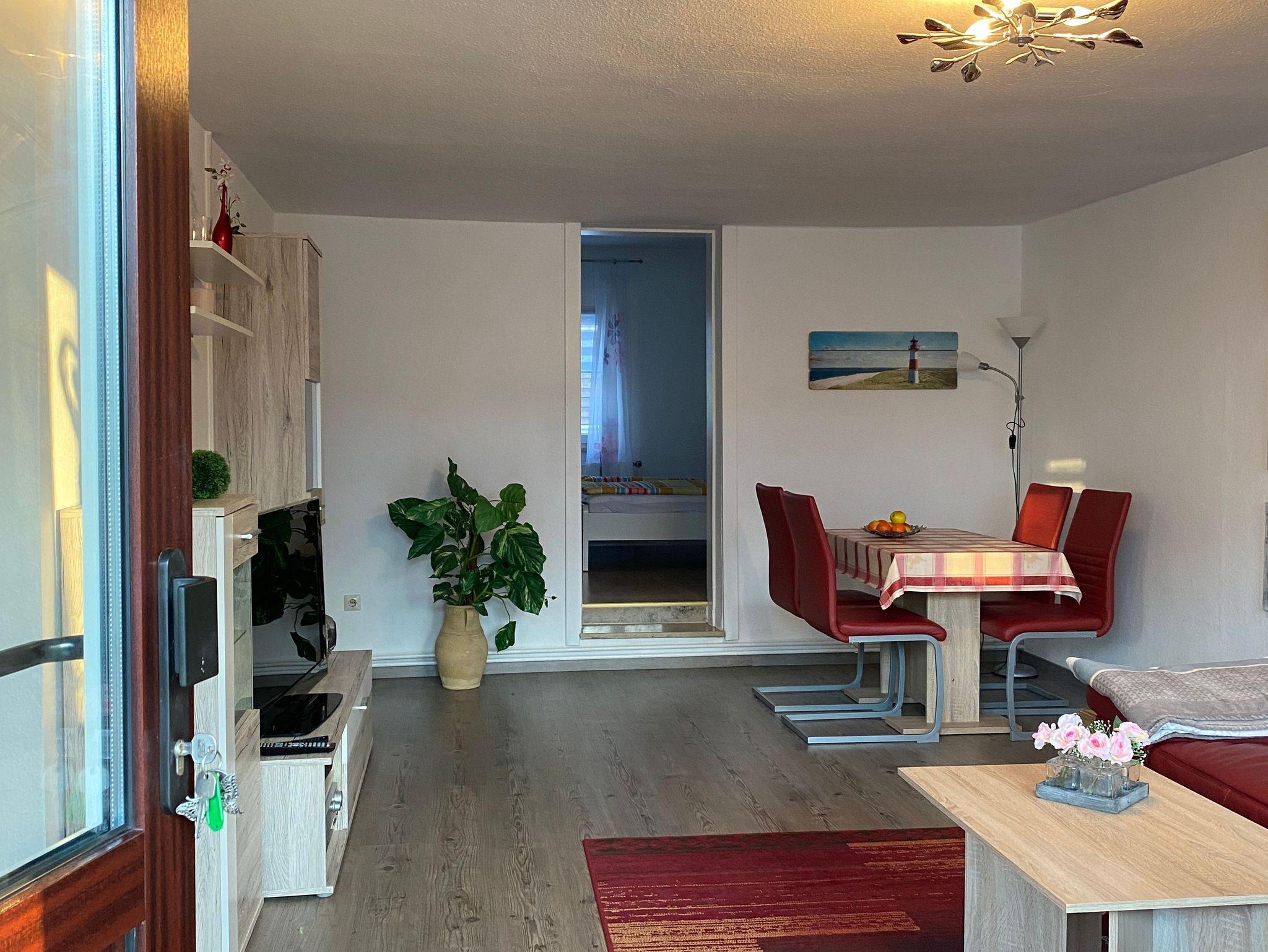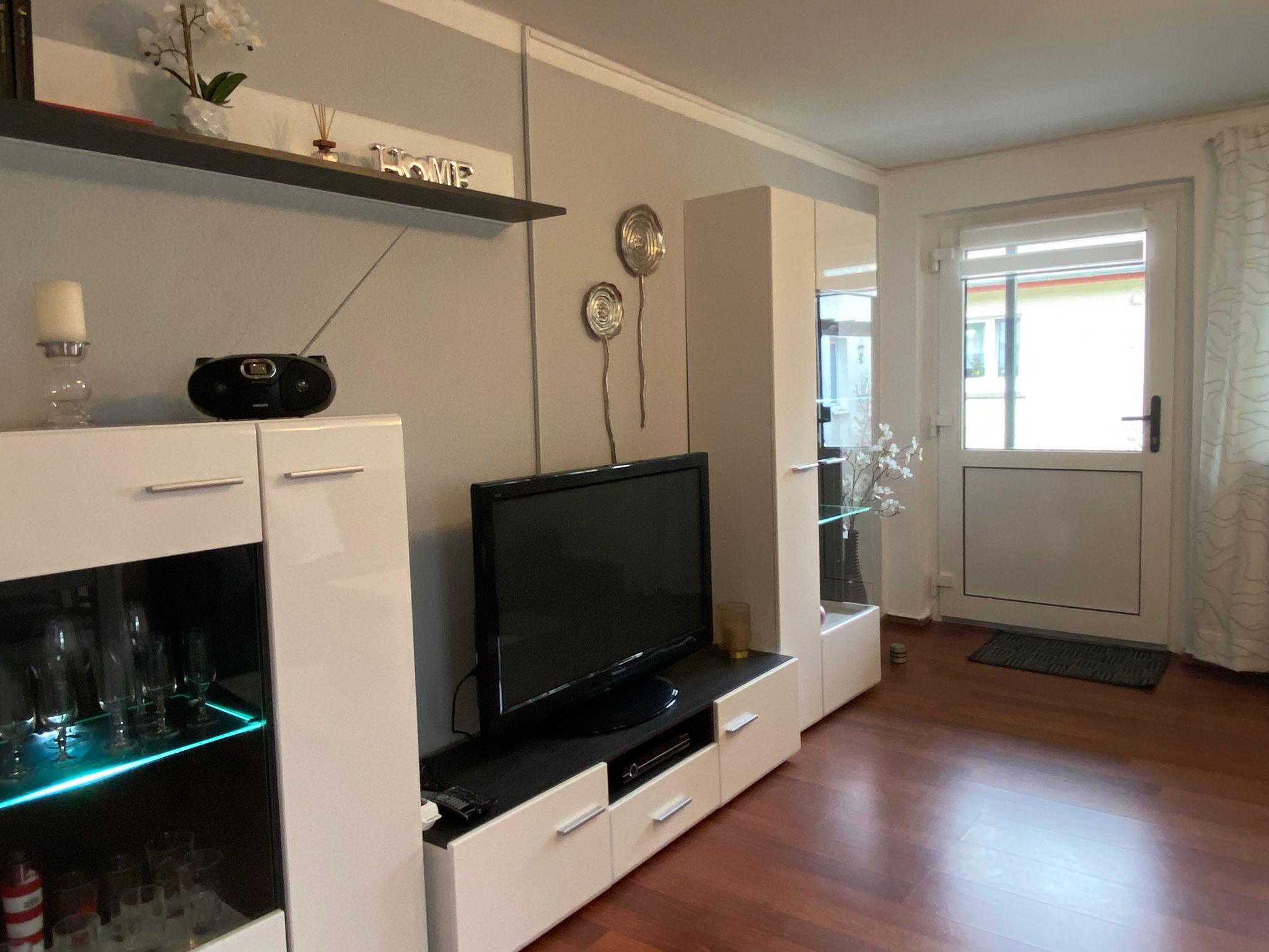 Wohn-/ Eingangsbereich: Wohnschlafraum (Schlafcouch), Esstisch, TV, Radio, WLAN