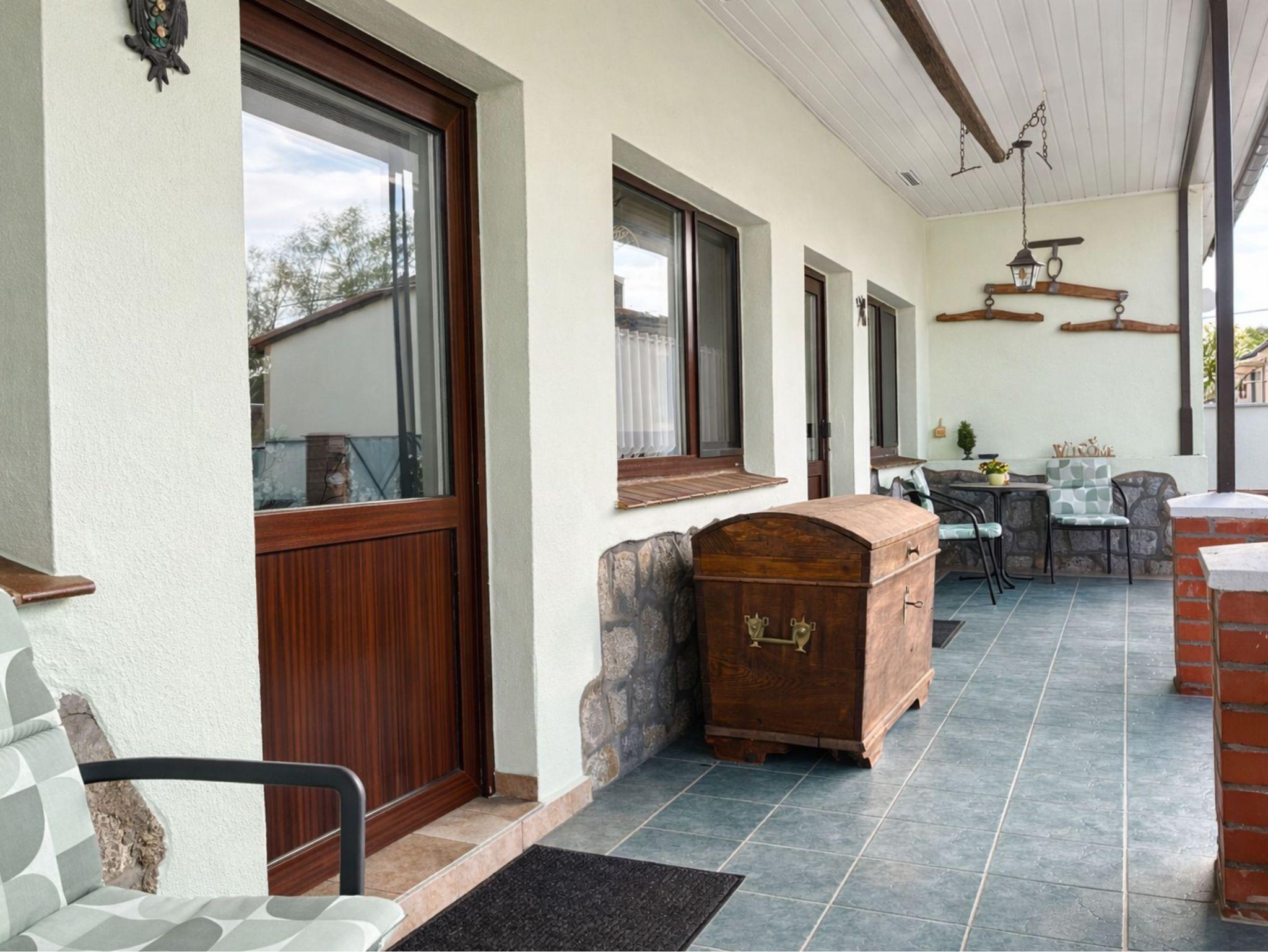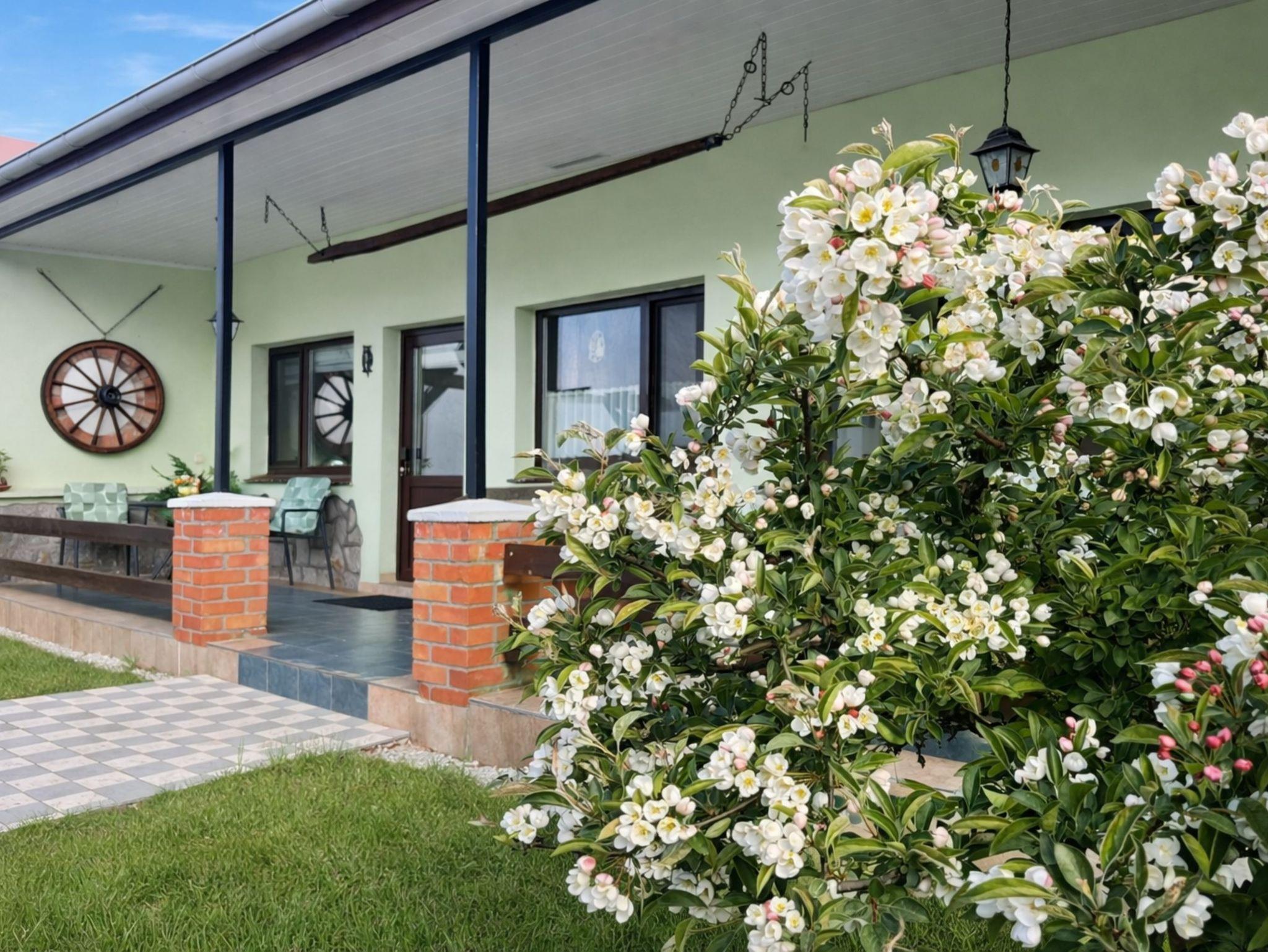Am Haus: Überdachte Sonnenterrassen mit Sitzmöbeln, sichtgeschützte Grillecke mit Gartenhäuschen und Wäscheplatz, Parkplatz, Fahrradunterstellmöglichkeit.