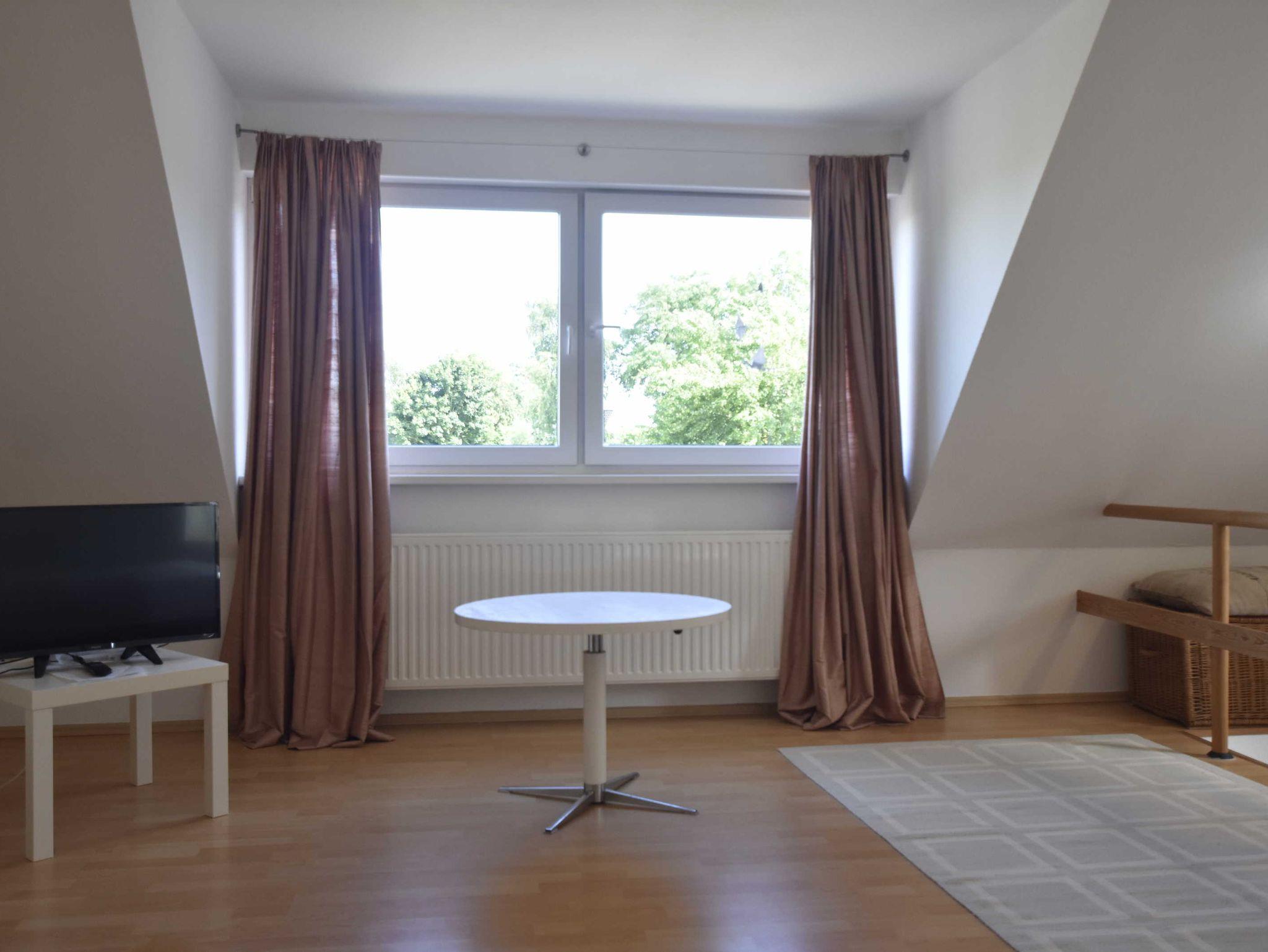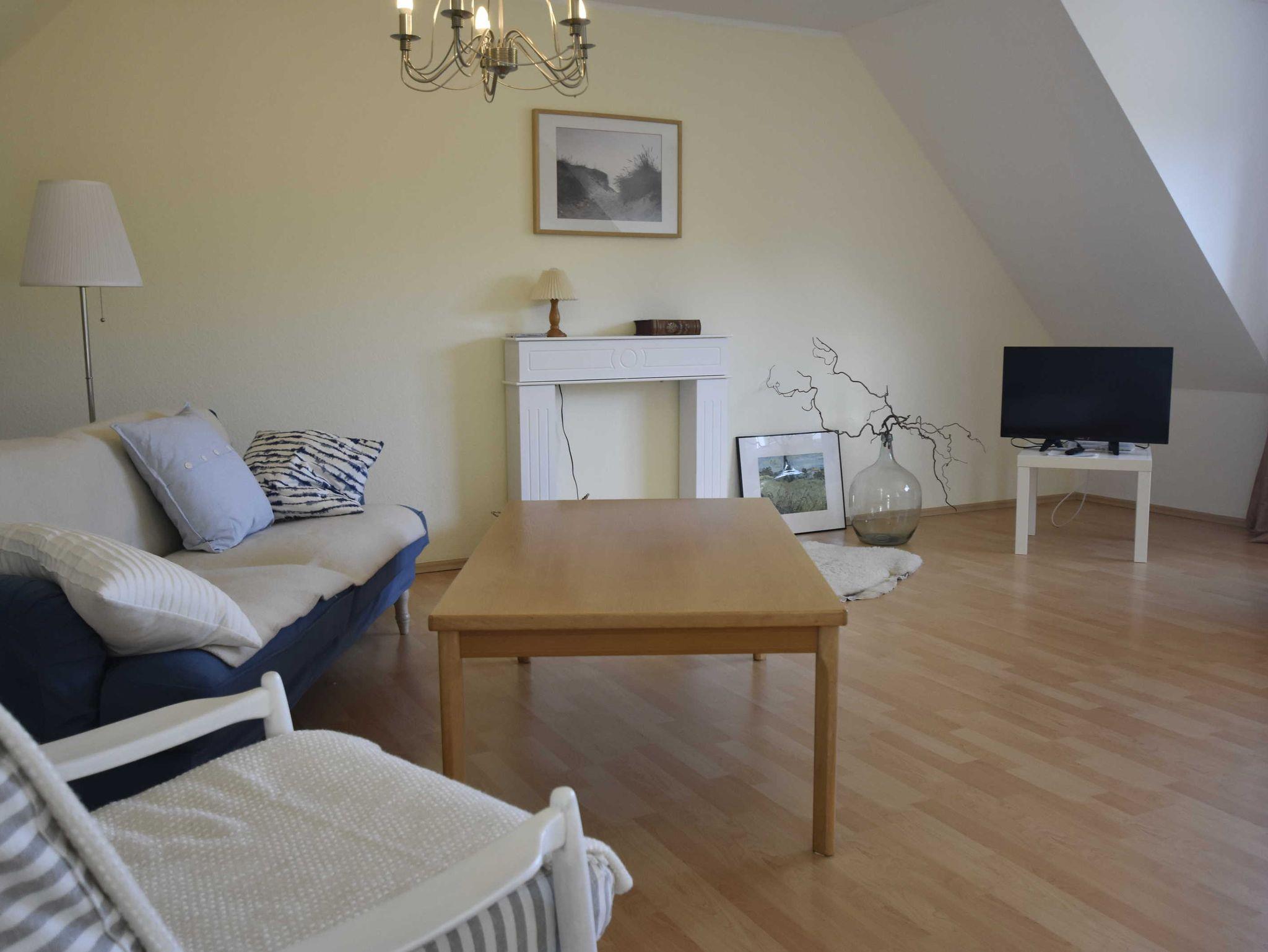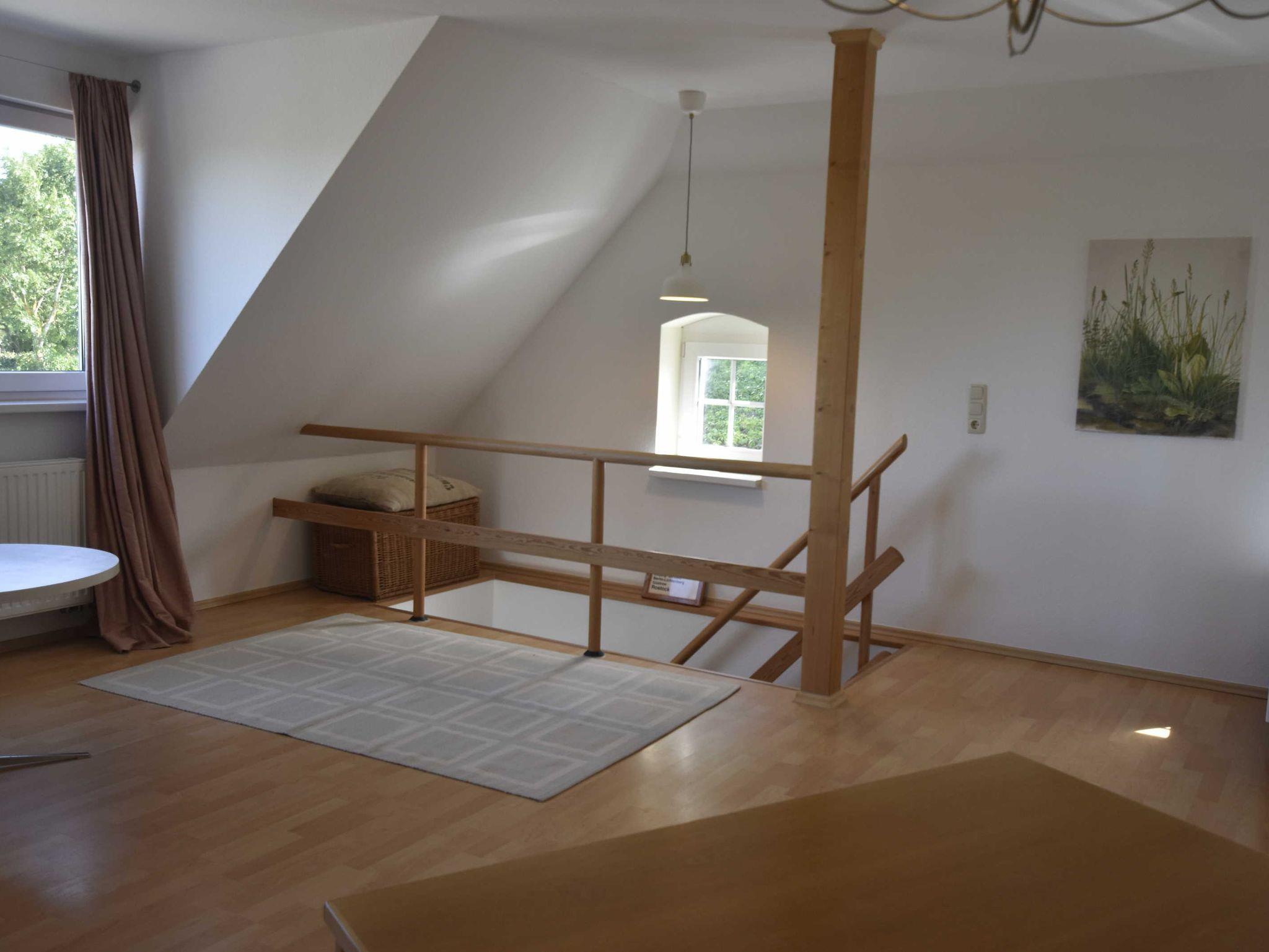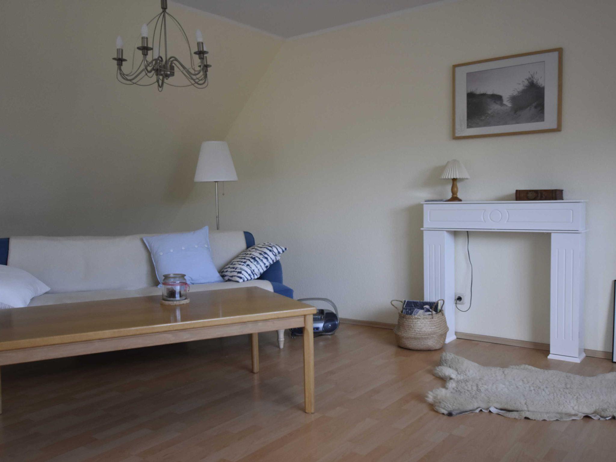 Im Obergeschoss der Ferienwohnung befindet sich ein großes helles Wohnzimmer.
