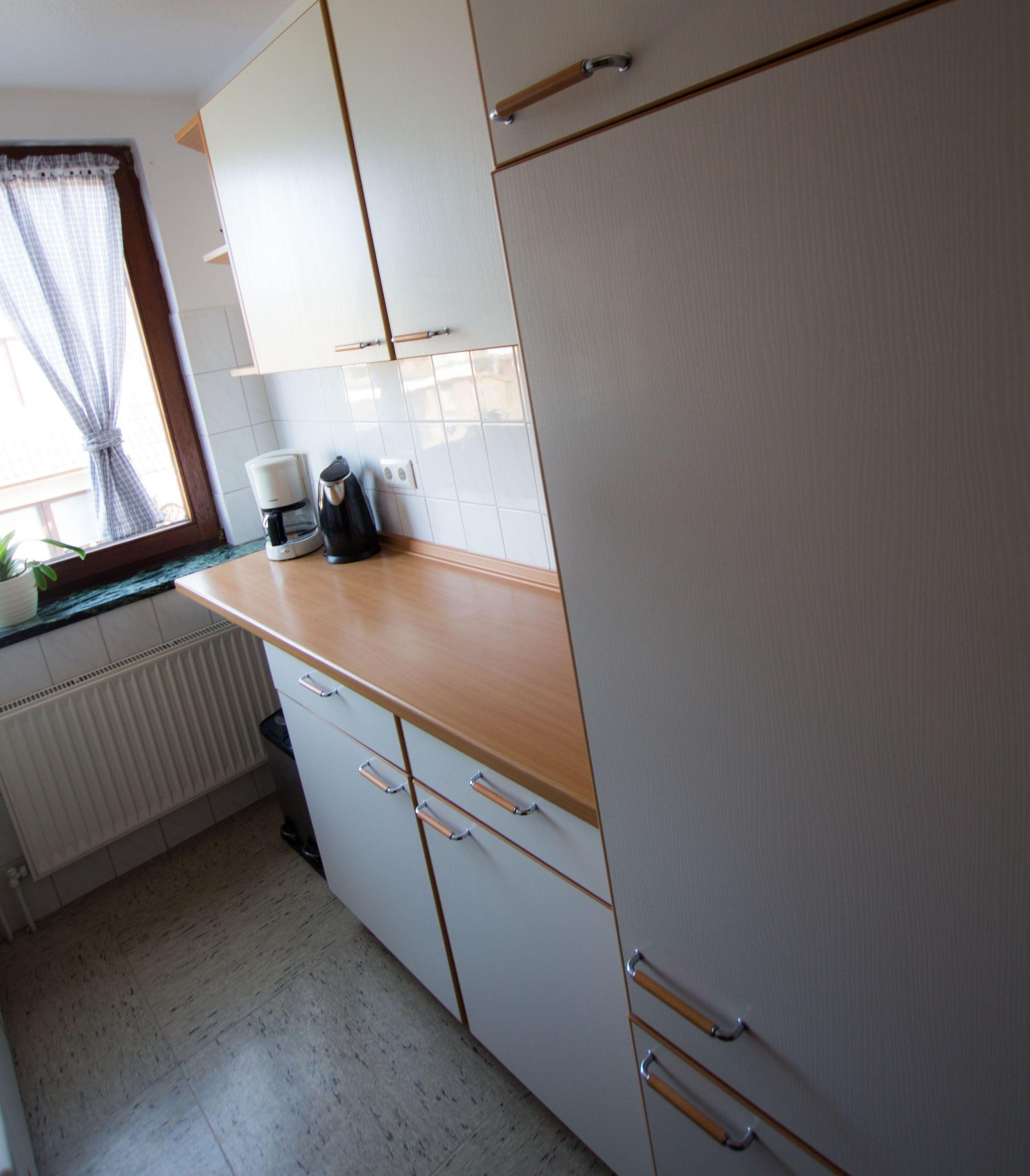 Küche mit voller Ausstattung incl. Mikrowelle und Backofen, Hochstuhl optional zustellbar.