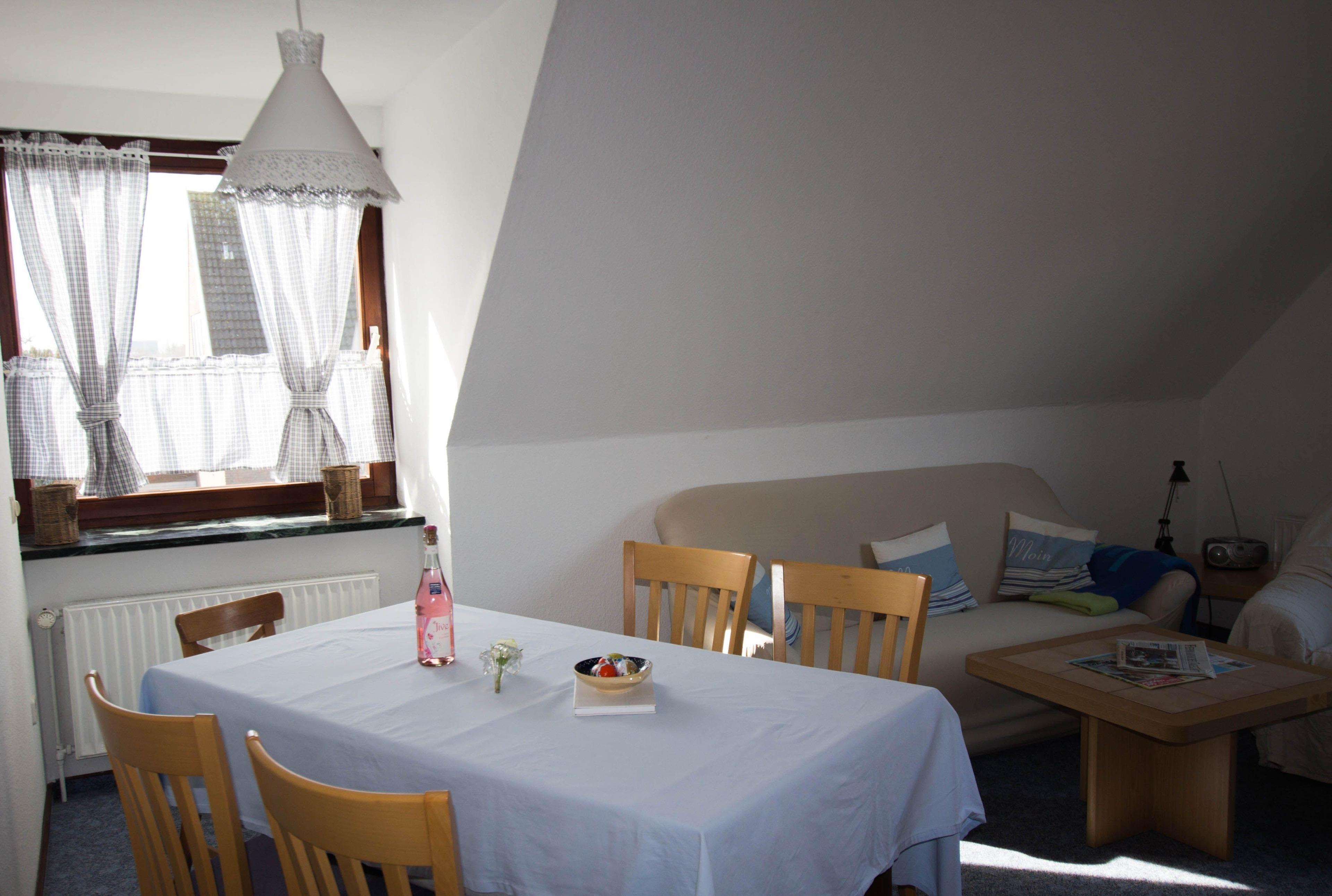 Geräumiges Wohn-Ess-Zimmer incl. Wohnlandschaft mit vier Sitzplätzen, Sat-TV und DVD-Player sowie separater Essbereich mit Esstisch für vier Personen (erweiterbar!).
