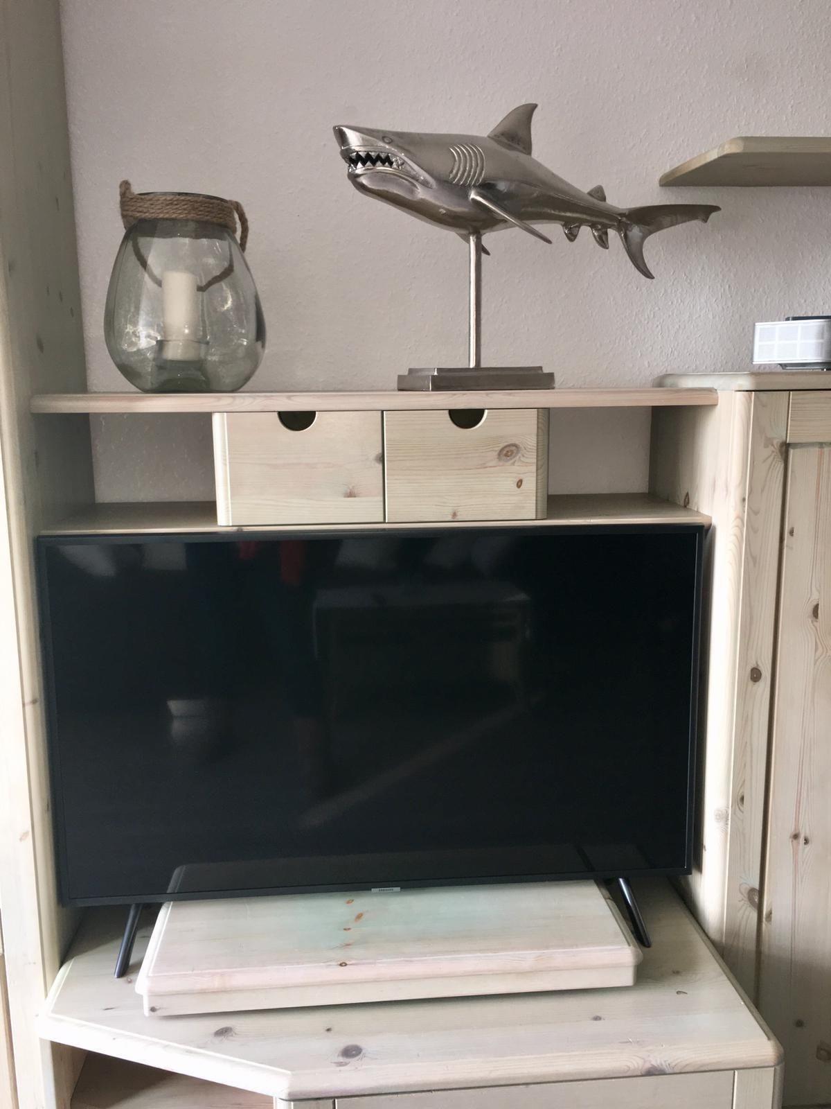 Die ansehnliche Ferienwohnung sorgt für einen angenehmen Aufenthalt. Der Wohnbereich bietet einige bequeme Sitzmöglichkeiten, egal ob Sie sich Zeit nehmen für ein schönes Buch oder einfach vor dem Fernseher abschalten wollen.