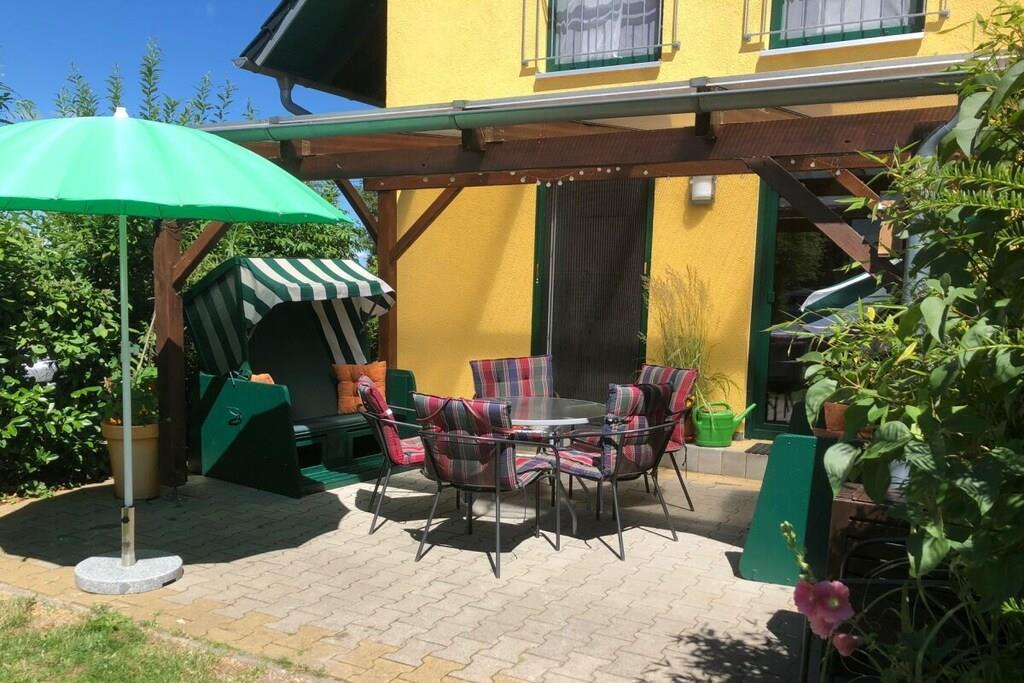 Gemütlich und hochwertig ausgestattete Doppelhaushälfte direkt am Saaler Bodden. Wir bieten Ihnen die Möglichkeit unser Ruderboot für 50EURO / Woche anzumieten. In unserem Obergeschoss finden Sie Schlafmöglichkeiten für bis zu sechs Personen. Zwei der Schlafzimmer sind jeweils mit einem Doppelbett sowie mit einem Fernseher ausgestattet . Das dritte Schlafzimmer verfügt über einen Alkoven (Schlafboden). In unserer Außenanlage finden Sie eine überdachte Terrasse mit diversen Sitzmöglichkeiten, Sonnenliegen, Strandkörben und einem Grill sowie die Nutzung von unseren Fahrrädern. Zwei PKW Stellplätze Entschleunigung für Naturliebhaber und Radwanderer, zahlreiche Aktivitäten für Wassersportler. Betriebskosten werden nach Verbrauch abgerechnet.