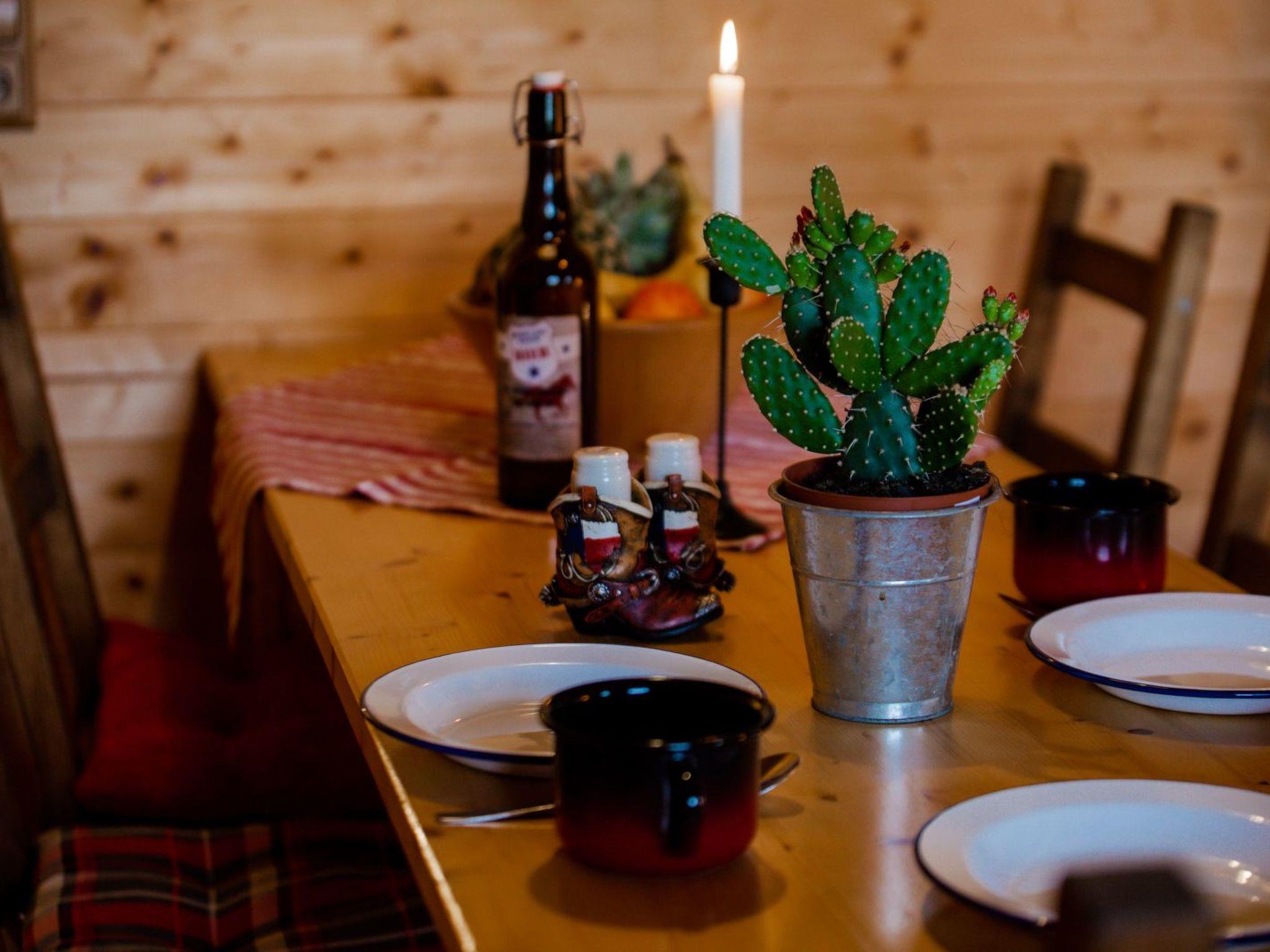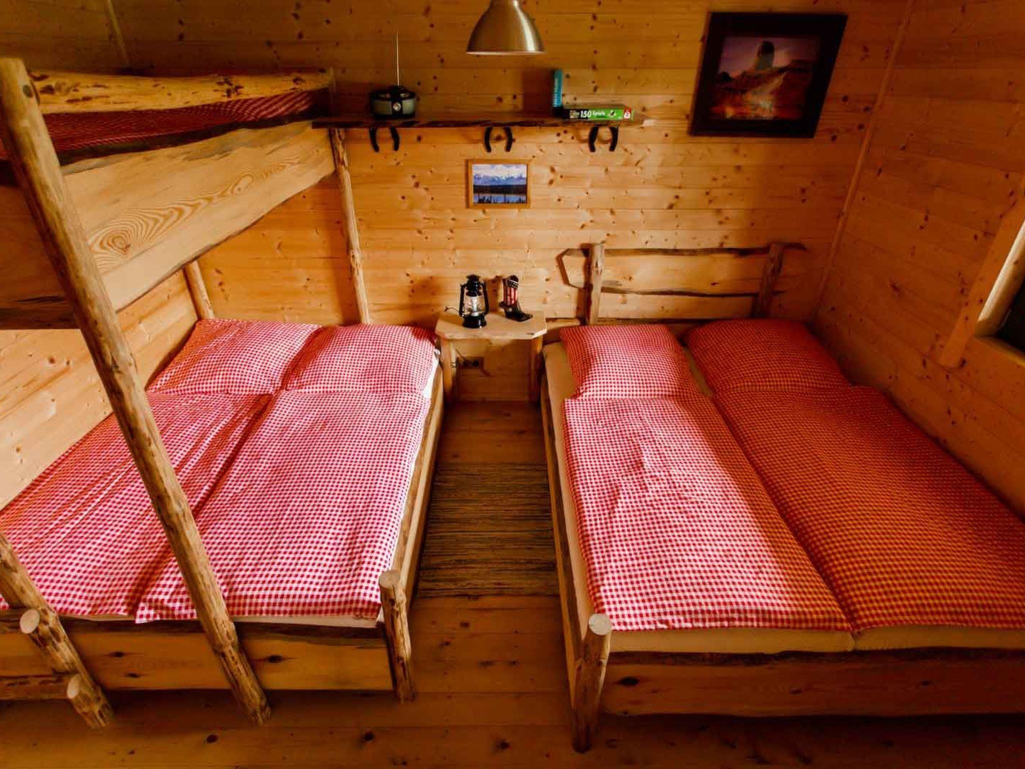 Die Unterkunft kann bis zu 7 Personen beherbergen und sie verfügt über einen Wohnraum mit offener Küche/Aufenthaltsbereich mit zusätzlichem Stockbett für 2 Personen, einem Schlafzimmer für 5 Personen, ein Dusch-Bad und eine schöne überdachte Terrasse. Die offene Küche ist ausgestattet mit Kühlschrank mit Gefrierfach, Filter-Kaffeemaschine, Toaster, Wasserkocher, 2-Platten-Cerankochfeld, Spülbecken sowie Eß- u. Kochgeschirr. Direkt neben der kleinen Küche können Sie im Eßbereich mit 7 Stühlen am Eßtisch Platz nehmen.