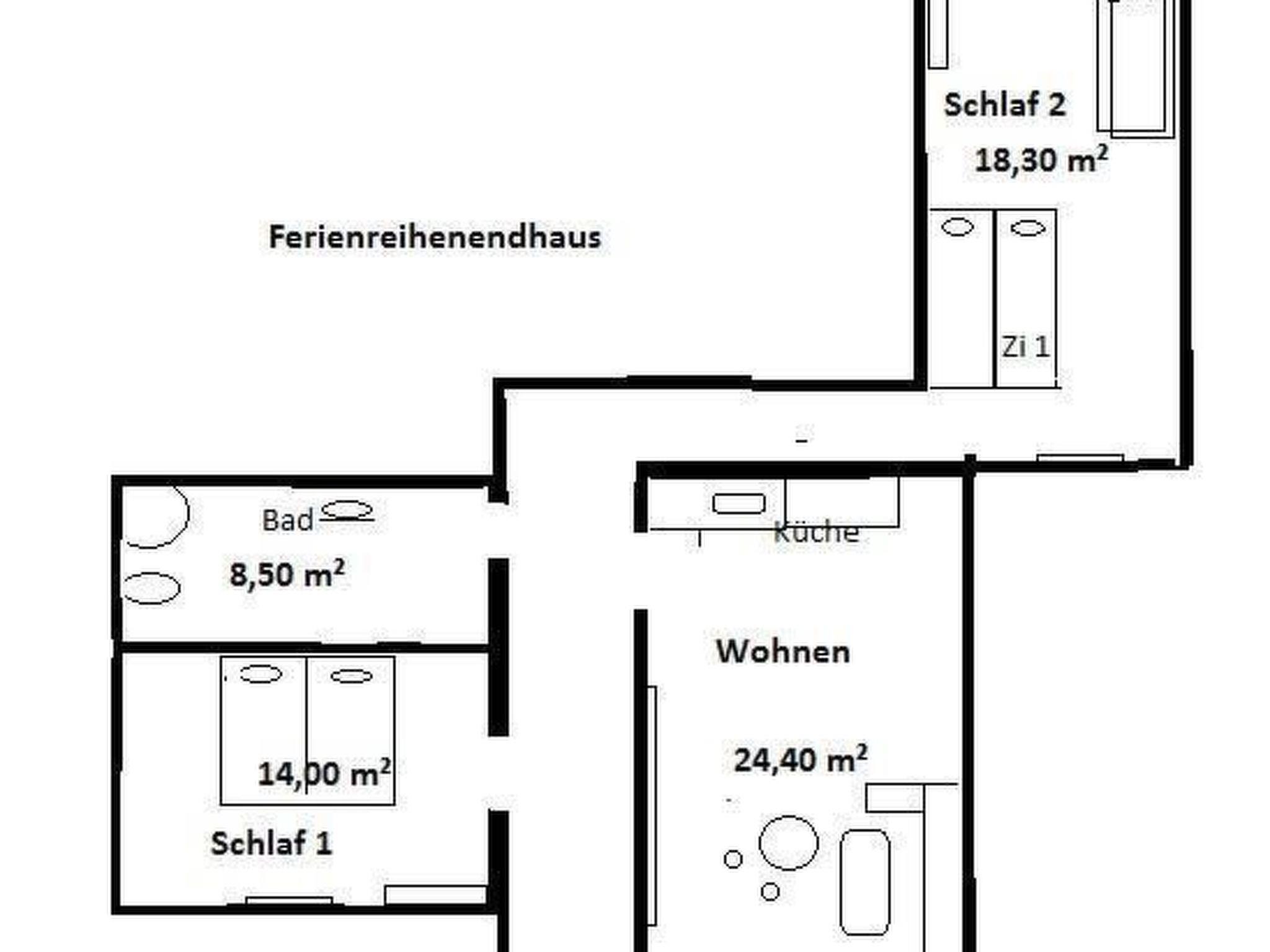 Es ist ca. 85 m² groß und für bis zu 6 Personen zuzüglich Babyreisebett geeignet. Ferienhaus wurde im Jahr 2011 neu umgebaut und 2024 renoviert. Es ist geschmackvoll eingerichtet! Das Haus verfügt über ein Wohnzimmer, zwei Schlafzimmer, Küche und Badezimmer mit Dusche. Alle Zimmer sind auf einer Ebene angeordnet. Das Haus ist modern eingerichtet. Der Wohn-/Essbereich mit Zugang auf die Terrasse ist mit SAT-TV, DVD-Player, Stereoanlage und Internetanschluss ausgestattet. Ein Kinderstuhl steht ebenfalls zur Verfügung. Die moderne Küche ist mit Kühlschrank (mit Gefrierfach), Herd und Backofen, Mikrowelle, Spülmaschine etc. ausgestattet und ist zum Wohn-/Essbereich offen.