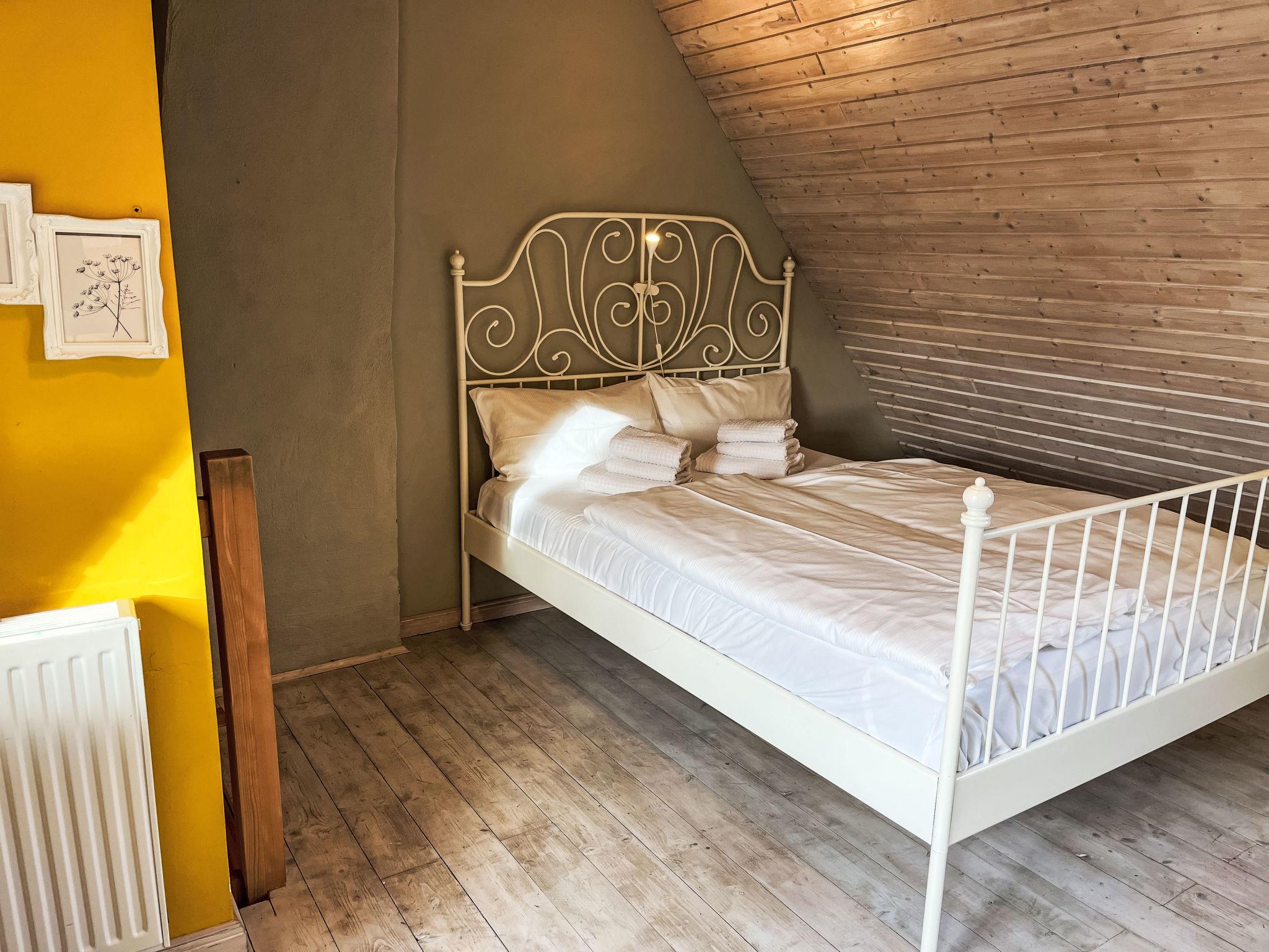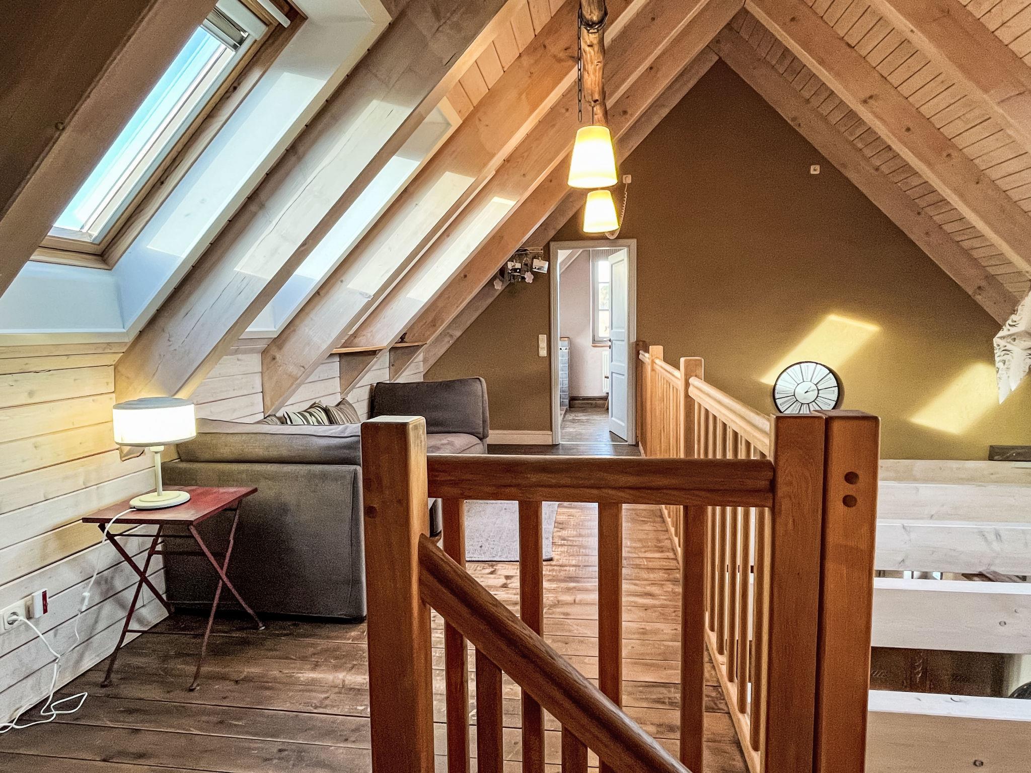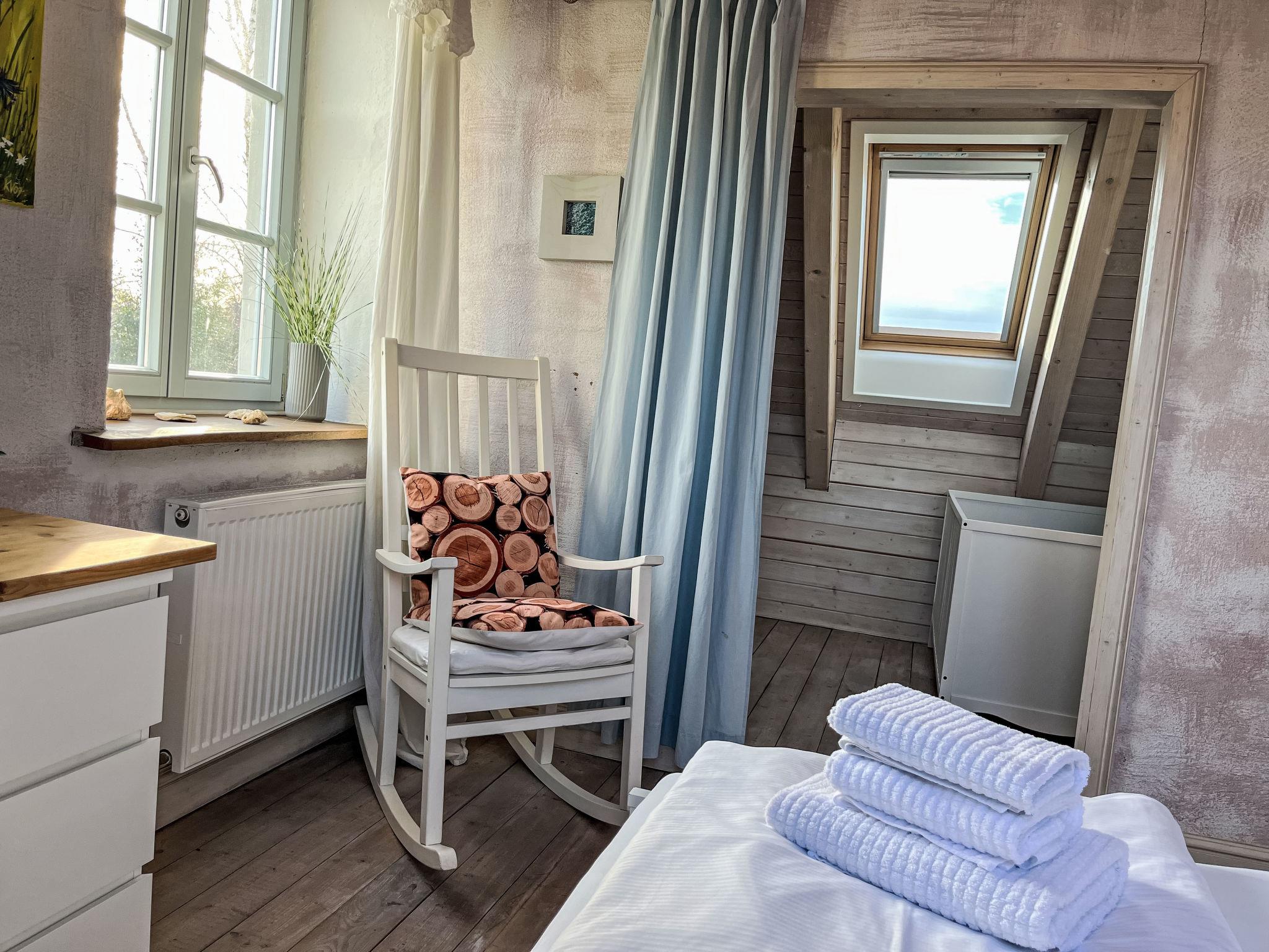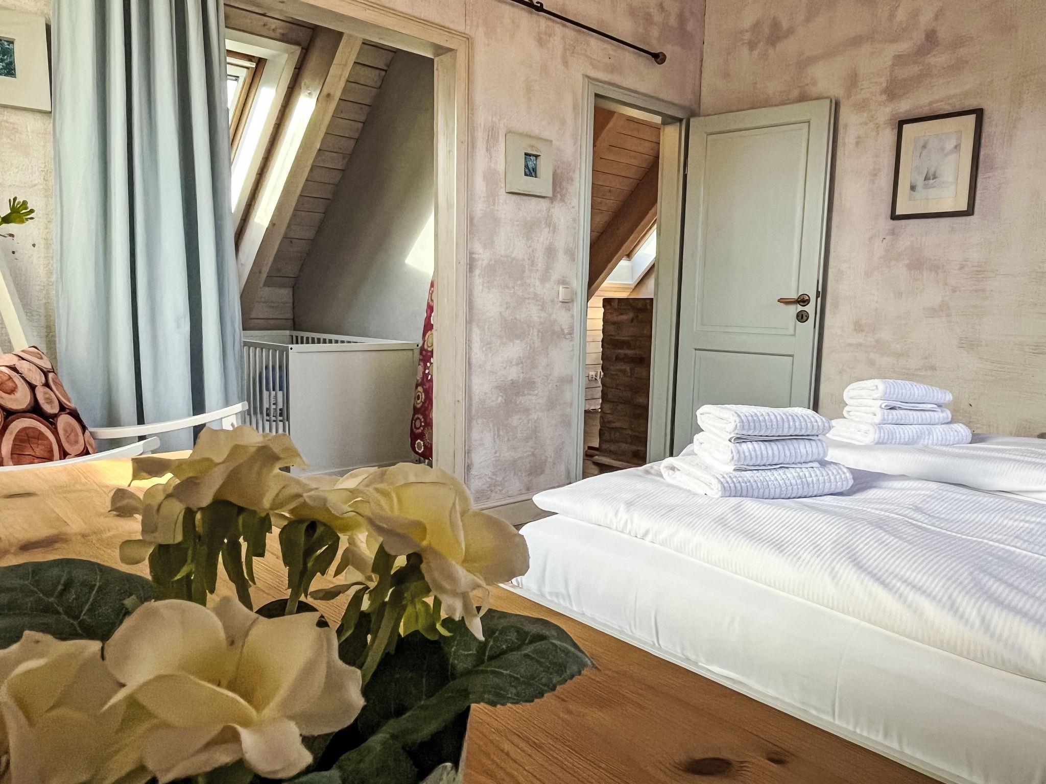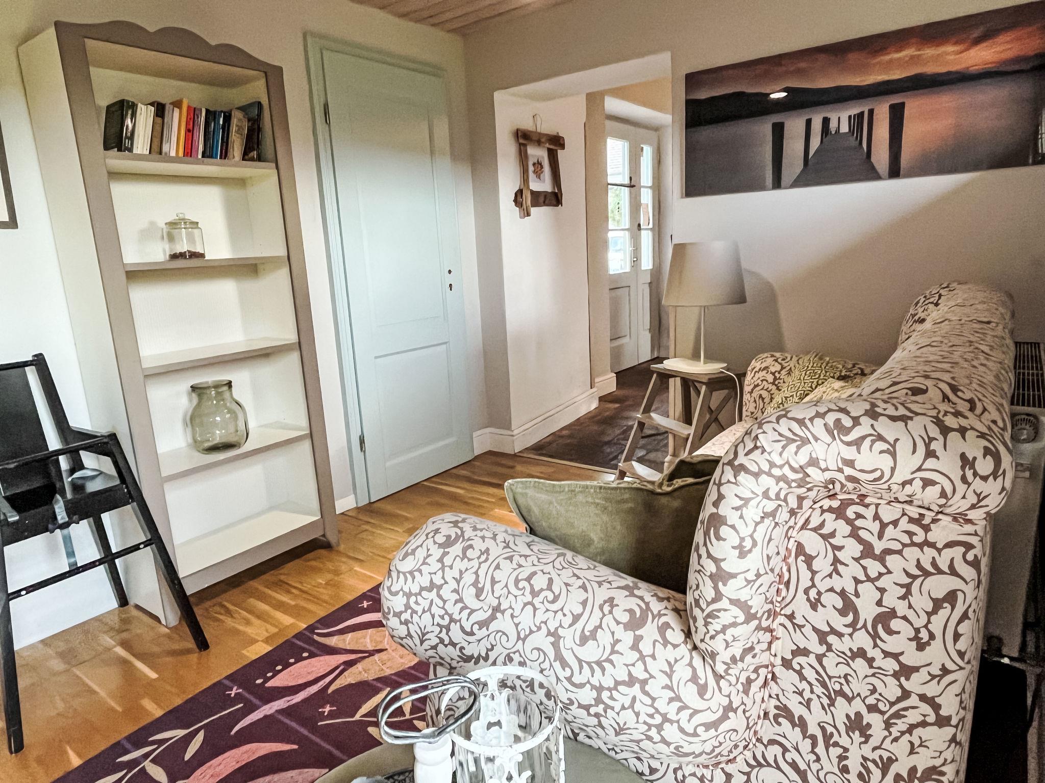 "Ferienscheune", 5-Zimmer-Landhaus 160 m2 auf 2 Stockwerken. Objekt geeignet für 8 Erwachsene. Komfortabel und gemütlich eingerichtet: Wohn-/Esszimmer mit Schwedenofen, Esstisch und Kabel-TV (Flachbildschirm), Radio und CD. Ausgang zum Garten, zur Terrasse. 1 Zimmer mit 1 Doppelbett (160 cm, Länge 200 cm). 1 Zimmer mit 2 Betten (90 cm, Länge 200 cm). Offene Küche (Backofen, Geschirrspüler, 4 Glaskeramikplatten, Toaster, Wasserkocher, elektrische Kaffeemaschine). Dusche/WC. Obergeschoss: 1 Zimmer mit 1 Doppeldiwanbett (160 cm, Länge 200 cm). 1 Zimmer mit 1 Doppelbett (160 cm, Länge 200 cm). Bad/Dusche/WC. Komfortable Einrichtung im Landhausstil. Terrasse. Terrassenmöbel. Schöne Sicht auf den Garten. Zur Verfügung: Kinderhochstuhl, Babybett, Haartrockner. Internet (WLAN, gratis). Parkplatz (2 Autos). Bitte beachten: geeignet für Familien. Nichtraucher-Unterkunft. Maximal 1 Haustier/Hund erlaubt.