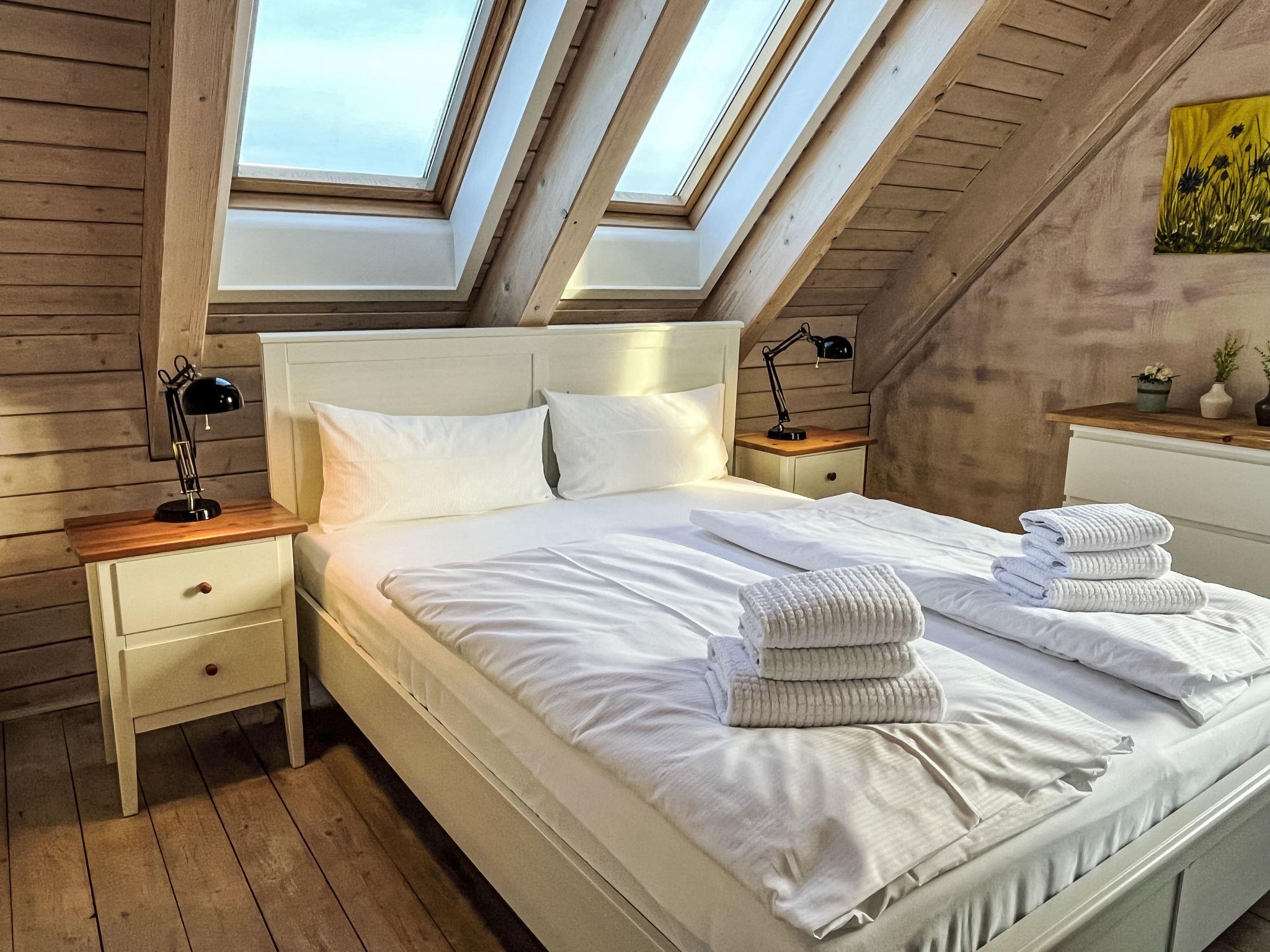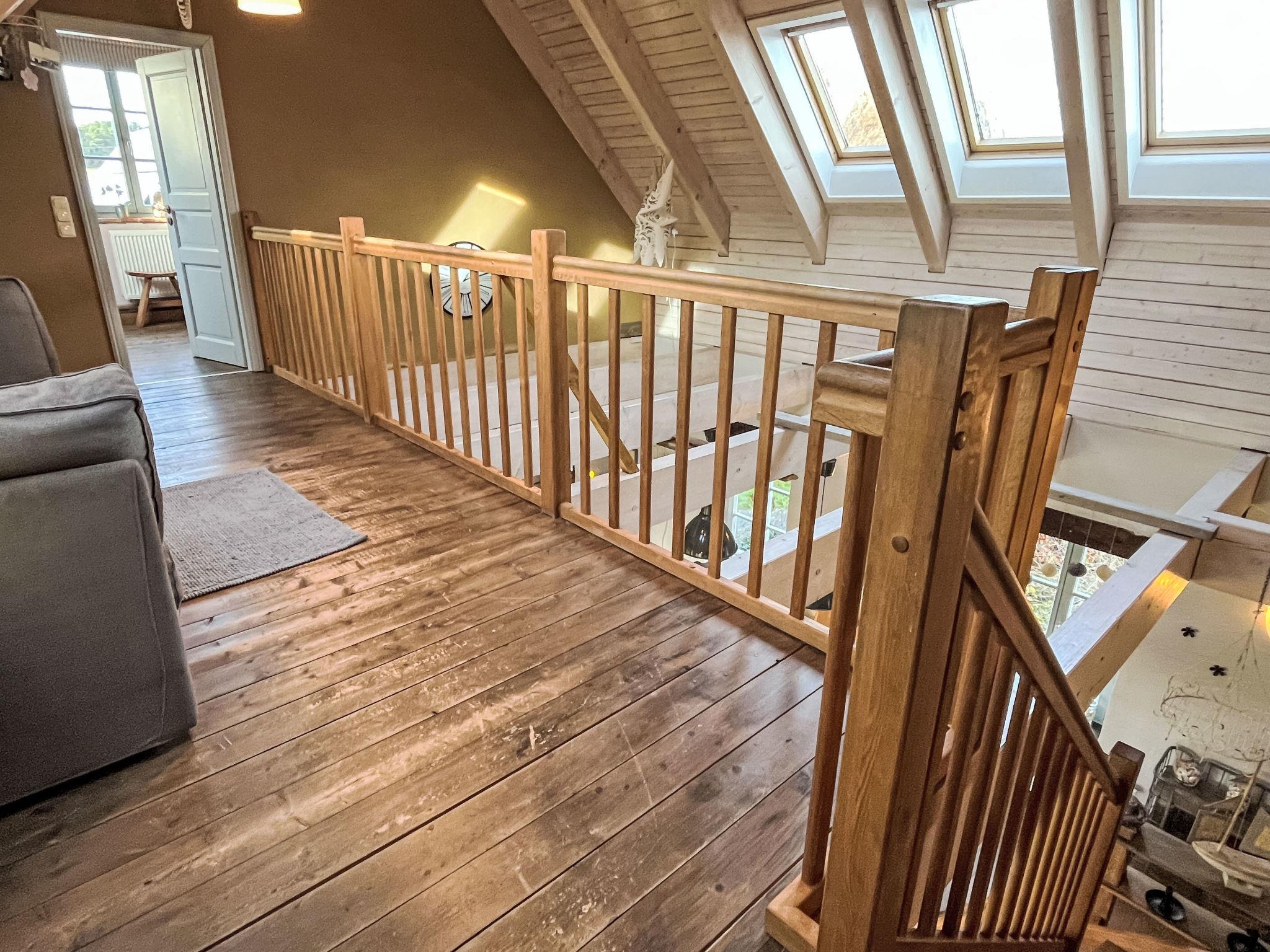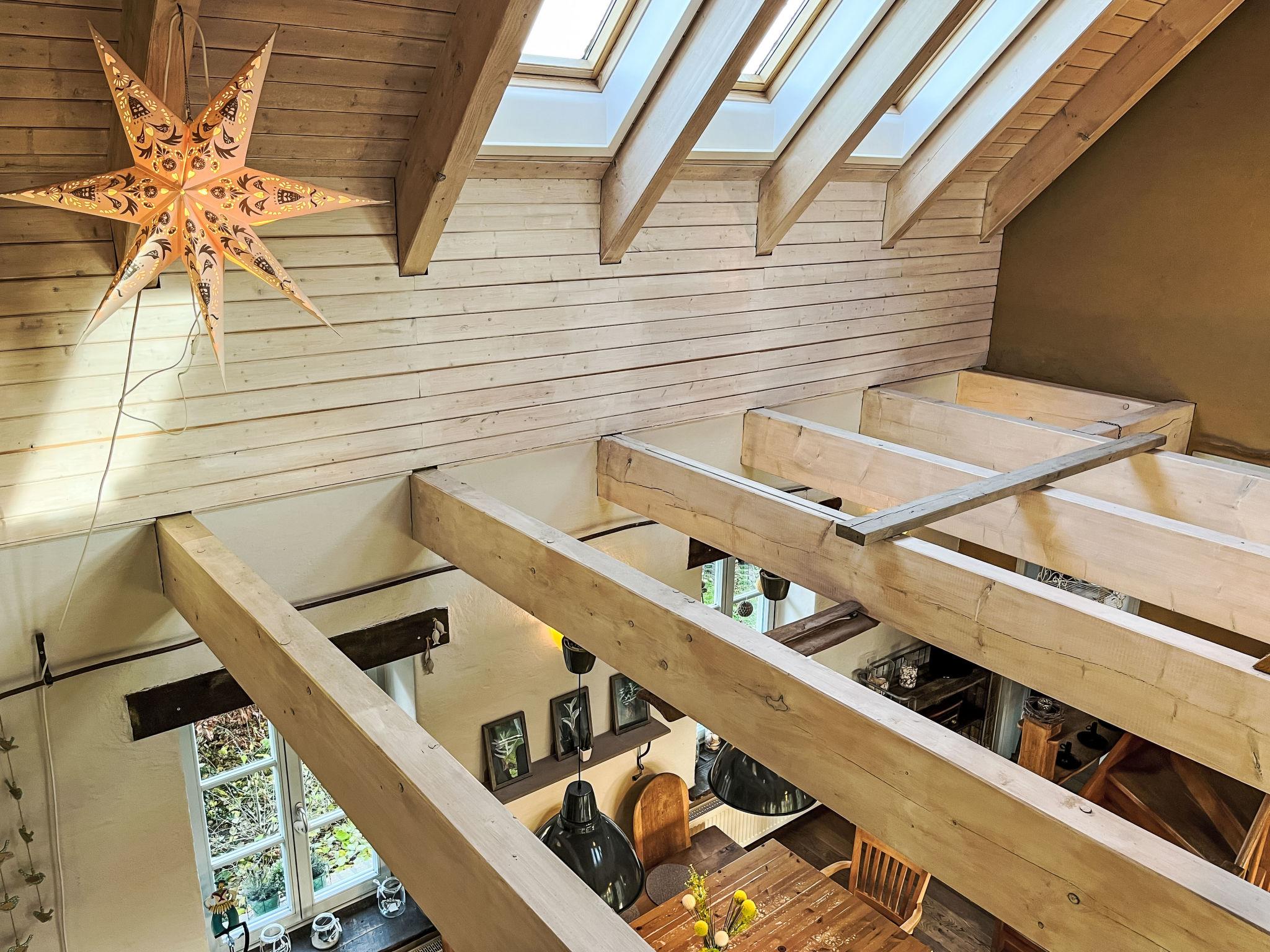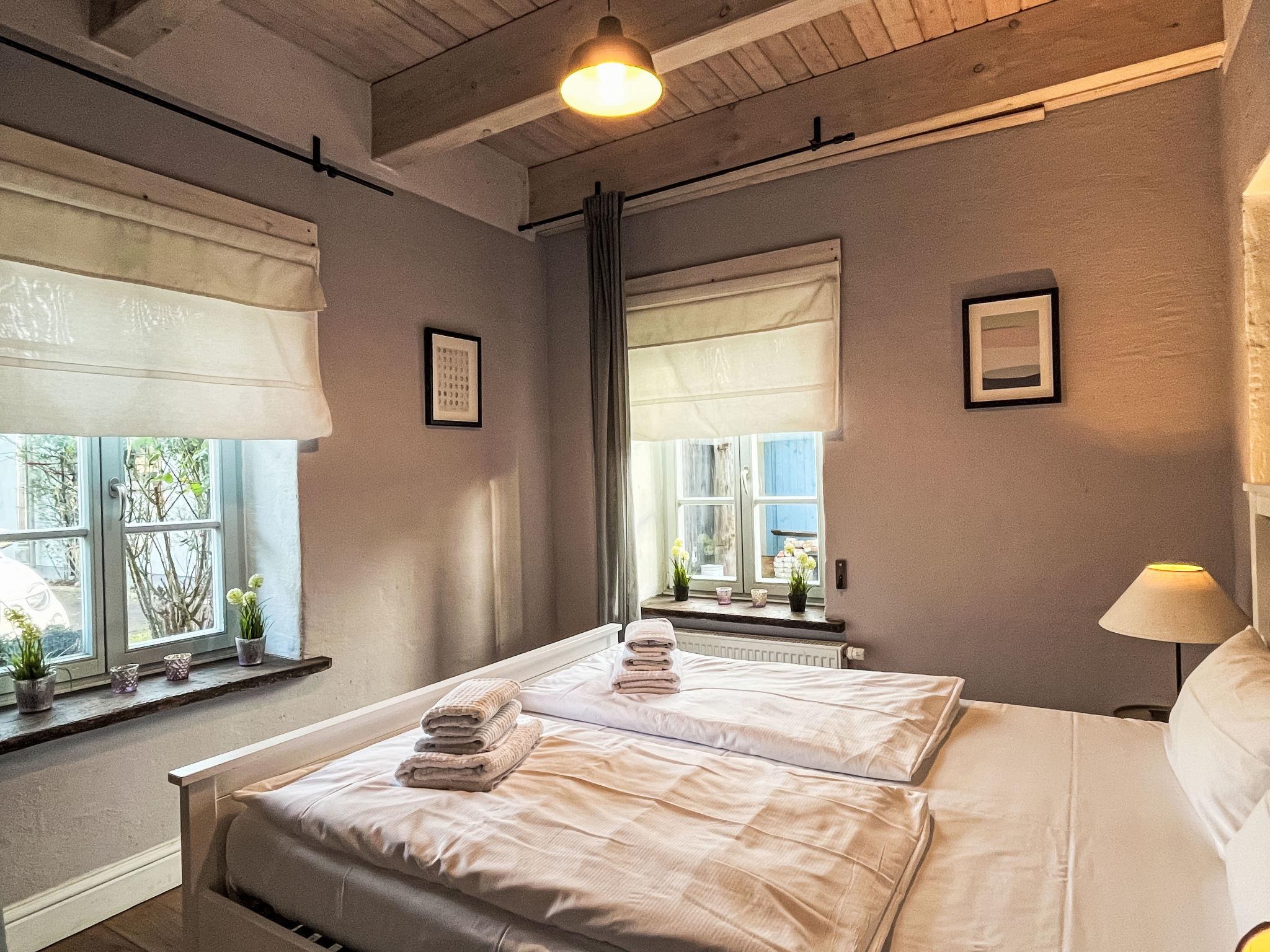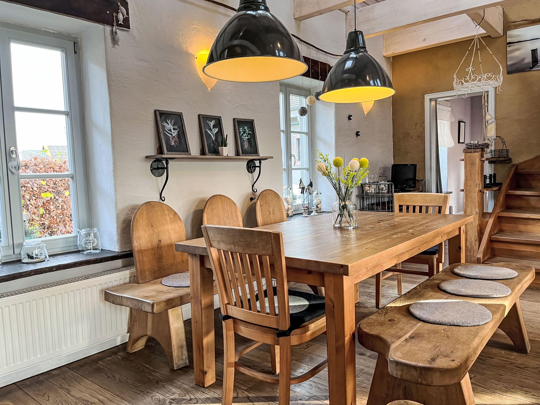 "Ferienscheune", 5-Zimmer-Landhaus 160 m2 auf 2 Stockwerken. Objekt geeignet für 8 Erwachsene. Komfortabel und gemütlich eingerichtet: Wohn-/Esszimmer mit Schwedenofen, Esstisch und Kabel-TV (Flachbildschirm), Radio und CD. Ausgang zum Garten, zur Terrasse. 1 Zimmer mit 1 Doppelbett (160 cm, Länge 200 cm). 1 Zimmer mit 2 Betten (90 cm, Länge 200 cm). Offene Küche (Backofen, Geschirrspüler, 4 Glaskeramikplatten, Toaster, Wasserkocher, elektrische Kaffeemaschine). Dusche/WC. Obergeschoss: 1 Zimmer mit 1 Doppeldiwanbett (160 cm, Länge 200 cm). 1 Zimmer mit 1 Doppelbett (160 cm, Länge 200 cm). Bad/Dusche/WC. Komfortable Einrichtung im Landhausstil. Terrasse. Terrassenmöbel. Schöne Sicht auf den Garten. Zur Verfügung: Kinderhochstuhl, Babybett, Haartrockner. Internet (WLAN, gratis). Parkplatz (2 Autos). Bitte beachten: geeignet für Familien. Nichtraucher-Unterkunft. Maximal 1 Haustier/Hund erlaubt.