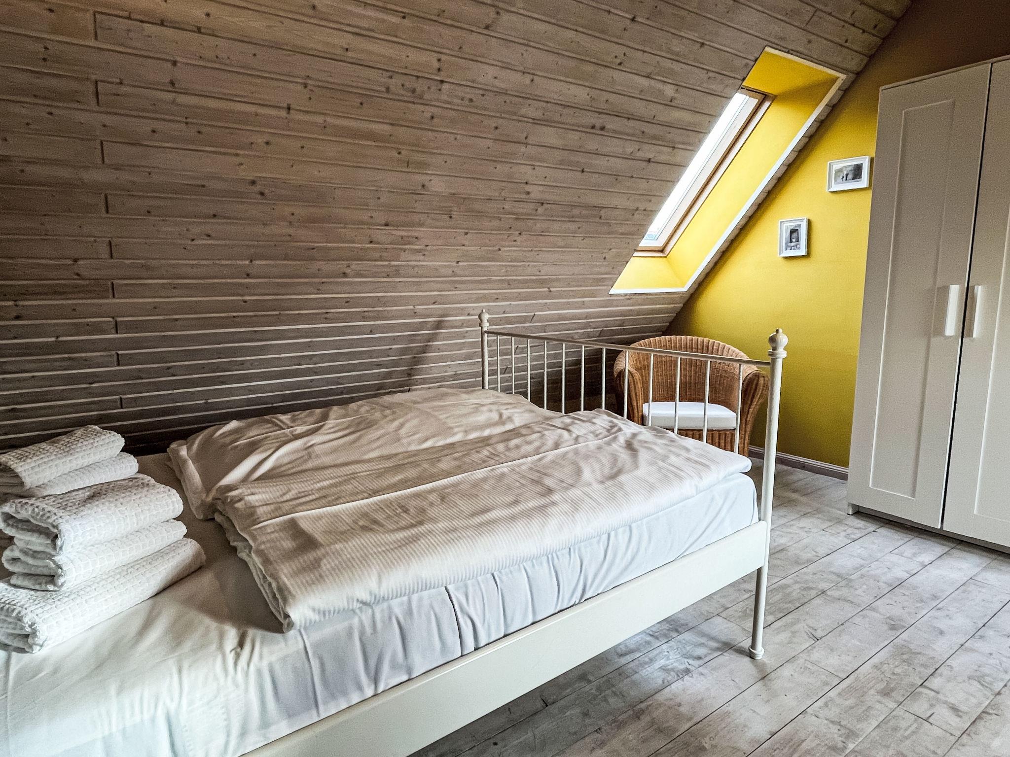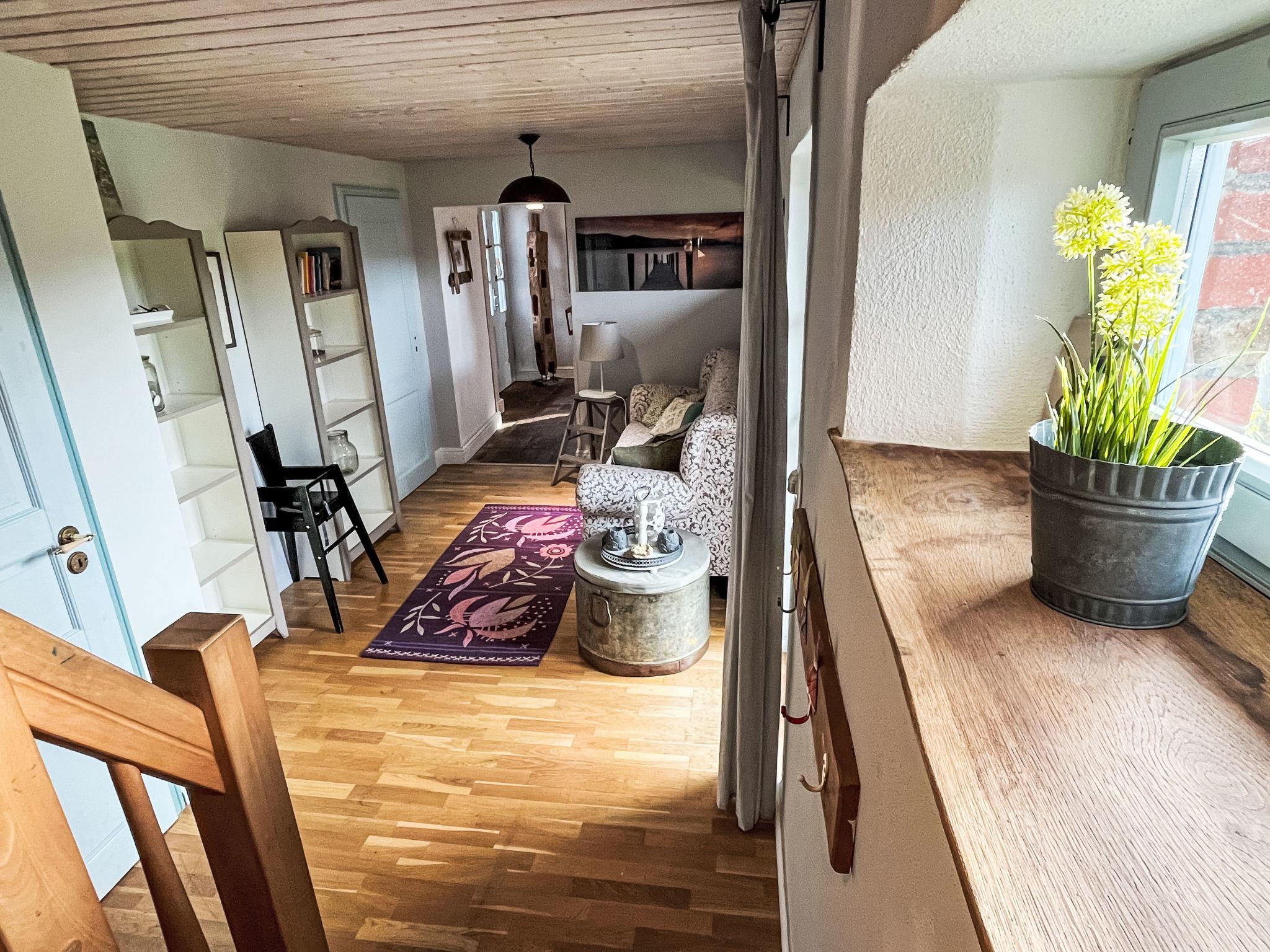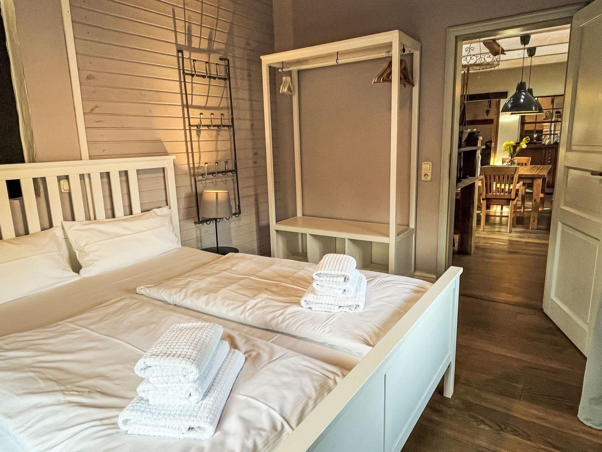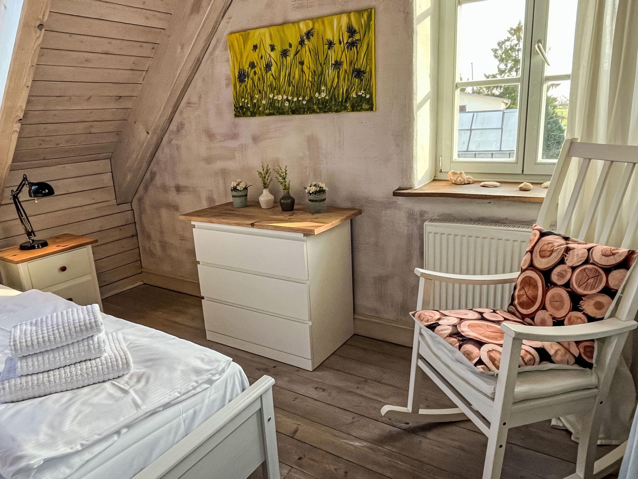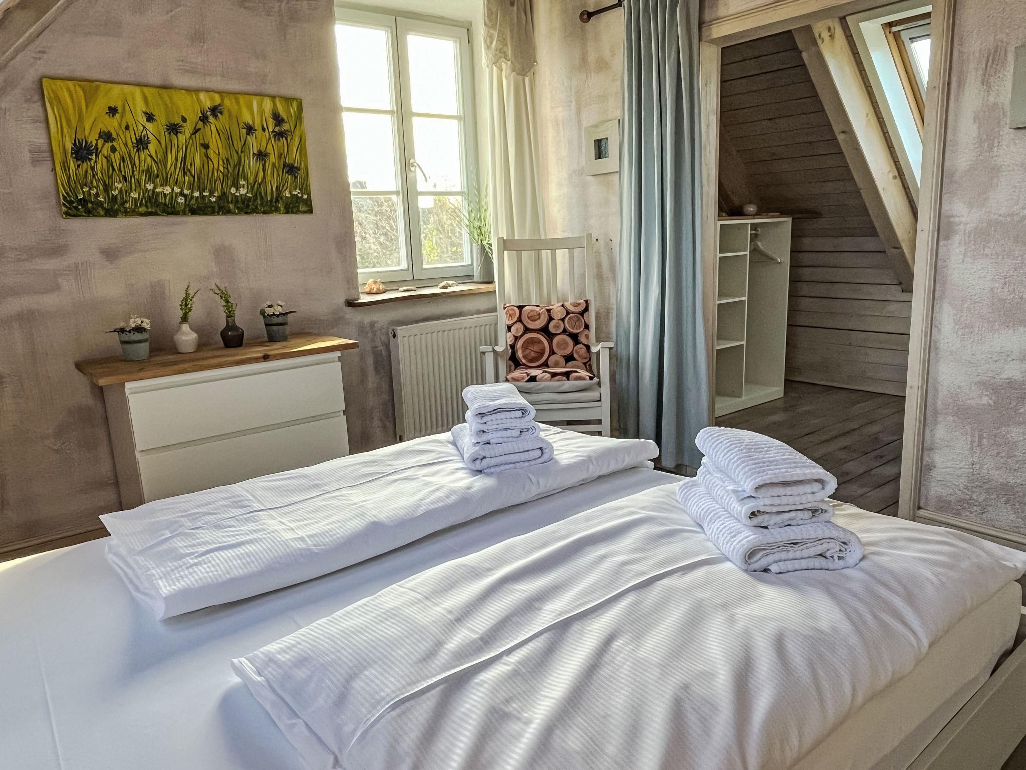 "Ferienscheune", 5-Zimmer-Landhaus 160 m2 auf 2 Stockwerken. Objekt geeignet für 8 Erwachsene. Komfortabel und gemütlich eingerichtet: Wohn-/Esszimmer mit Schwedenofen, Esstisch und Kabel-TV (Flachbildschirm), Radio und CD. Ausgang zum Garten, zur Terrasse. 1 Zimmer mit 1 Doppelbett (160 cm, Länge 200 cm). 1 Zimmer mit 2 Betten (90 cm, Länge 200 cm). Offene Küche (Backofen, Geschirrspüler, 4 Glaskeramikplatten, Toaster, Wasserkocher, elektrische Kaffeemaschine). Dusche/WC. Obergeschoss: 1 Zimmer mit 1 Doppeldiwanbett (160 cm, Länge 200 cm). 1 Zimmer mit 1 Doppelbett (160 cm, Länge 200 cm). Bad/Dusche/WC. Komfortable Einrichtung im Landhausstil. Terrasse. Terrassenmöbel. Schöne Sicht auf den Garten. Zur Verfügung: Kinderhochstuhl, Babybett, Haartrockner. Internet (WLAN, gratis). Parkplatz (2 Autos). Bitte beachten: geeignet für Familien. Nichtraucher-Unterkunft. Maximal 1 Haustier/Hund erlaubt.