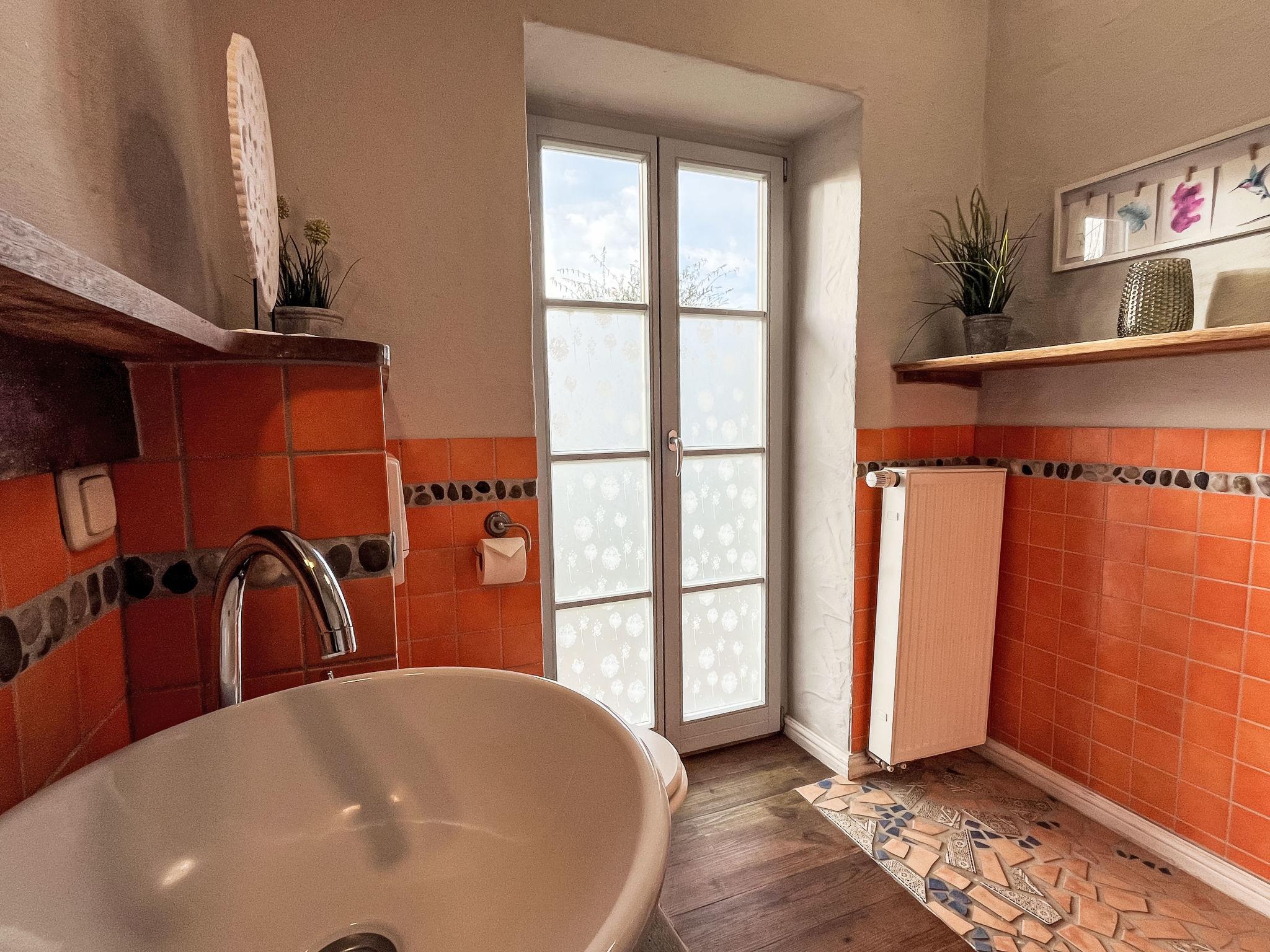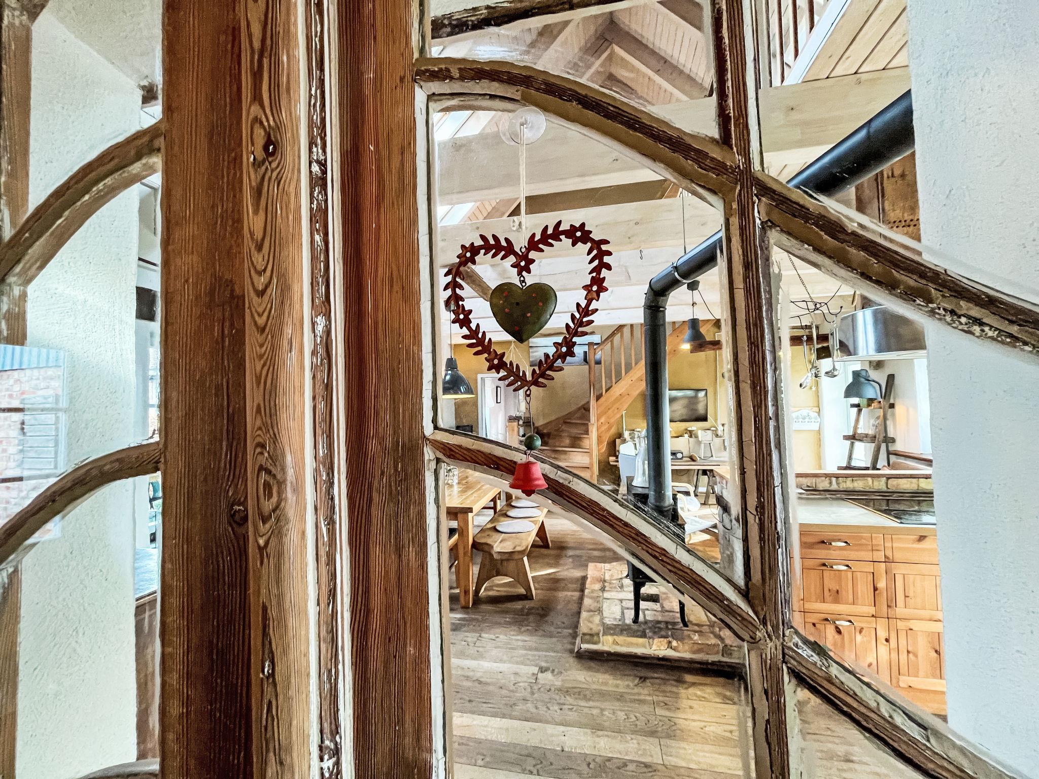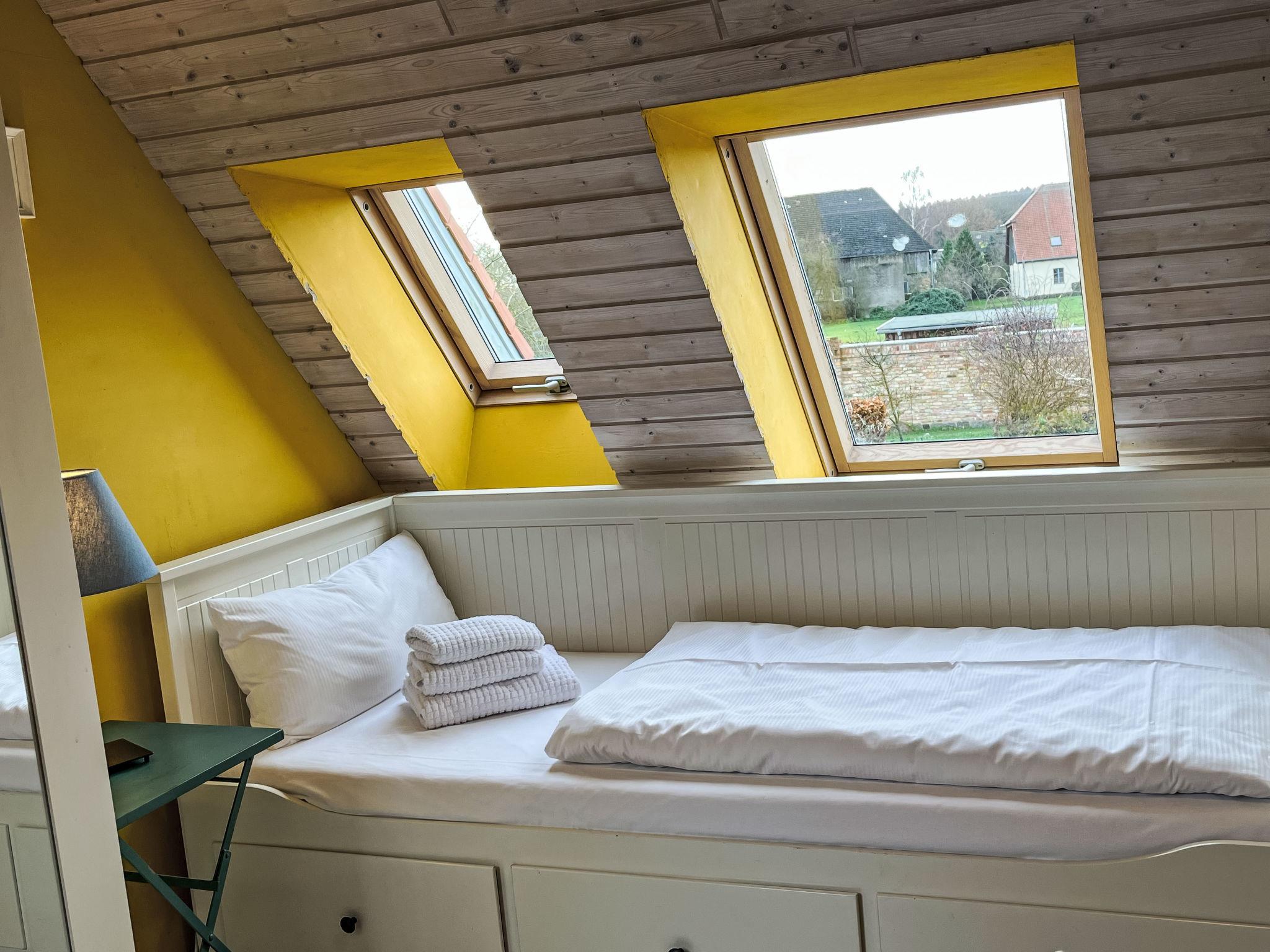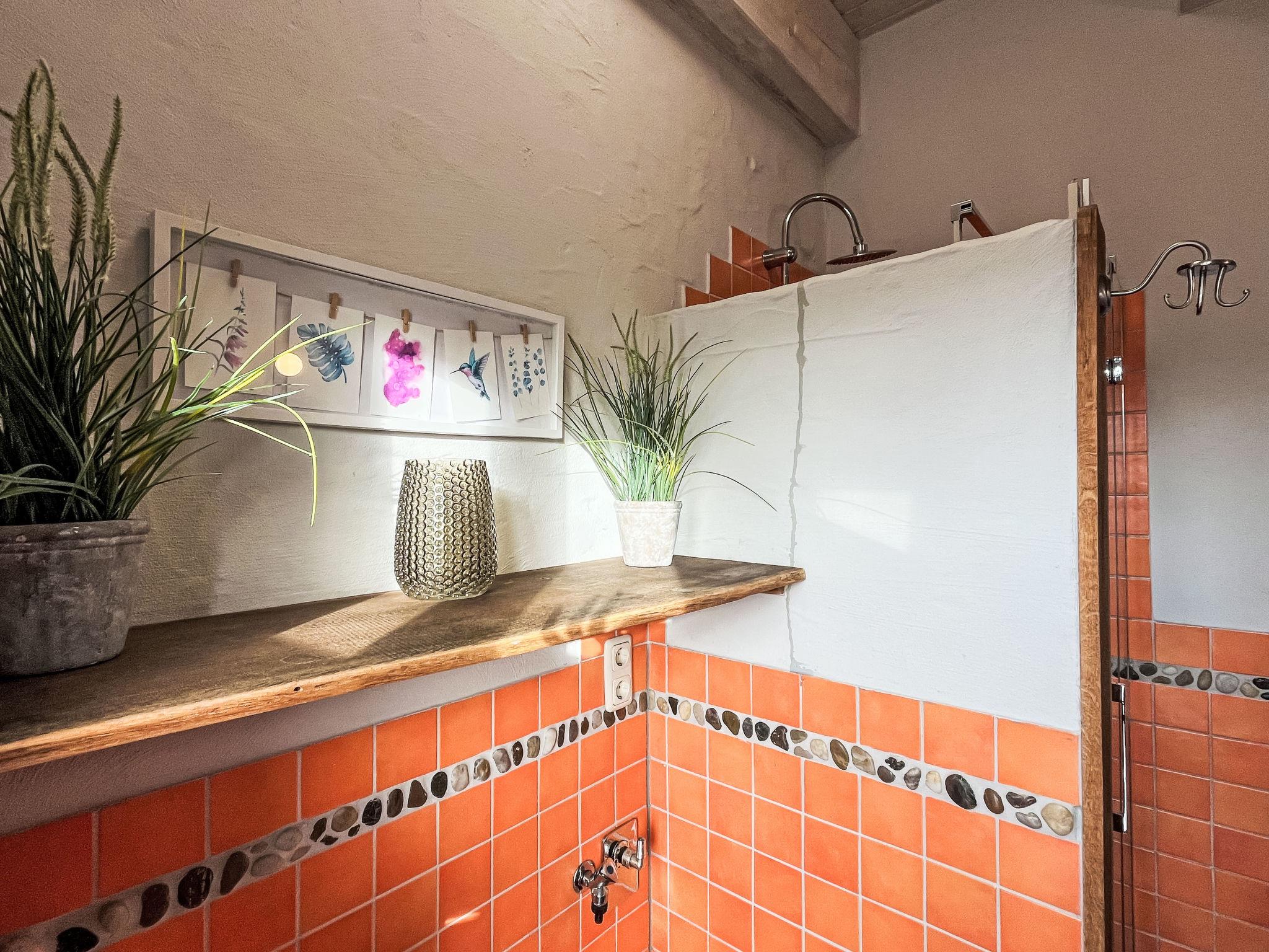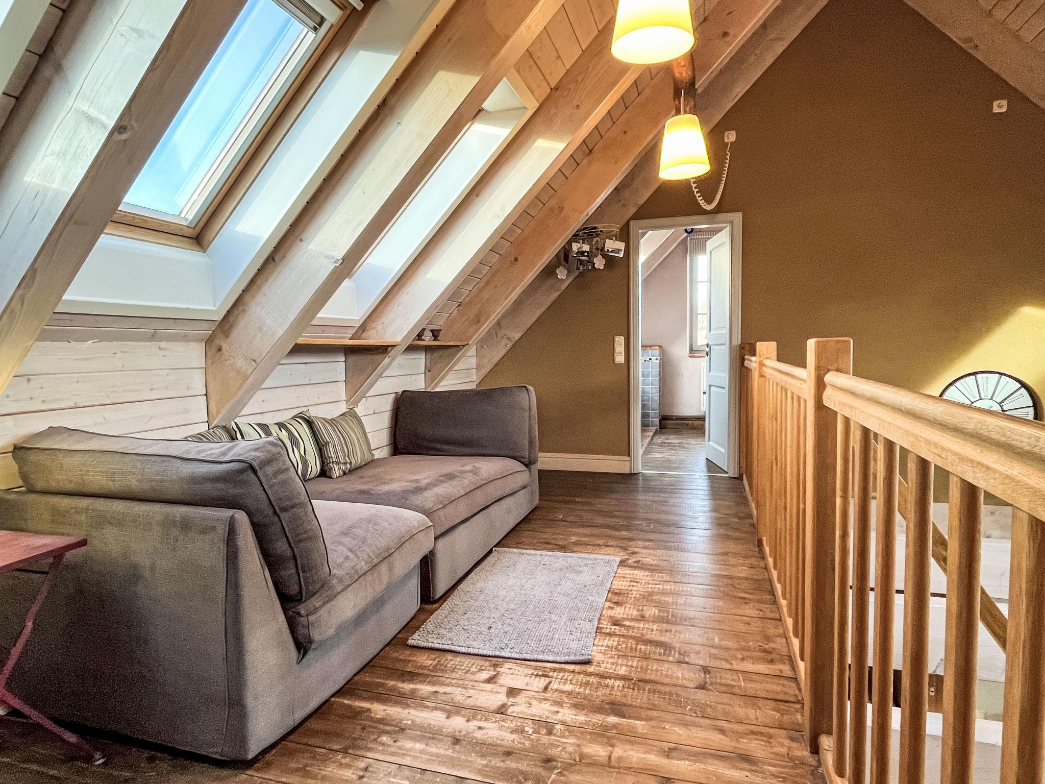 "Ferienscheune", 5-Zimmer-Landhaus 160 m2 auf 2 Stockwerken. Objekt geeignet für 8 Erwachsene. Komfortabel und gemütlich eingerichtet: Wohn-/Esszimmer mit Schwedenofen, Esstisch und Kabel-TV (Flachbildschirm), Radio und CD. Ausgang zum Garten, zur Terrasse. 1 Zimmer mit 1 Doppelbett (160 cm, Länge 200 cm). 1 Zimmer mit 2 Betten (90 cm, Länge 200 cm). Offene Küche (Backofen, Geschirrspüler, 4 Glaskeramikplatten, Toaster, Wasserkocher, elektrische Kaffeemaschine). Dusche/WC. Obergeschoss: 1 Zimmer mit 1 Doppeldiwanbett (160 cm, Länge 200 cm). 1 Zimmer mit 1 Doppelbett (160 cm, Länge 200 cm). Bad/Dusche/WC. Komfortable Einrichtung im Landhausstil. Terrasse. Terrassenmöbel. Schöne Sicht auf den Garten. Zur Verfügung: Kinderhochstuhl, Babybett, Haartrockner. Internet (WLAN, gratis). Parkplatz (2 Autos). Bitte beachten: geeignet für Familien. Nichtraucher-Unterkunft. Maximal 1 Haustier/Hund erlaubt.