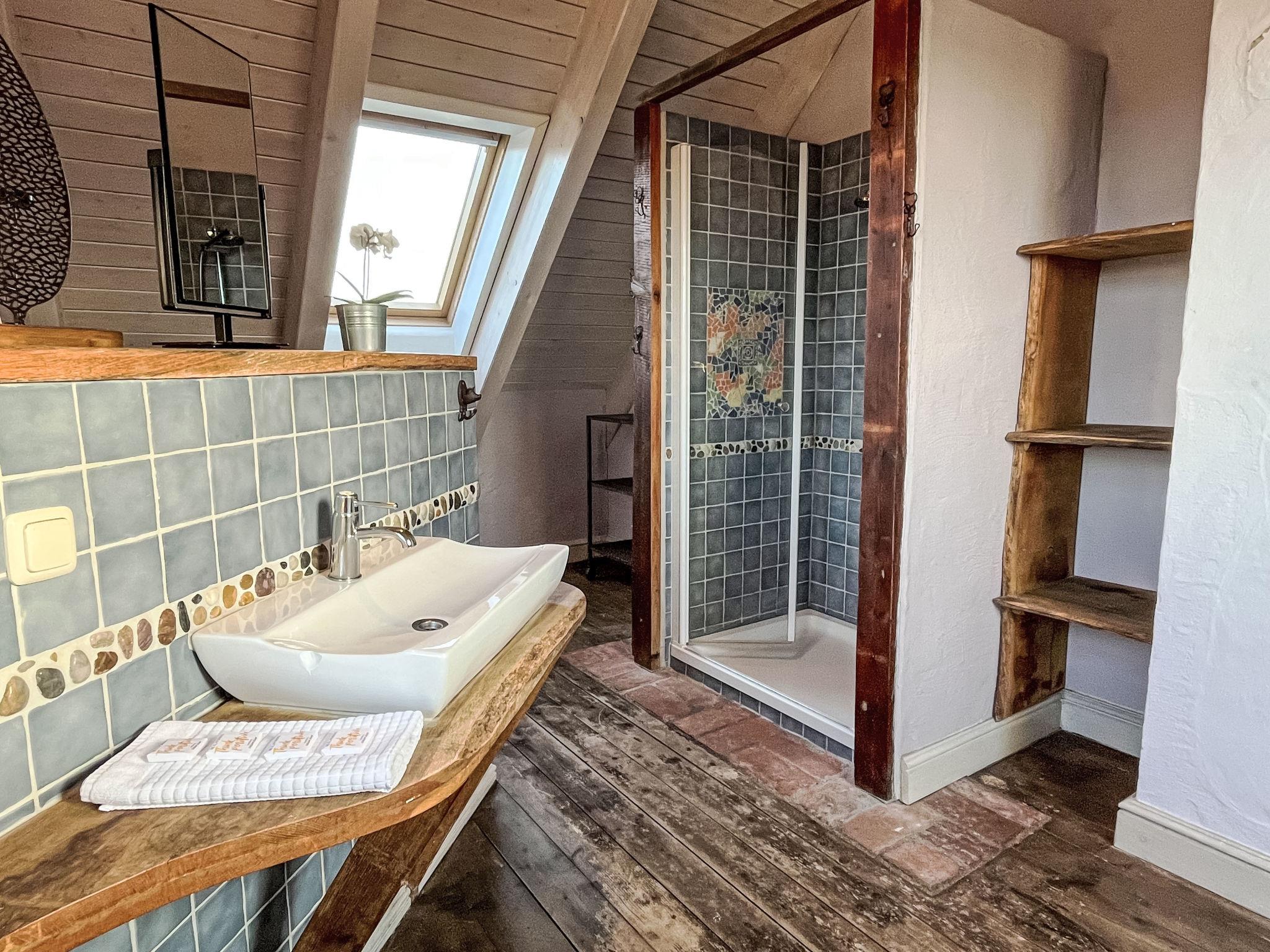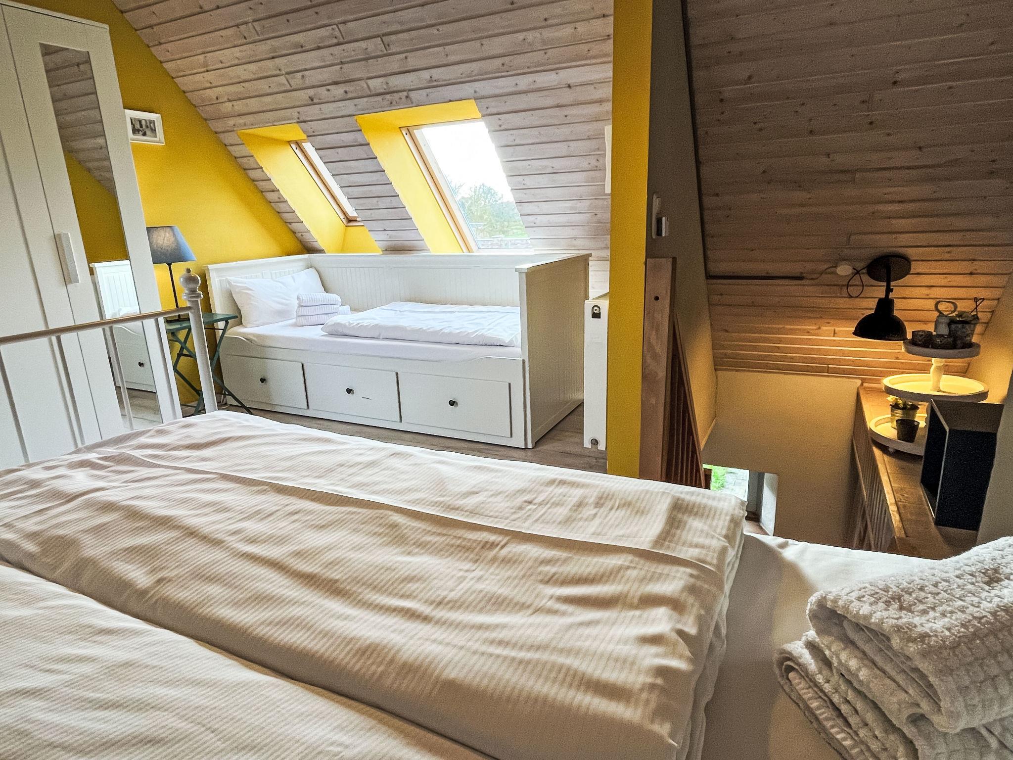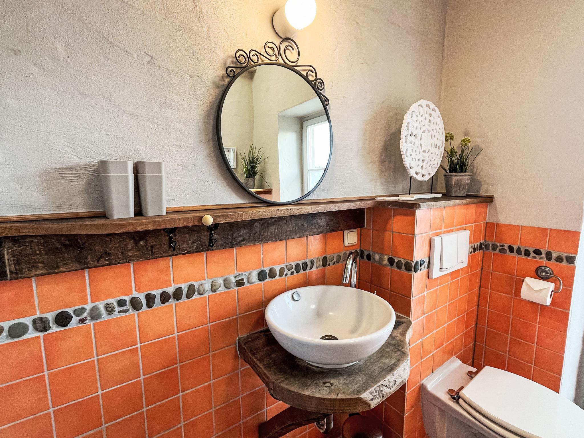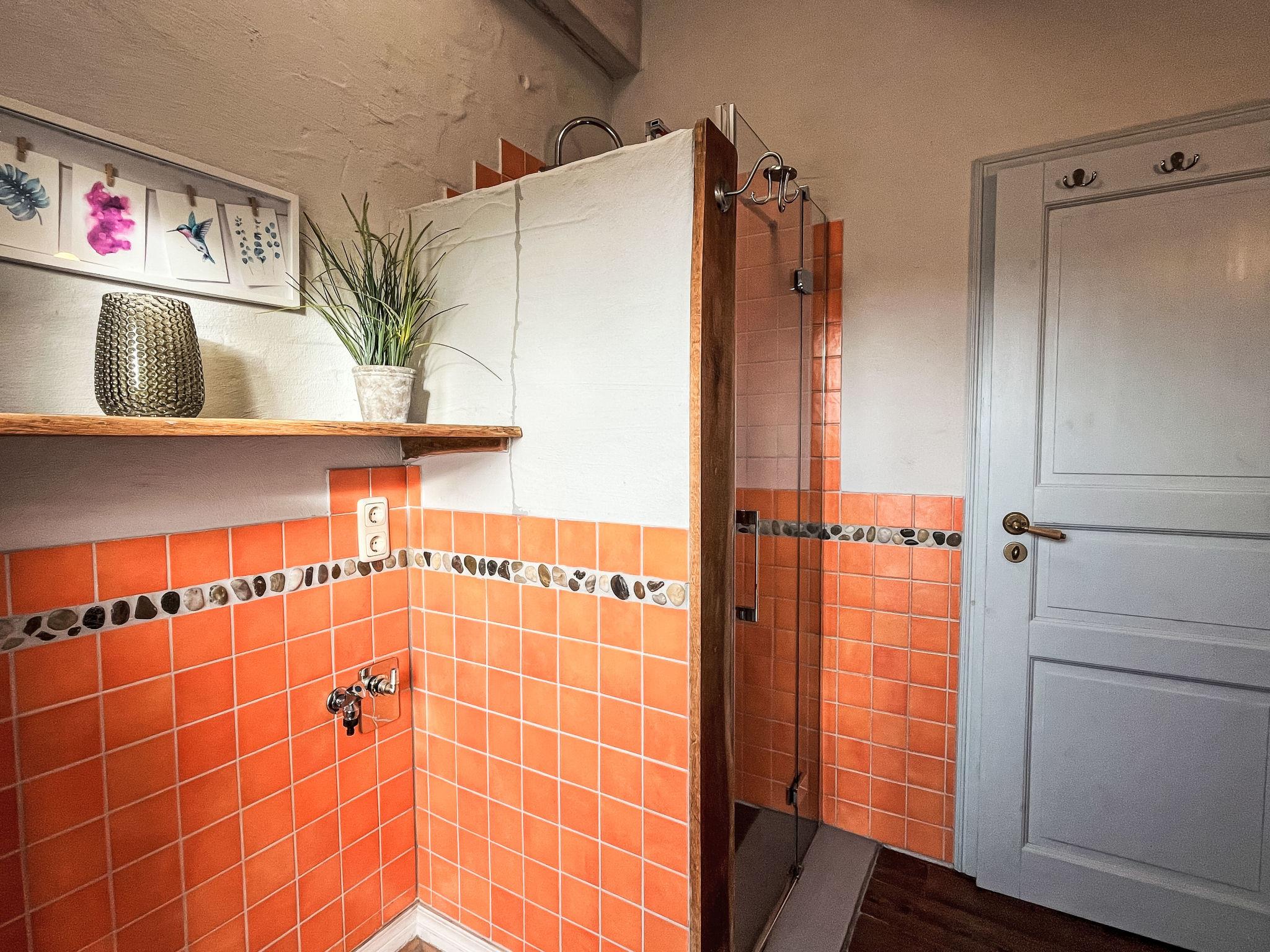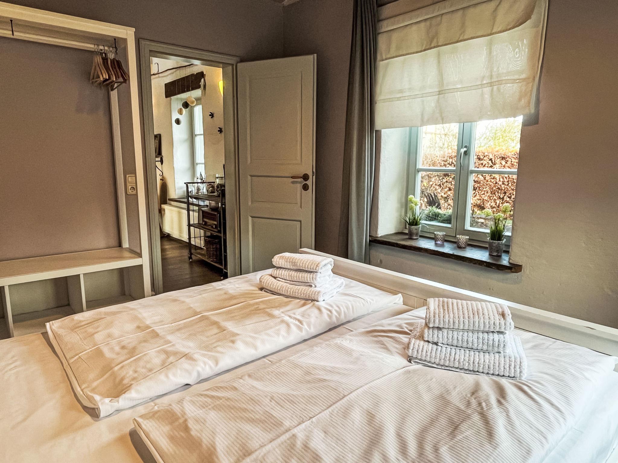 "Ferienscheune", 5-Zimmer-Landhaus 160 m2 auf 2 Stockwerken. Objekt geeignet für 8 Erwachsene. Komfortabel und gemütlich eingerichtet: Wohn-/Esszimmer mit Schwedenofen, Esstisch und Kabel-TV (Flachbildschirm), Radio und CD. Ausgang zum Garten, zur Terrasse. 1 Zimmer mit 1 Doppelbett (160 cm, Länge 200 cm). 1 Zimmer mit 2 Betten (90 cm, Länge 200 cm). Offene Küche (Backofen, Geschirrspüler, 4 Glaskeramikplatten, Toaster, Wasserkocher, elektrische Kaffeemaschine). Dusche/WC. Obergeschoss: 1 Zimmer mit 1 Doppeldiwanbett (160 cm, Länge 200 cm). 1 Zimmer mit 1 Doppelbett (160 cm, Länge 200 cm). Bad/Dusche/WC. Komfortable Einrichtung im Landhausstil. Terrasse. Terrassenmöbel. Schöne Sicht auf den Garten. Zur Verfügung: Kinderhochstuhl, Babybett, Haartrockner. Internet (WLAN, gratis). Parkplatz (2 Autos). Bitte beachten: geeignet für Familien. Nichtraucher-Unterkunft. Maximal 1 Haustier/Hund erlaubt.