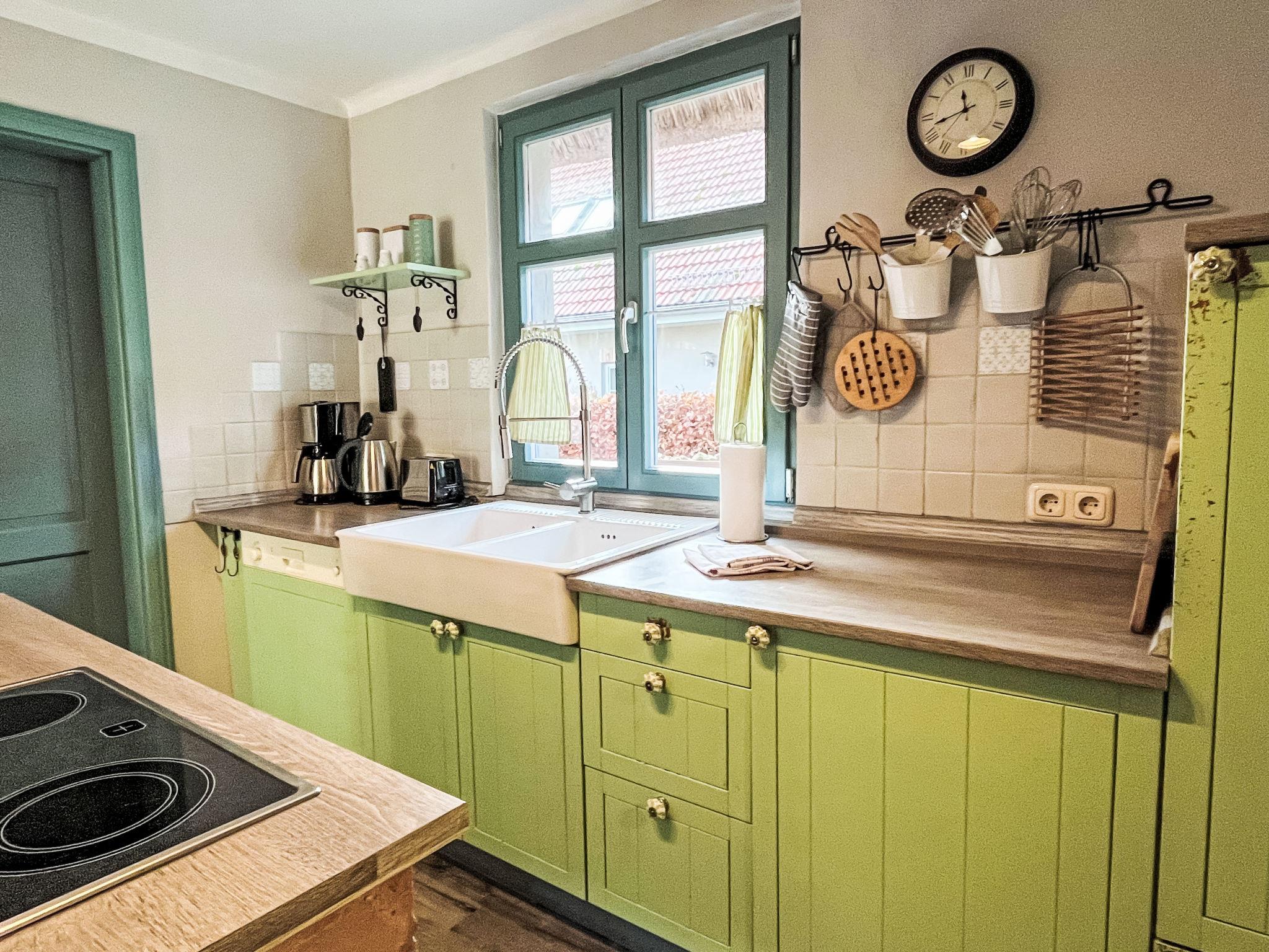 "Reetgedecktes Ferienhaus Seelchen", 3-Zimmer-Haus 75 m2 auf 2 Stockwerken. Geschmackvoll und stilvoll eingerichtet: Wohn-/Esszimmer mit Schwedenofen, Esstisch und Kabel-TV (Flachbildschirm). Ausgang zur Terrasse. Offene Küche (Backofen, Geschirrspüler, 4 Glaskeramikplatten, Toaster, Wasserkocher, elektrische Kaffeemaschine). Dusche/WC. Obergeschoss: 1 Zimmer mit 1 Doppelbett (180 cm, Länge 200 cm) mit 1 Doppelbett (160 cm, Länge 200 cm). Terrasse. Terrassenmöbel. Zur Verfügung: Kinderhochstuhl, Babybett, Haartrockner. Internet (WLAN, gratis). Parkplatz (1 Auto). Bitte beachten: geeignet für Familien. Nichtraucher-Unterkunft. Maximal 1 Haustier/Hund erlaubt.