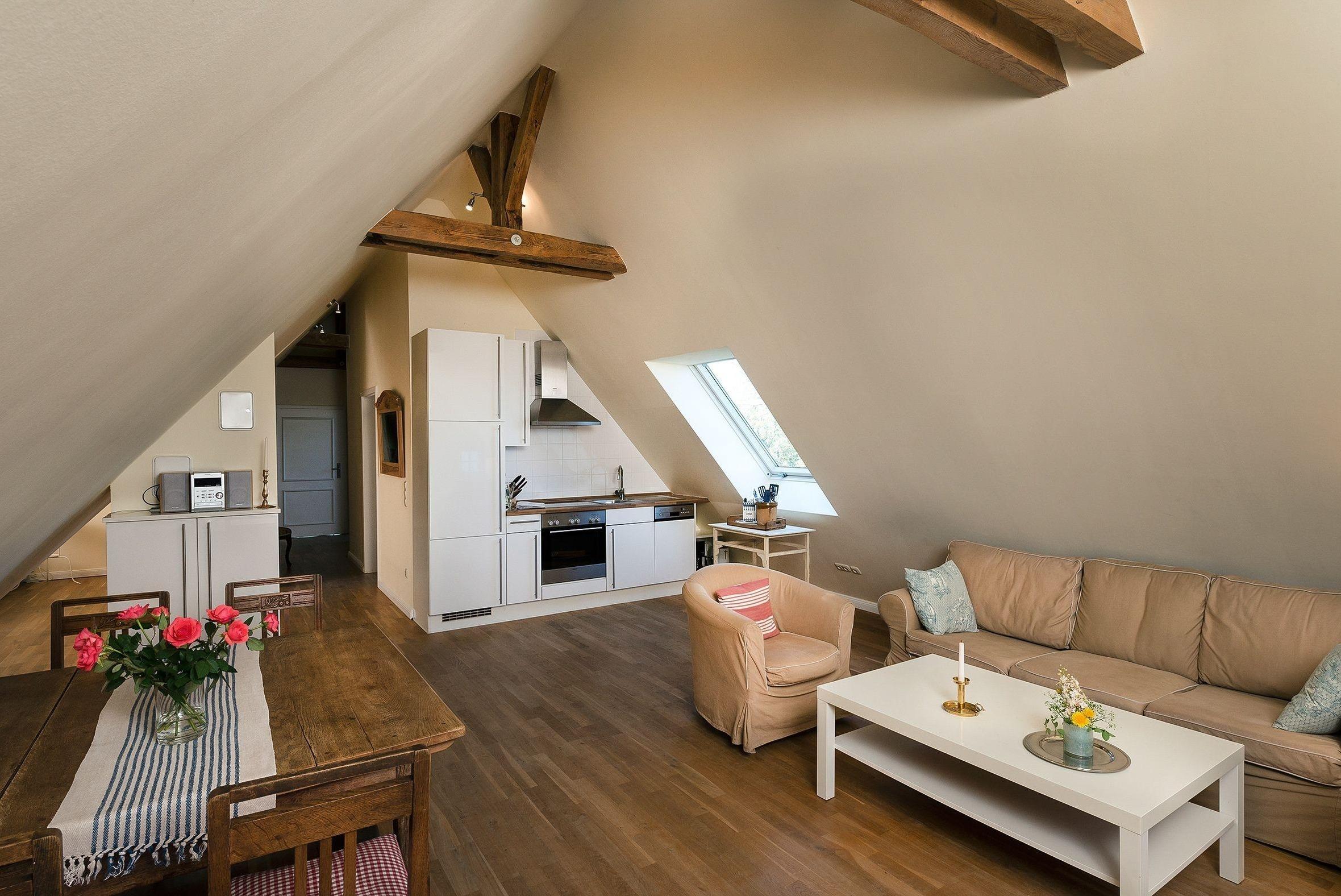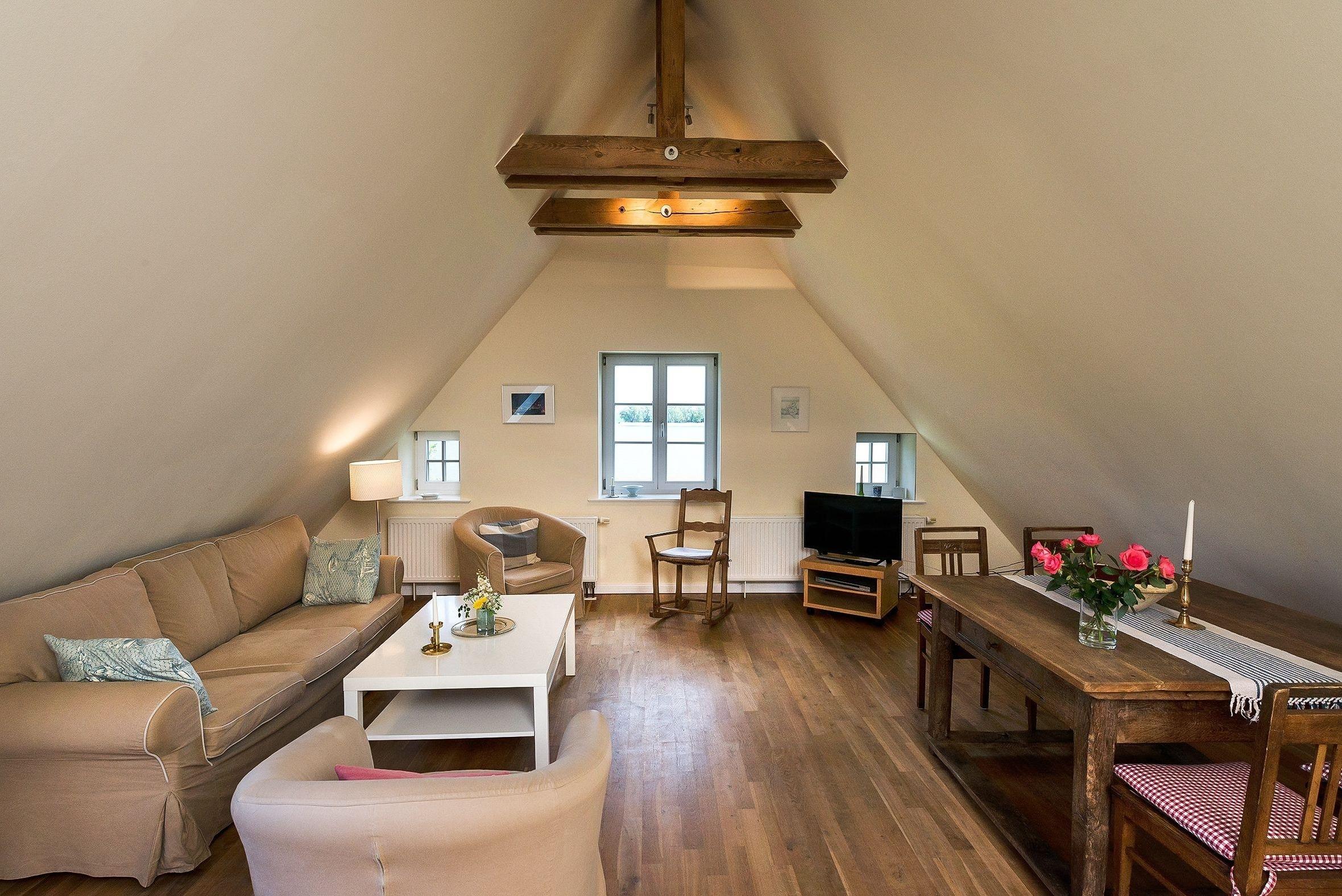 Die gemütlich eingerichtete Ferienwohnung 8 befindet sich im Dachgeschoss des Gut Grubnow.
